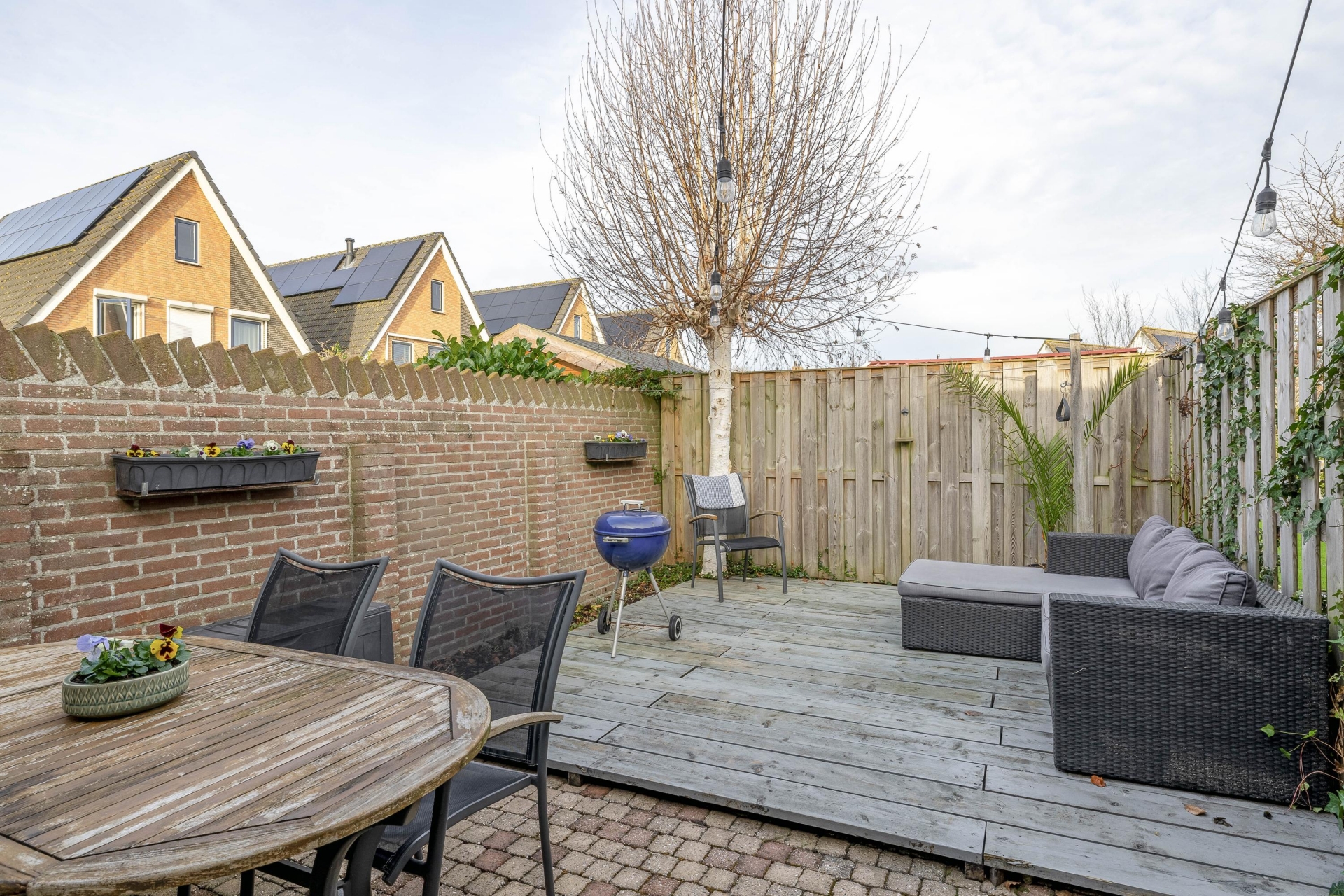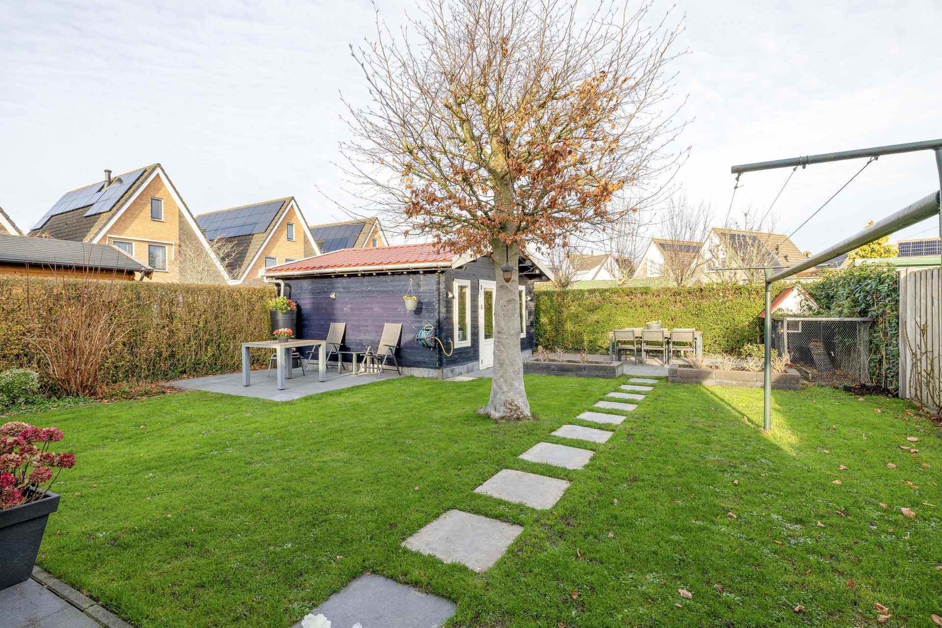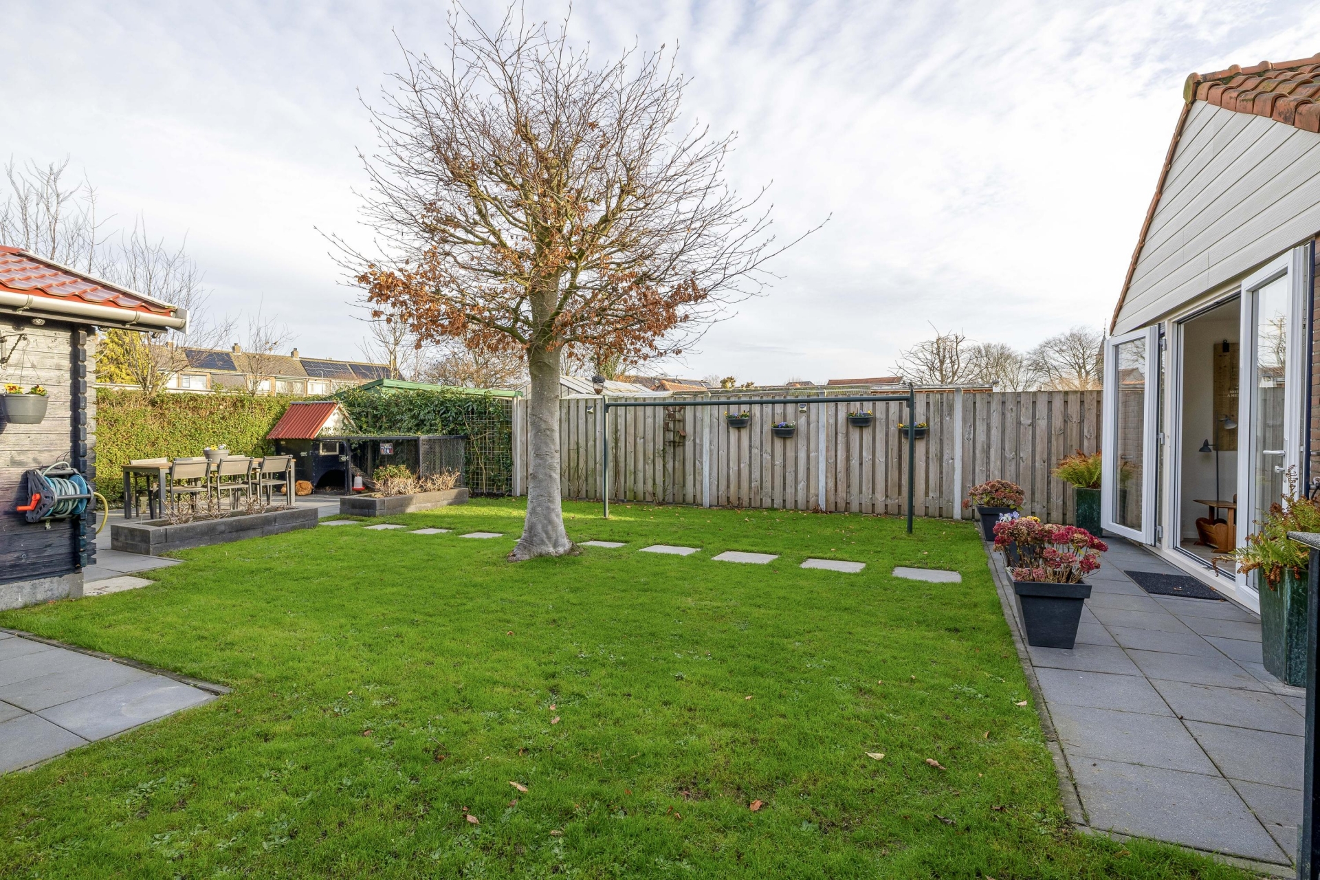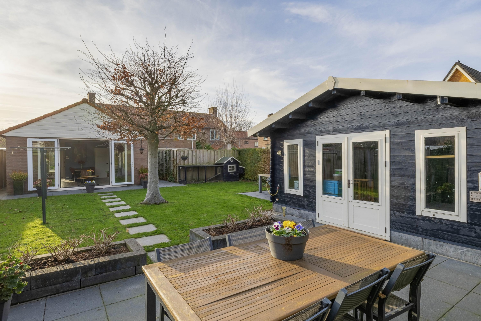 De fraai aangelegde achtertuin is gelegen op het noordoosten, heeft een diepte van ruim 15 meter en biedt volop privacy. Gezien de grote van de tuin is er altijd een plek om van de zon te genieten. Je vindt hier een grote houten berging van 22 m², een kippenren, diverse zitplekken en achterom (beperkt te gebruiken voor onderhoud en dergelijke). De voortuin is breed opgezet, en op eigen erf is plek voor meerdere auto's onder de carport van 24 m².
