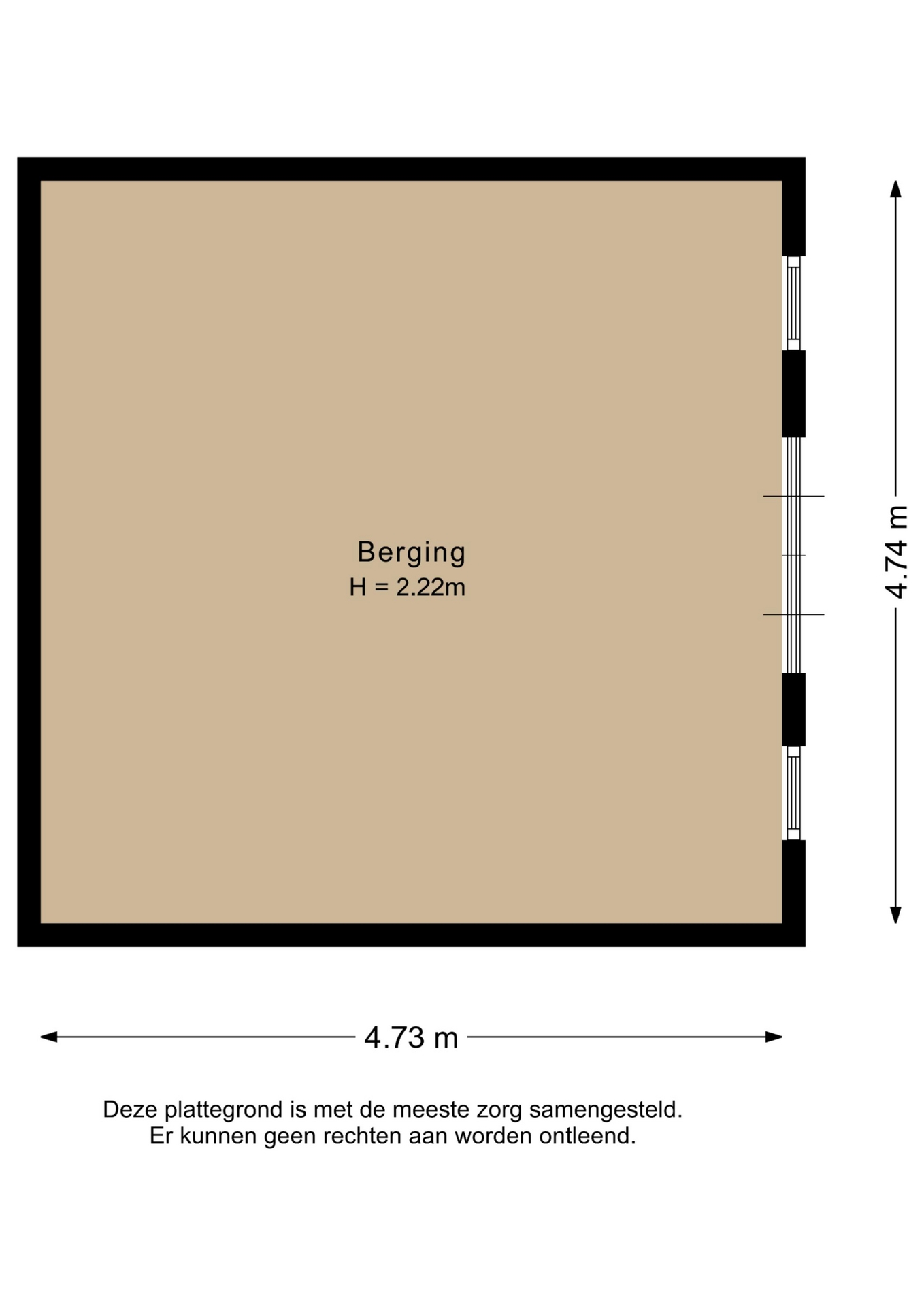 “Deze informatie is door ons met de nodige zorgvuldigheid samengesteld. Onzerzijds wordt echter geen enkele aansprakelijkheid aanvaard voor enige onvolledigheid, onjuistheid of anderszins, dan wel de gevolgen daarvan. Alle opgegeven maten en oppervlakten zijn indicatief.”