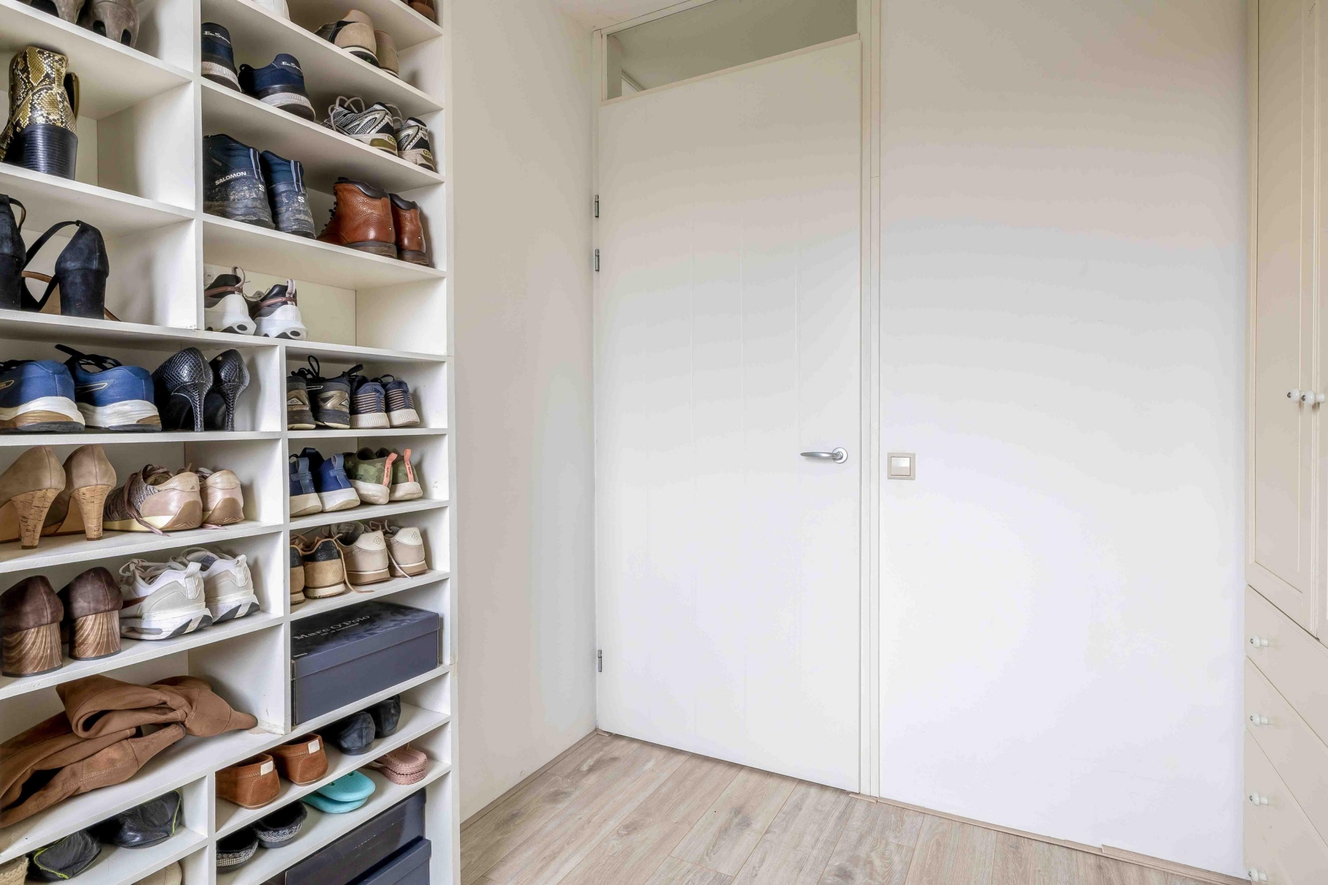 De tweede verdieping is een enorme bonus. Dankzij de dubbele dakkapel aan de achterzijde heb je hier twee extra slaapkamers met veel licht en sta-hoogte. Deze verdieping is daarmee ideaal voor kinderen die graag hun eigen plek willen, thuiswerkers die rust zoeken of hobby’s die wat meer ruimte vragen. De technische installaties zijn netjes weggewerkt, en er is nog ruimte voor opslag.