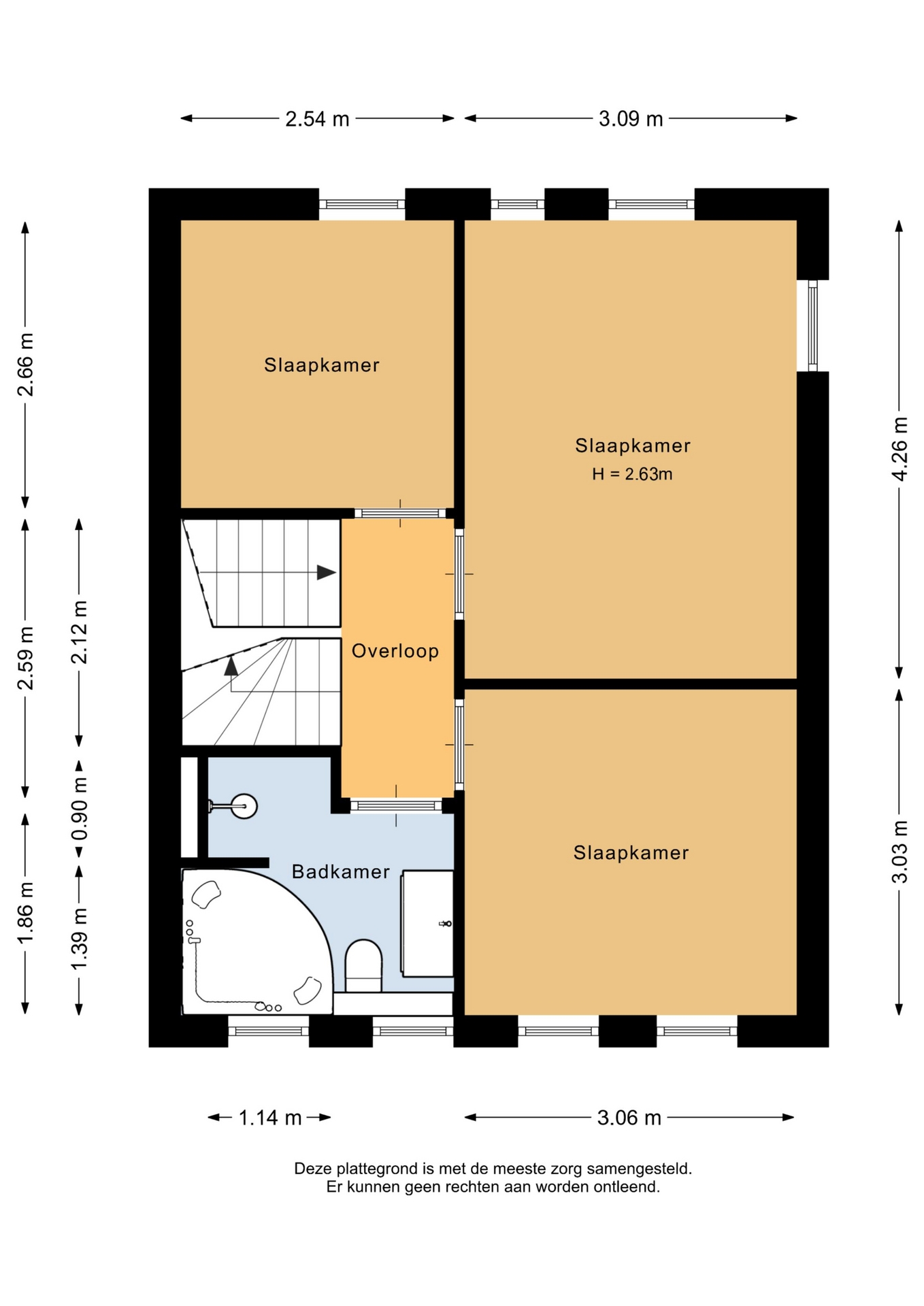Op de eerste verdieping bevinden zich drie slaapkamers, waarbij de grootste kamer aan de achterzijde ligt. Alle kamers zijn praktisch ingedeeld en bieden voldoende ruimte voor slapen, spelen, werken of hobby’s. De badkamer is netjes afgewerkt en compleet ingericht met een inloopdouche, ligbad, wastafelmeubel en 2e toilet. Hierdoor kun je ‘s ochtends soepel van start – ook met een groter gezin.