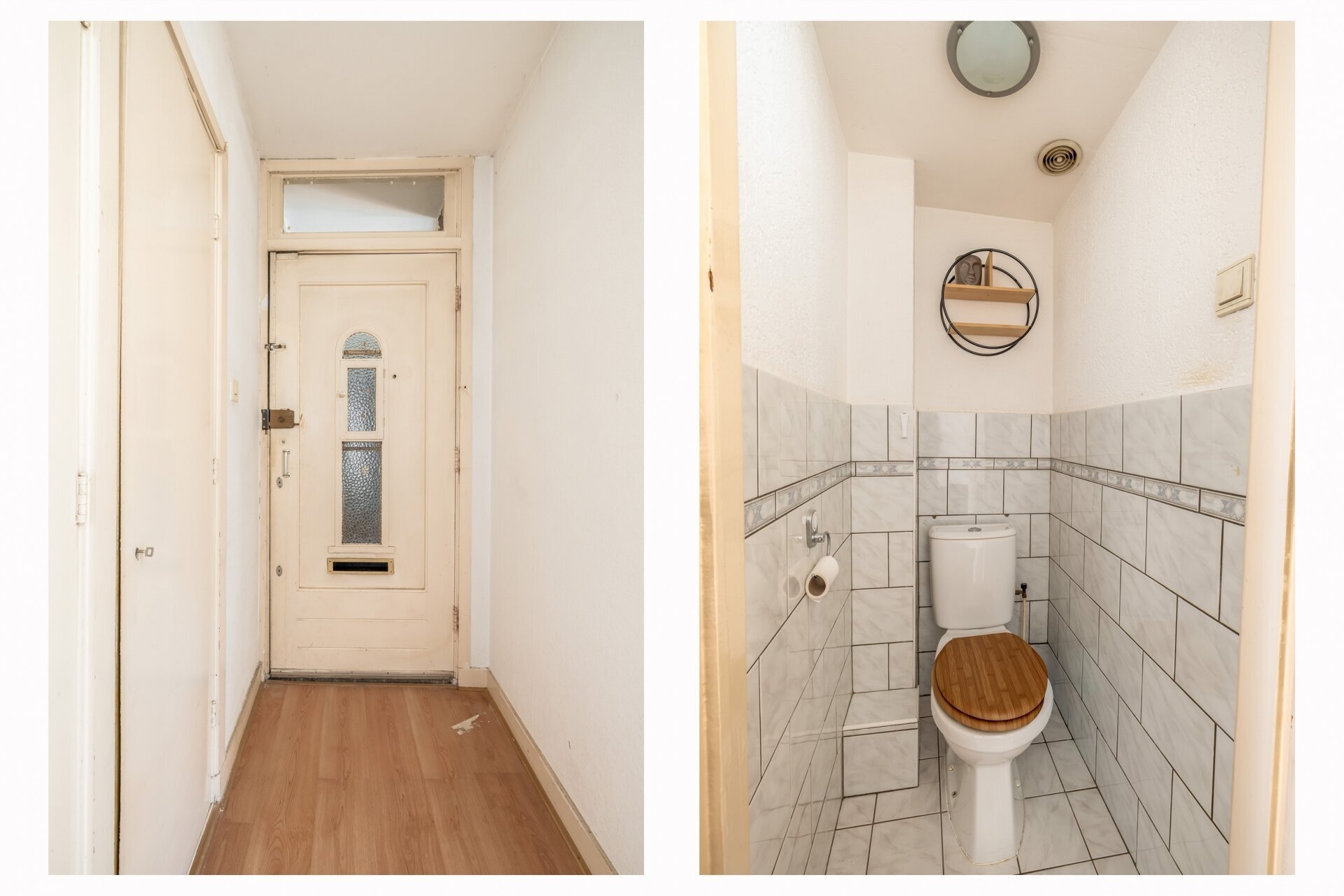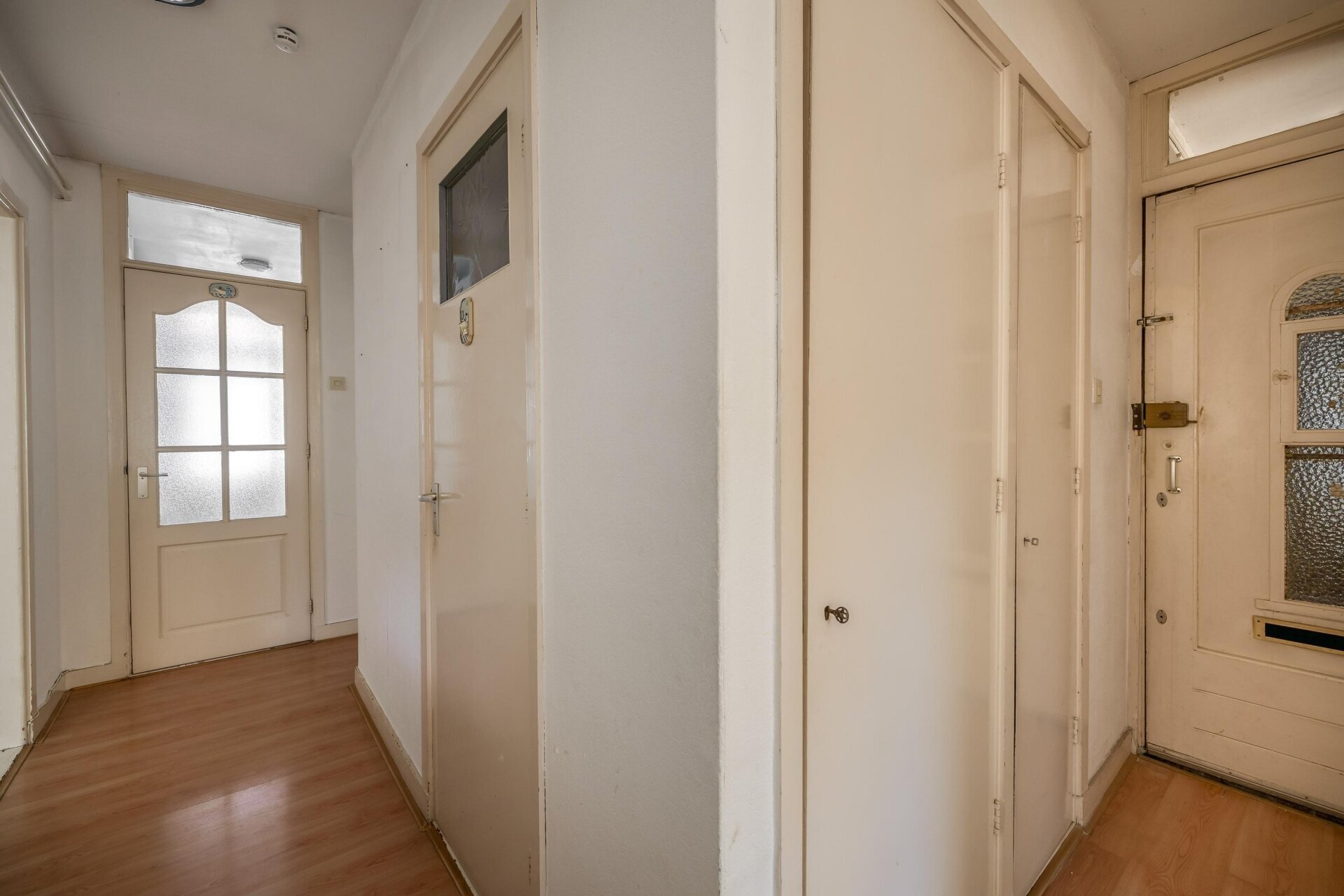 Entree woning op de eerste etage via portiektrap; voordeur met hal, separaat toilet, meterkast en vaste kasten.