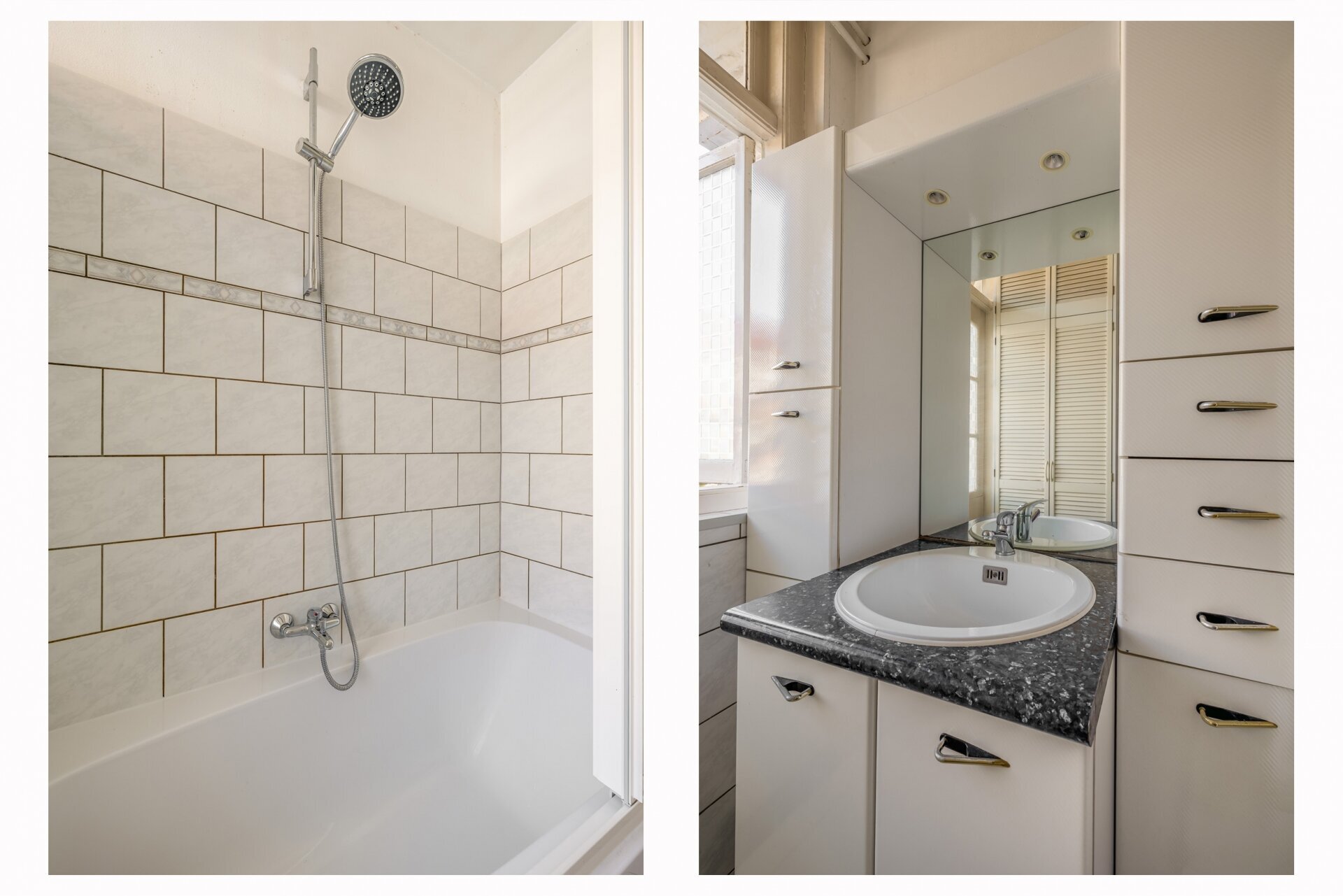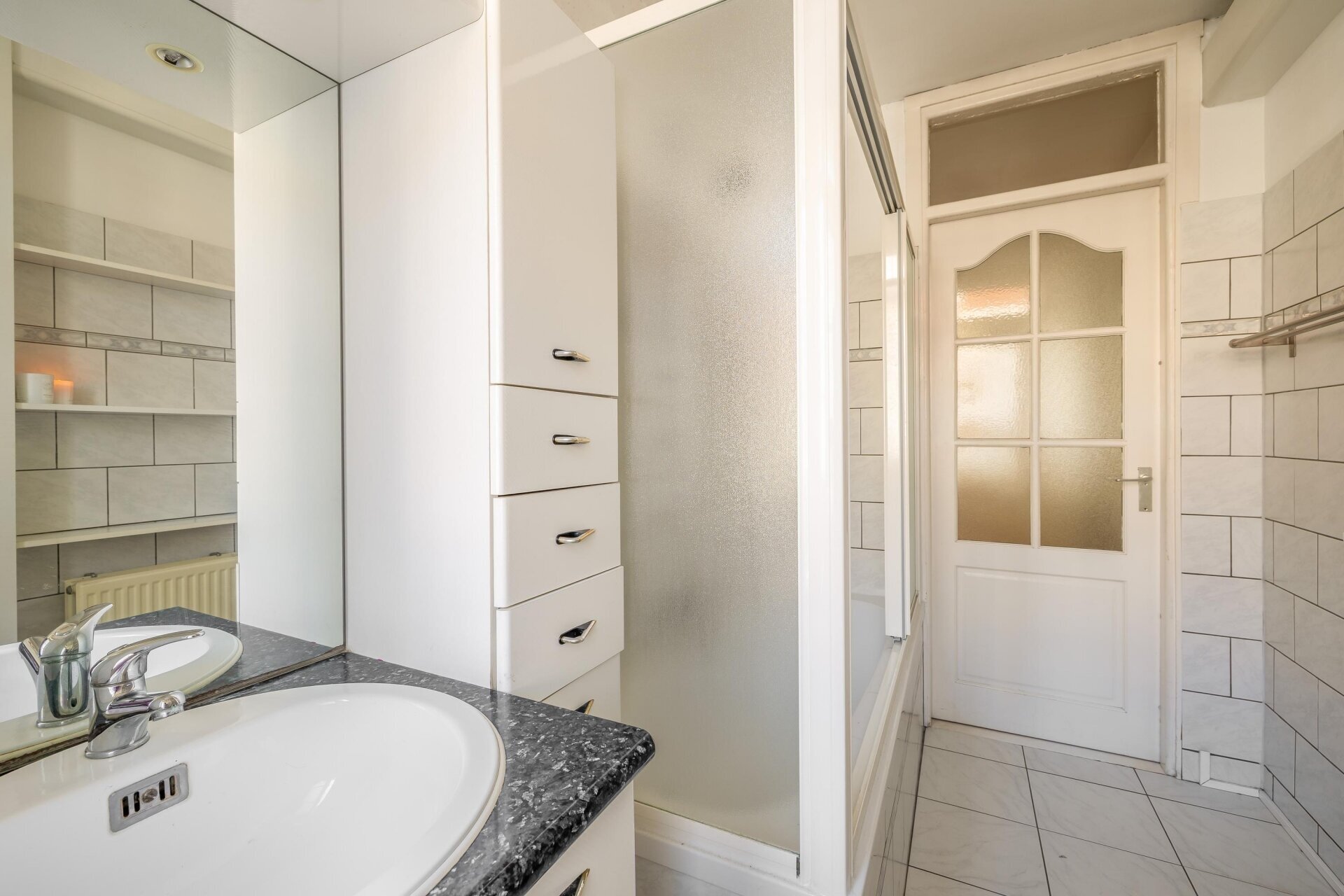 Badkamer (3.05 x 2.10) met wastafelmeubel, ligbad met douche en opstelplaats cv-ketel.