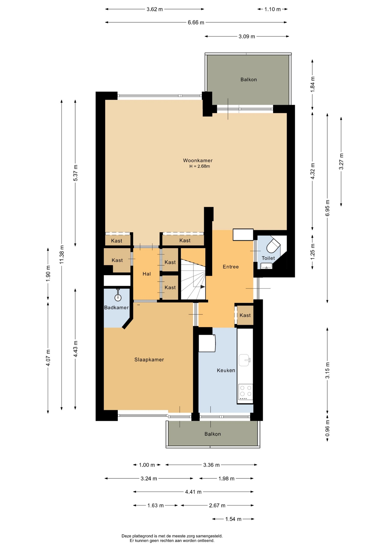 “Deze informatie is door ons met de nodige zorgvuldigheid samengesteld. Onzerzijds wordt echter geen enkele aansprakelijkheid aanvaard voor enige onvolledigheid, onjuistheid of anderszins, dan wel de gevolgen daarvan. Alle opgegeven maten en oppervlakten zijn indicatief.”