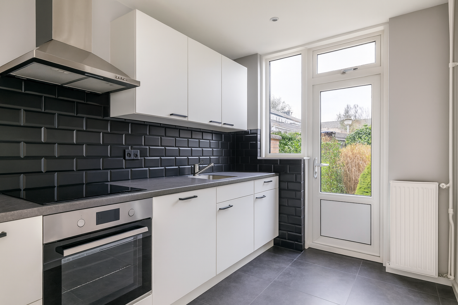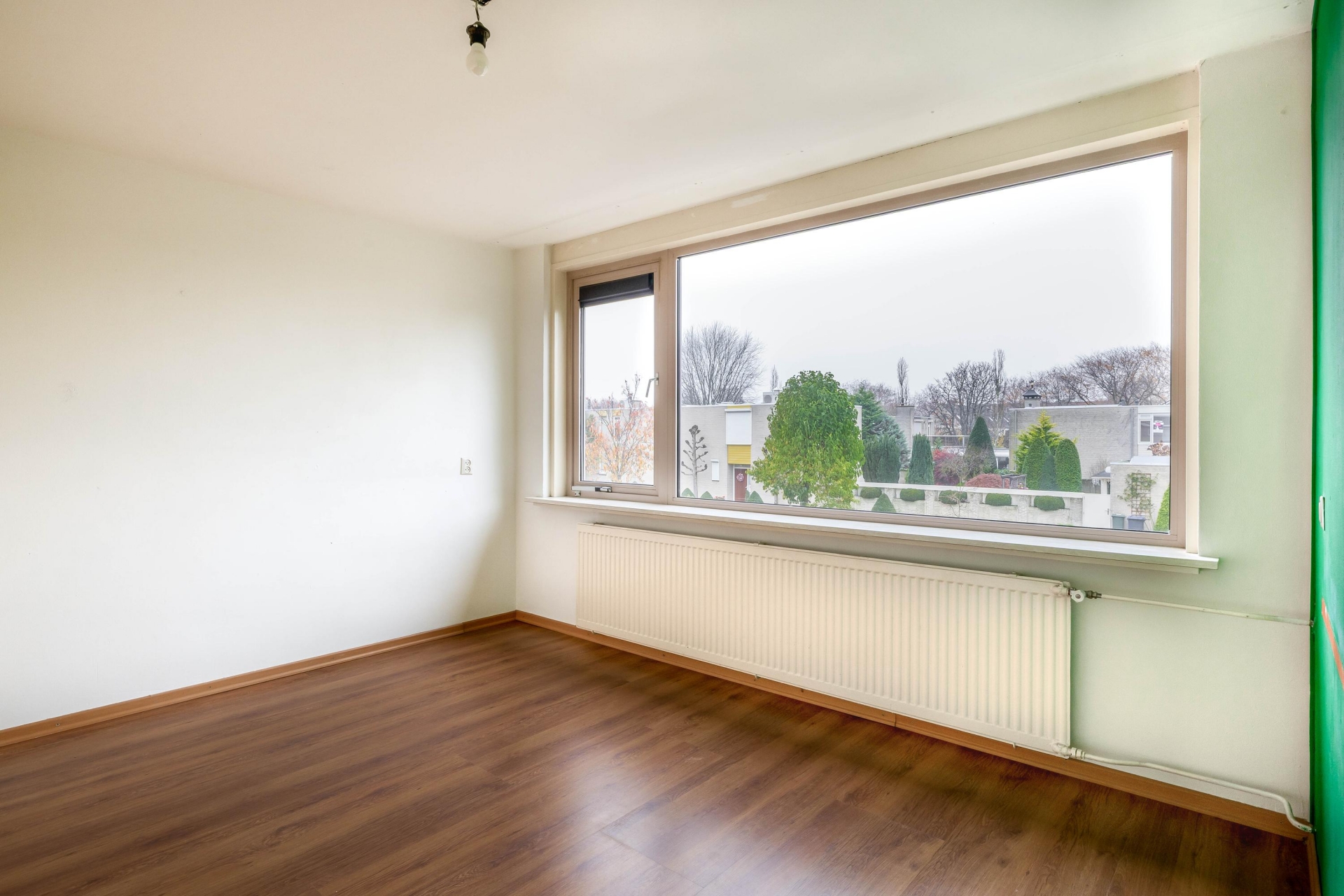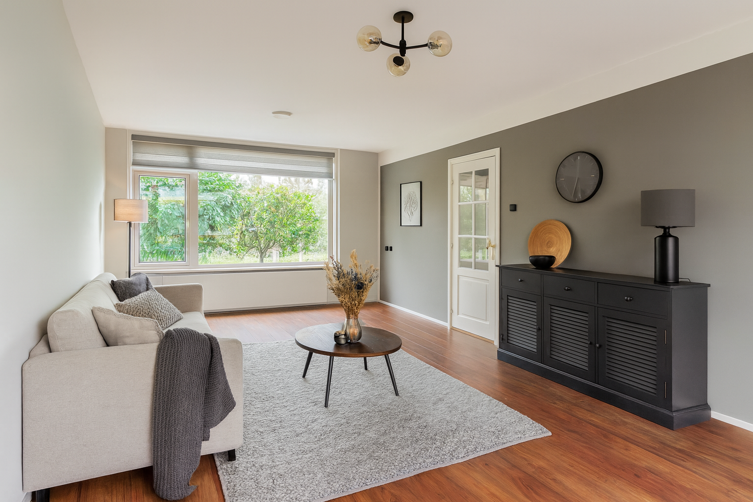 De woonkamer is licht en ruim en kijkt uit op het groen aan de voorzijde. Door de grote raampartijen valt het daglicht mooi naar binnen en ontstaat er een prettige sfeer in de leefruimte. Aan de achterzijde bevindt zich de keuken, met directe toegang tot de tuin – ideaal op een zomerse dag of als de kinderen lekker buiten willen spelen. De tuin is verzorgd aangelegd met een combinatie van groen en bestrating, waardoor je hier met weinig onderhoud toch veel plezier van hebt.
