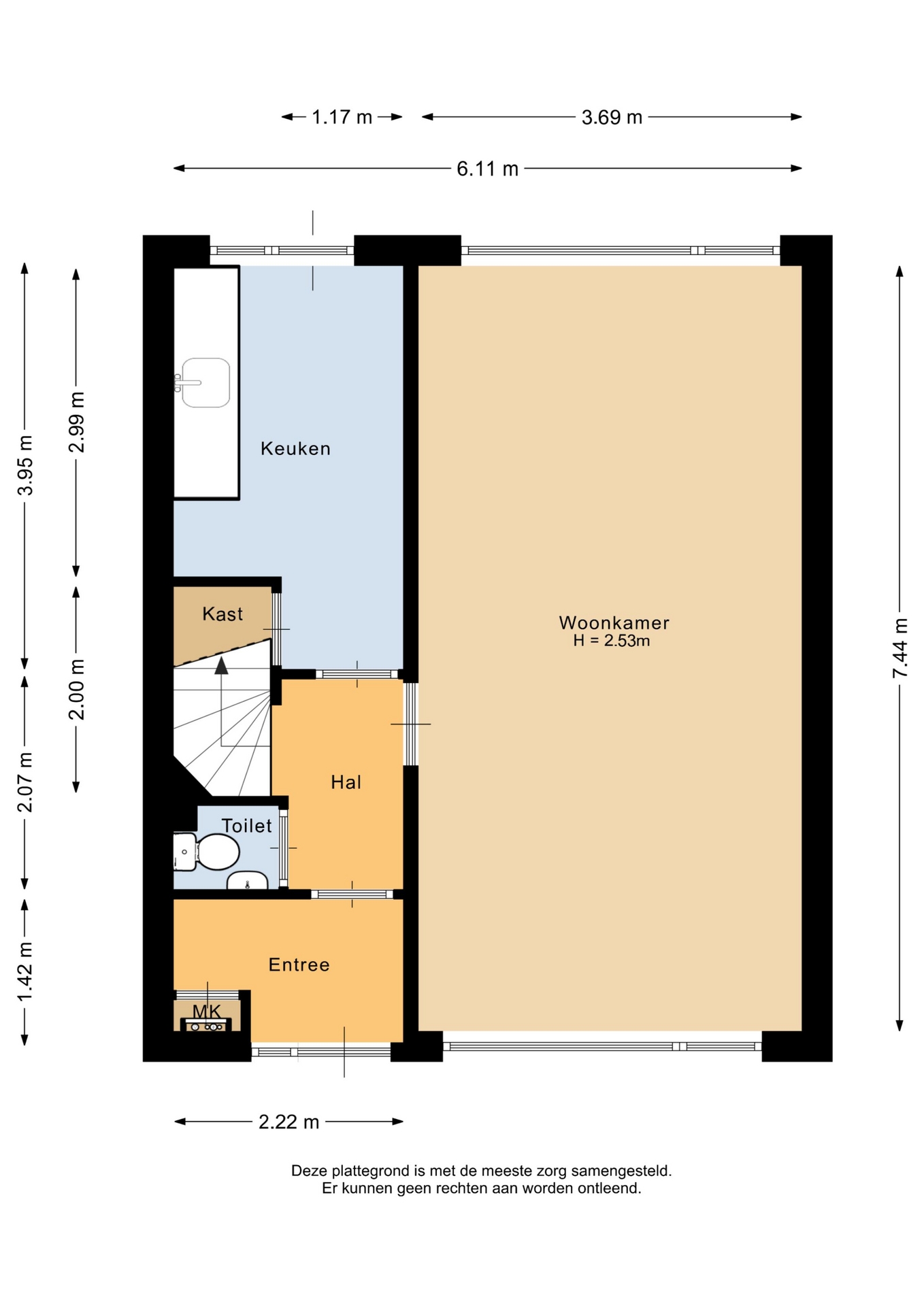 “Deze informatie is door ons met de nodige zorgvuldigheid samengesteld. Onzerzijds wordt echter geen enkele aansprakelijkheid aanvaard voor enige onvolledigheid, onjuistheid of anderszins, dan wel de gevolgen daarvan. Alle opgegeven maten en oppervlakten zijn indicatief.”