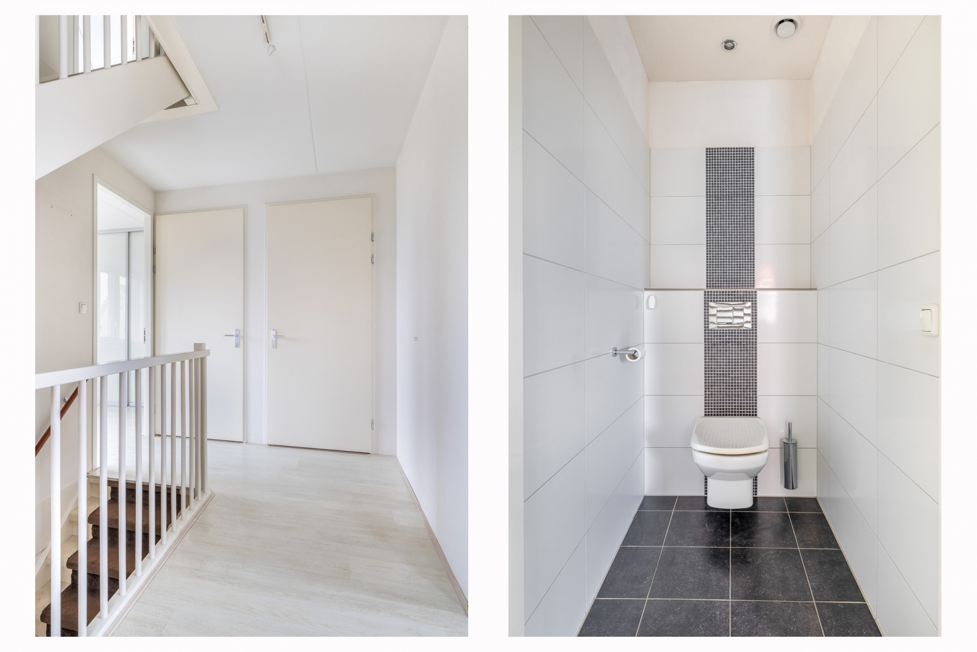 Op de 1e verdieping bevinden zich twee slaapkamers waarvan één kamer voorzien van een vaste kastenwand. De badkamer is functioneel ingericht en biedt alles wat je nodig hebt voor het dagelijkse gebruik met een ligbad, inloopdouche, dubbele wastafel en badkamermeubel. In de hal is een 2e toiletruimte met closet en fonteintje.