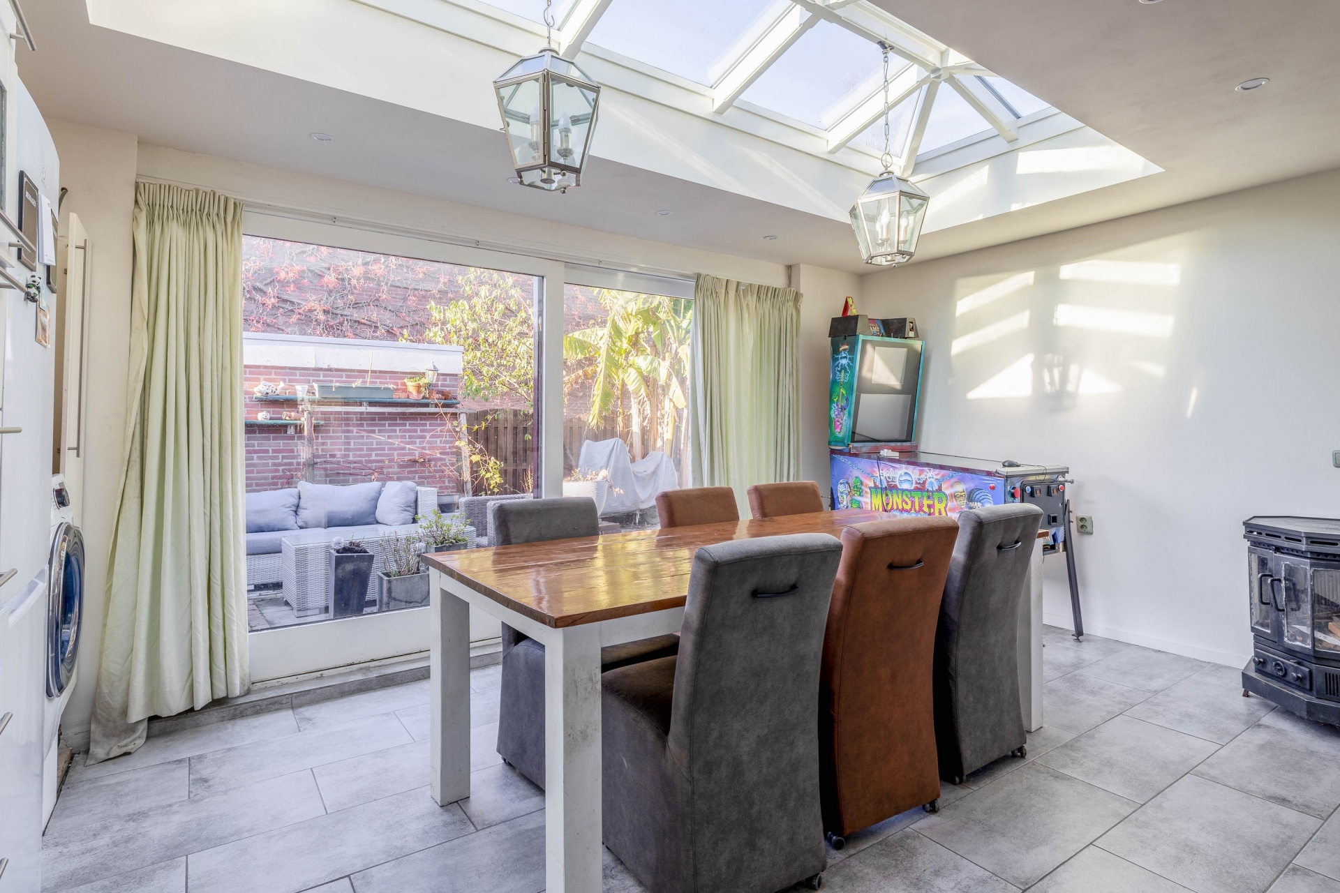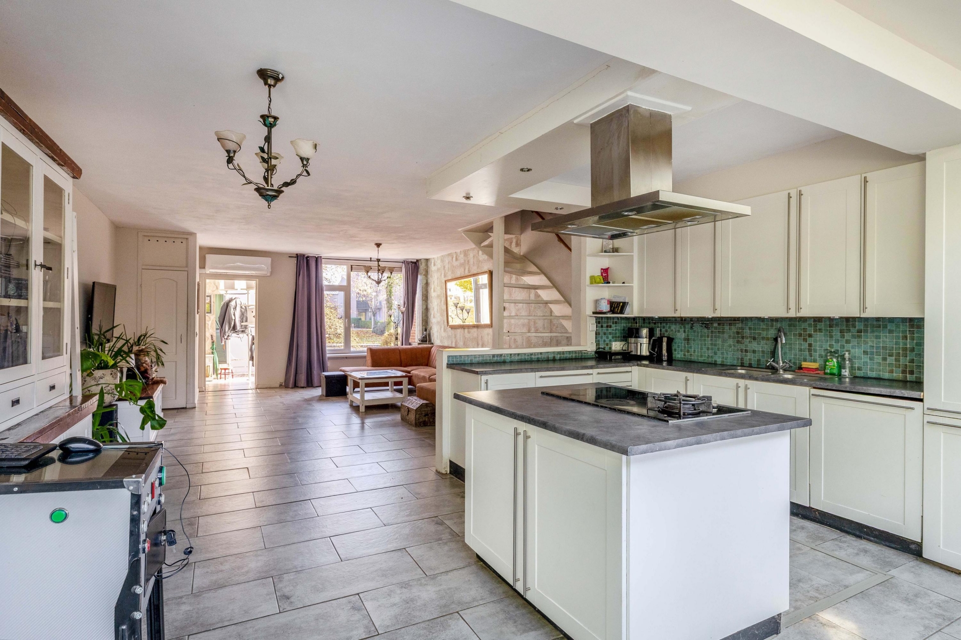De keuken is van alle gemakken voorzien en heeft veel werk- en opbergruimte. Een echte plek voor wie graag kookt of gezellig lang tafelt. De zichtlijnen vanuit de keuken naar zowel de woonkamer als de tuin zorgen voor een open sfeer waarin je altijd in contact blijft met je gezelschap.
