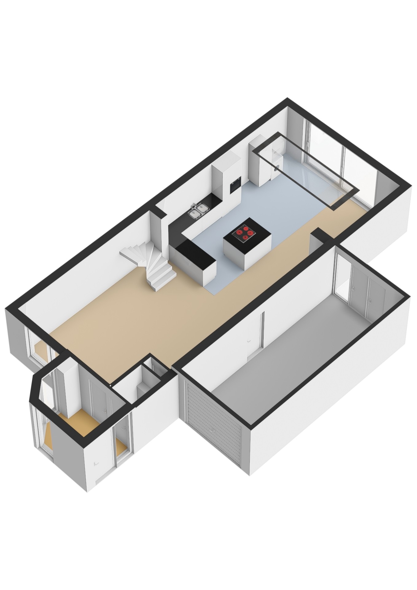 Zodra je binnenkomt, valt direct op hoe open en licht het huis is. De uitgebouwde woonkamer loopt over in een ruime open keuken met kookeiland, wat zorgt voor een fijne doorloop naar de eetkamer. Dankzij de grote raampartijen aan de achterzijde en de schuifpui naar de tuin komt het daglicht rijkelijk naar binnen. De vloer is voorzien van grote grijze tegels met vloerverwarming, comfortabel en stijlvol tegelijk. In de zomer biedt de airconditioning op de begane grond extra verkoeling.