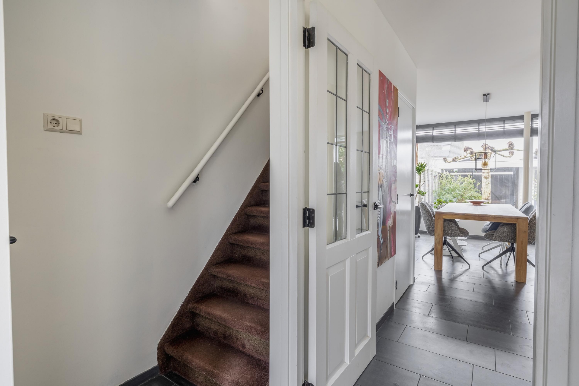 De begane grond voelt ruim en overzichtelijk aan en biedt verschillende mogelijkheden om een gezellige woon- en eetruimte in te richten. Vanuit de keuken loop je bovendien zo de tuin in, waardoor binnen en buiten op een natuurlijke manier met elkaar verbonden zijn.