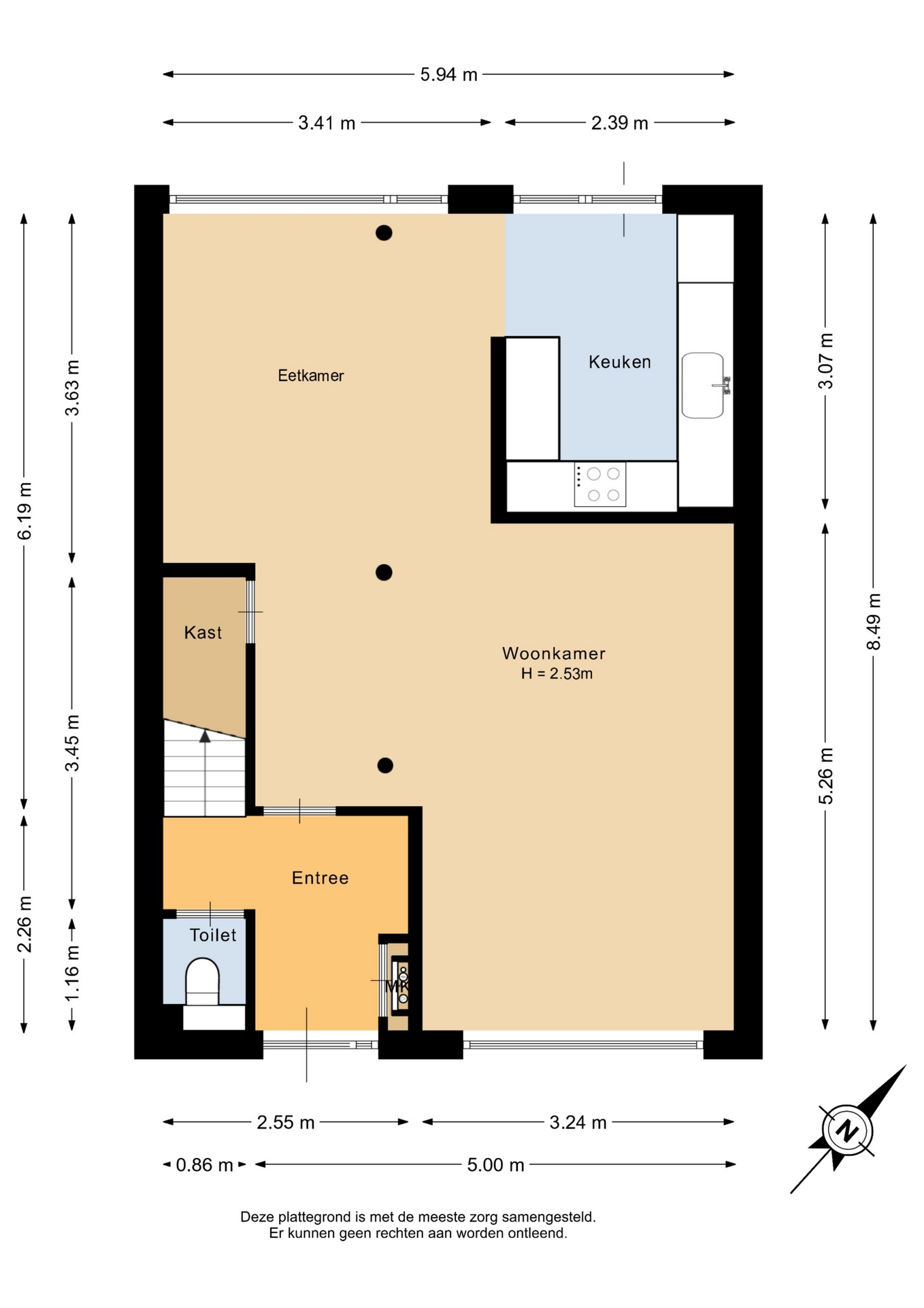 “Deze informatie is door ons met de nodige zorgvuldigheid samengesteld. Onzerzijds wordt echter geen enkele aansprakelijkheid aanvaard voor enige onvolledigheid, onjuistheid of anderszins, dan wel de gevolgen daarvan. Alle opgegeven maten en oppervlakten zijn indicatief.”
