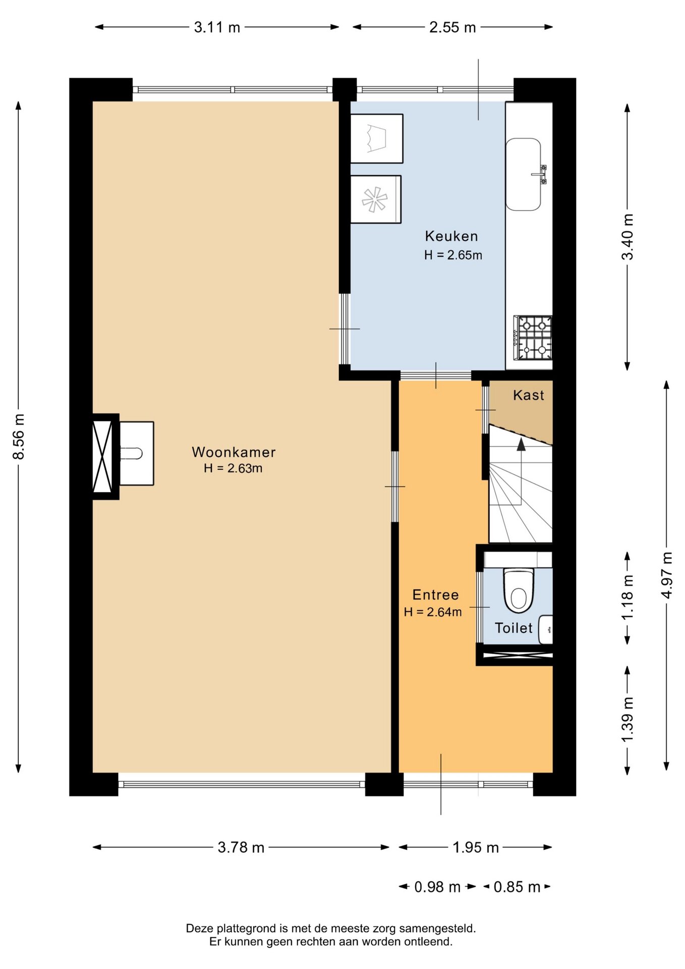 “Deze informatie is door ons met de nodige zorgvuldigheid samengesteld. Onzerzijds wordt echter geen enkele aansprakelijkheid aanvaard voor enige onvolledigheid, onjuistheid of anderszins, dan wel de gevolgen daarvan. Alle opgegeven maten en oppervlakten zijn indicatief.”