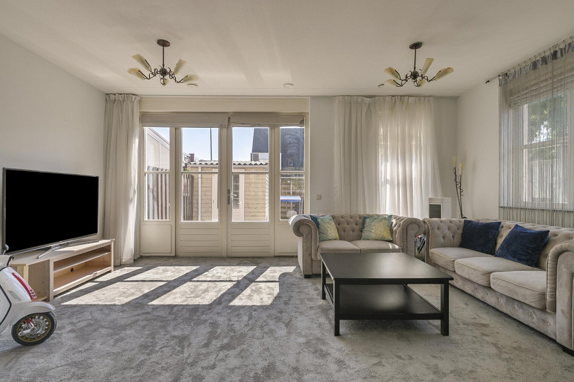 Entree, hal, meterkast, volledig betegelde toiletruimte met hangend closet en fonteintje en de trapopgang naar de bovengelegen verdiepingen! Vanuit de hal heeft u toegang de verrassend ruime woonkamer. Deze woonkamer van welgeteld ca. 34m2 is voorzien van een keurige tapijtvloer en beschikt over openslaande deuren naar de achtertuin! Aan de voorzijde van de woning bevindt zich de keuken. Deze ruime, hoek-opgestelde keuken is uitgevoerd met een witte kleurstelling en beschikt over diverse inbouwapparatuur te weten; inductie kookplaat, afzuigkap, vaatwasser, RvS spoelbak, oven en magnetron! Teruggelopen naar de woonkamer, kunt u middels de openslaande deuren begeven naar de achtergelegen tuin. Deze achtertuin is gelegen op het oosten en bied u, mede door de zijtuin een heerlijke plek zowel in de zon als de schaduw!