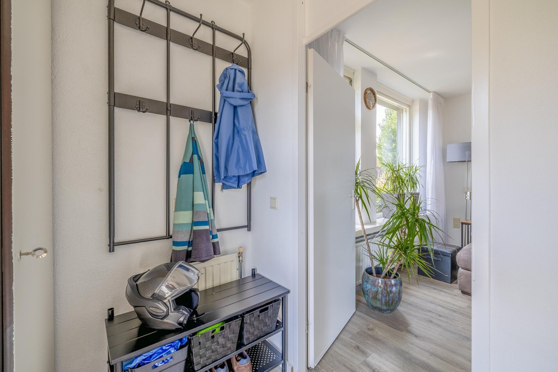 De benedenverdieping voelt direct warm en verzorgd aan. De woonkamer is licht, praktisch in te delen en voorzien van een nette laminaatvloer. Aan de achterzijde ligt de keuken die is vernieuwd in 2024, die met zijn moderne uitstraling, strakke lijnen en slimme indeling echt een blikvanger is. Donkere bovenkasten, een werkblad met betonlook en greeploze lades zorgen voor een stoere, tijdloze uitstraling. Koken wordt hier een feestje. De tuin is bereikbaar via de achterdeur, handig tijdens zomerse barbecues of als je snel even iets uit de garage wilt pakken. De begane grond is uitgerust met hardhouten kozijnen met HR-glas, wat zorgt voor een fijne isolatie en een degelijke uitstraling.