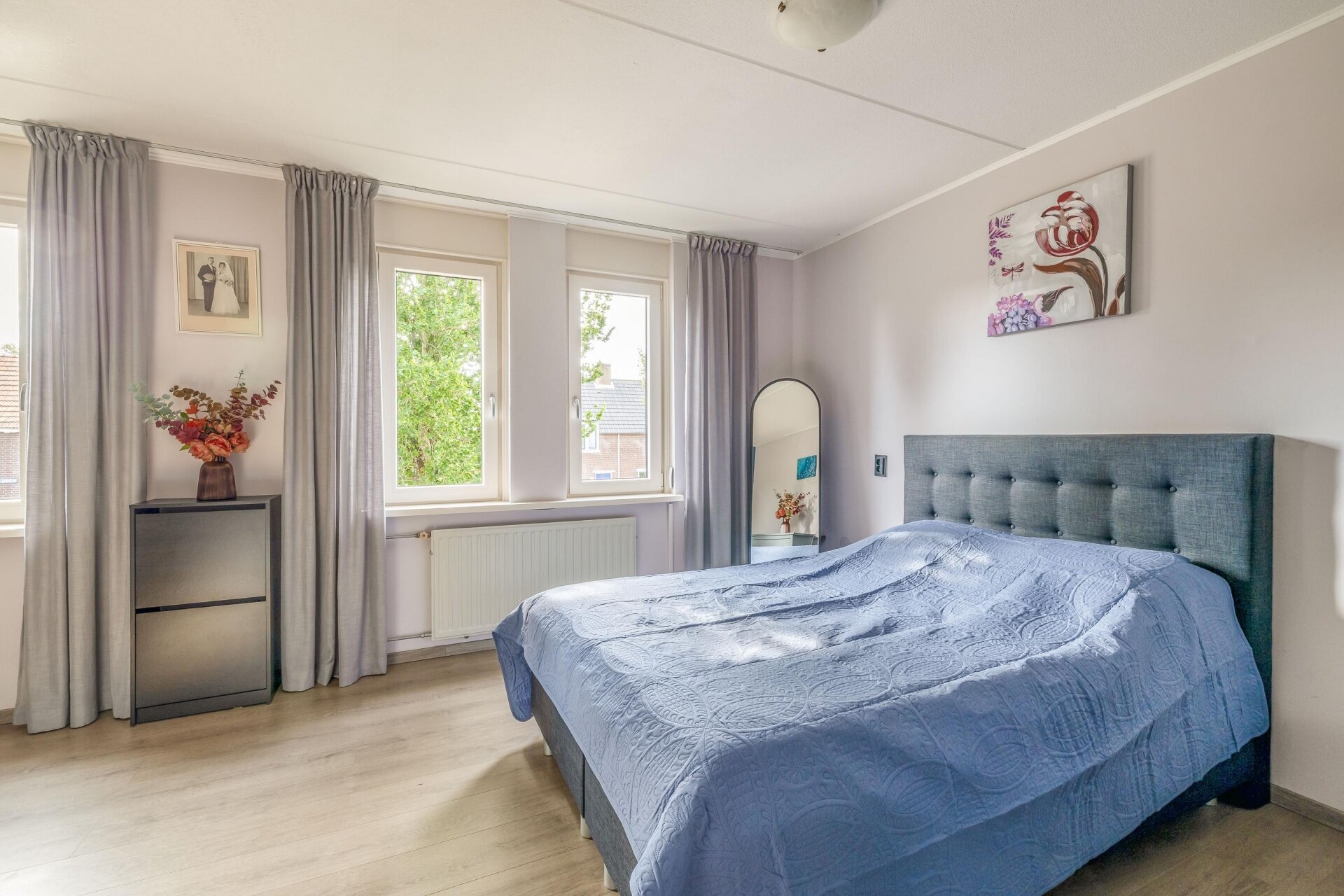 Op de eerste verdieping zijn twee ruime slaapkamers te vinden. De grootste slaapkamer ligt aan de voorzijde en biedt alle ruimte voor een tweepersoonsbed en een royale kledingkast, voorheen waren dit twee kamers. De tweede slaapkamer aan de achterzijde is perfect als kinderkamer, werkkamer of logeerkamer. De badkamer is praktisch ingericht met een douche, wastafel en toilet. Fijn detail: de bovenverdieping is voorzien van kunststof draai-kiep ramen met HR++-glas, wat onderhoudsvrij en extra isolerend is.