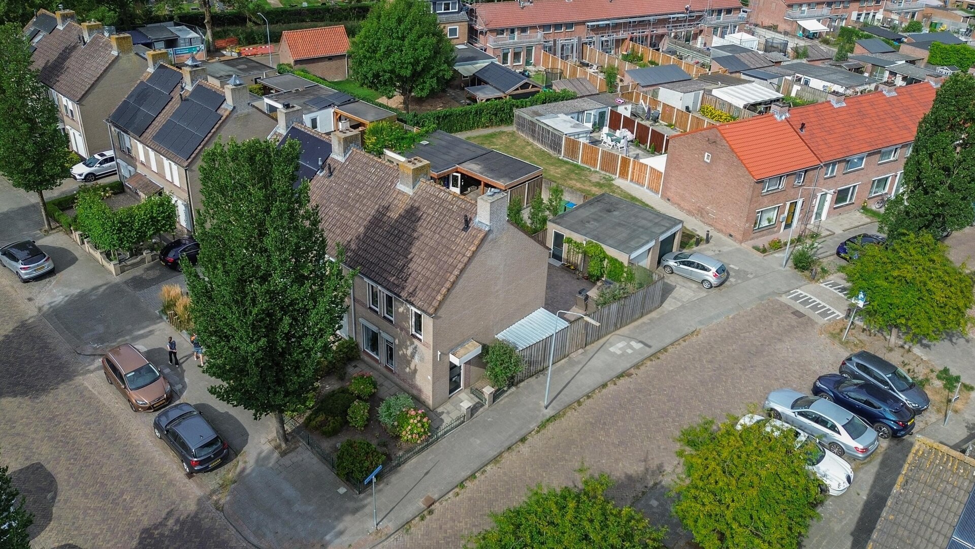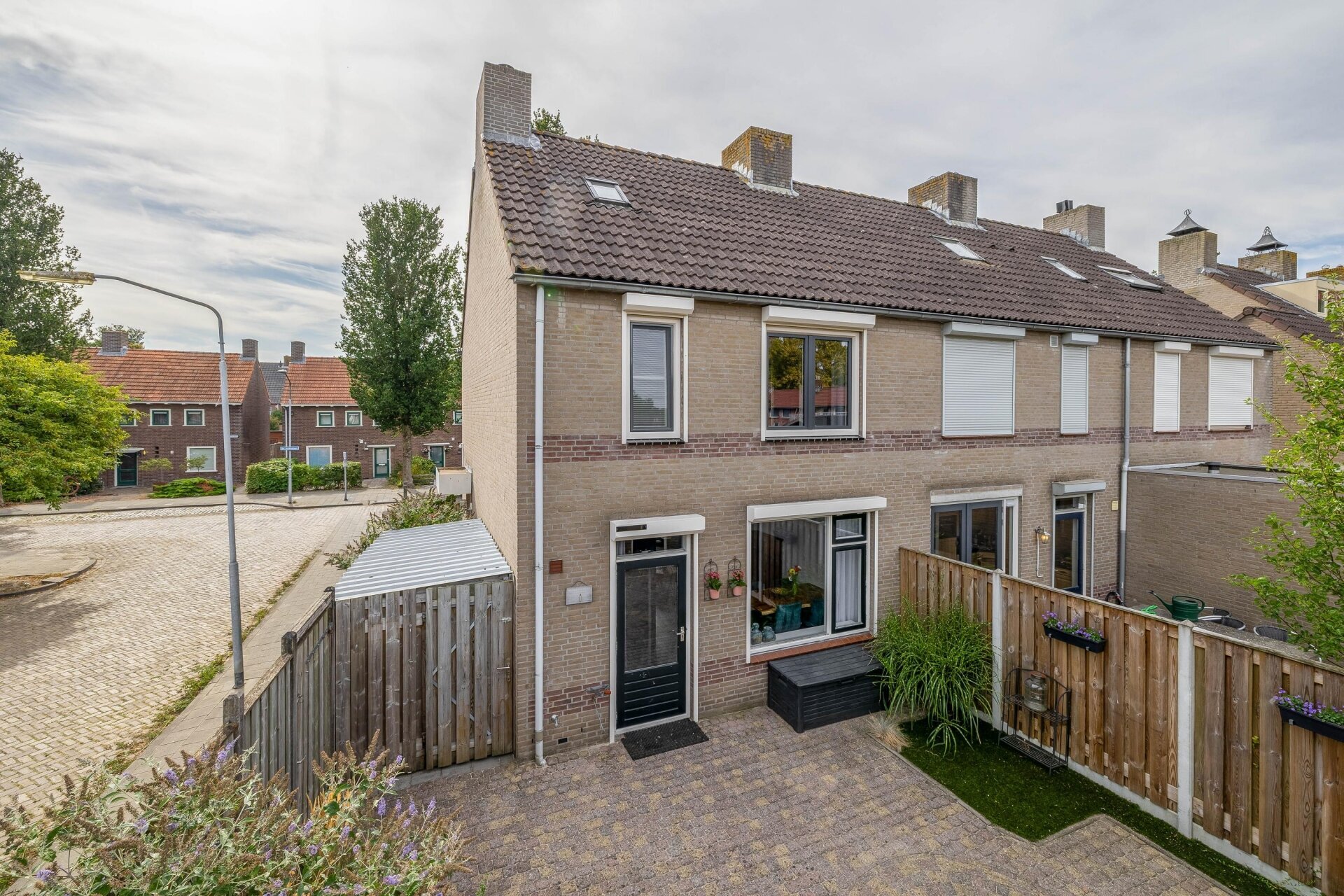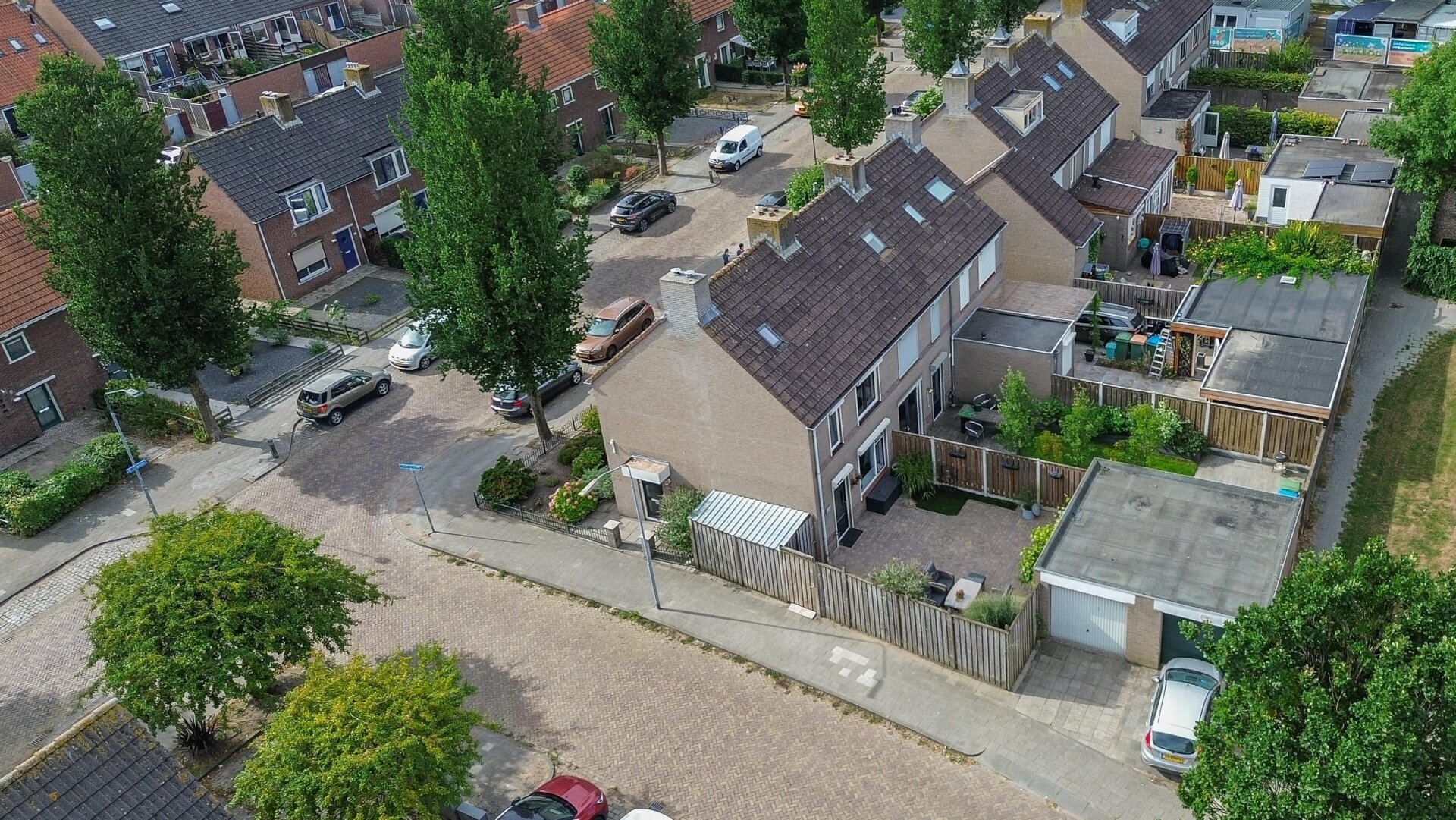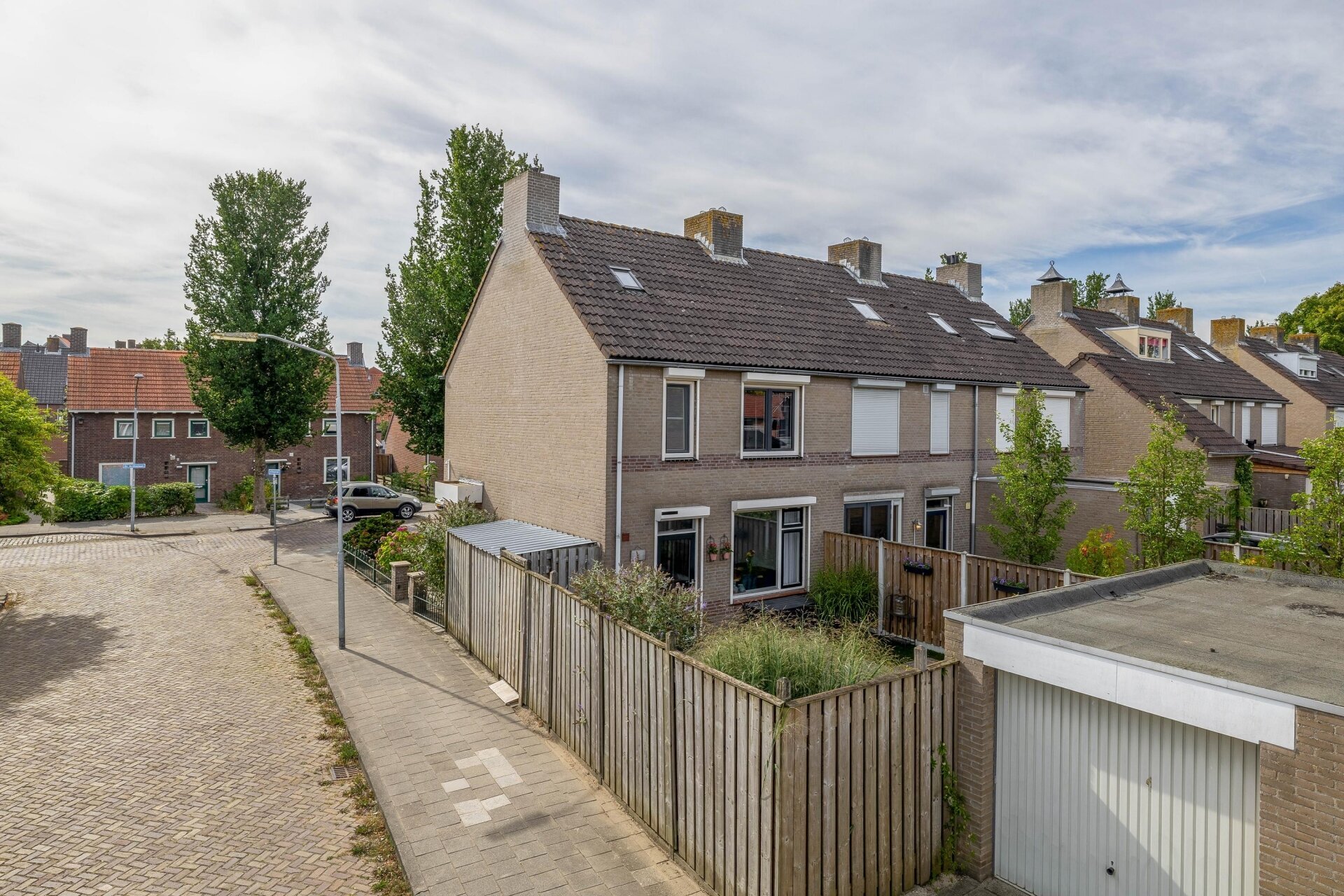 De voortuin is netjes onderhouden en door de hoekligging heb je aan de zijkant extra ruimte, wat zorgt voor een vrijer gevoel. Parkeren kan gemakkelijk in de straat en in de garage.