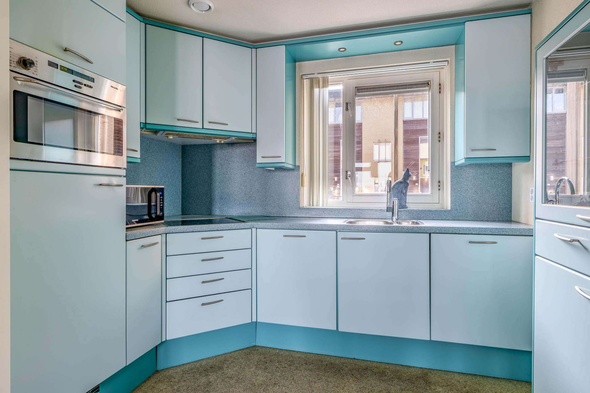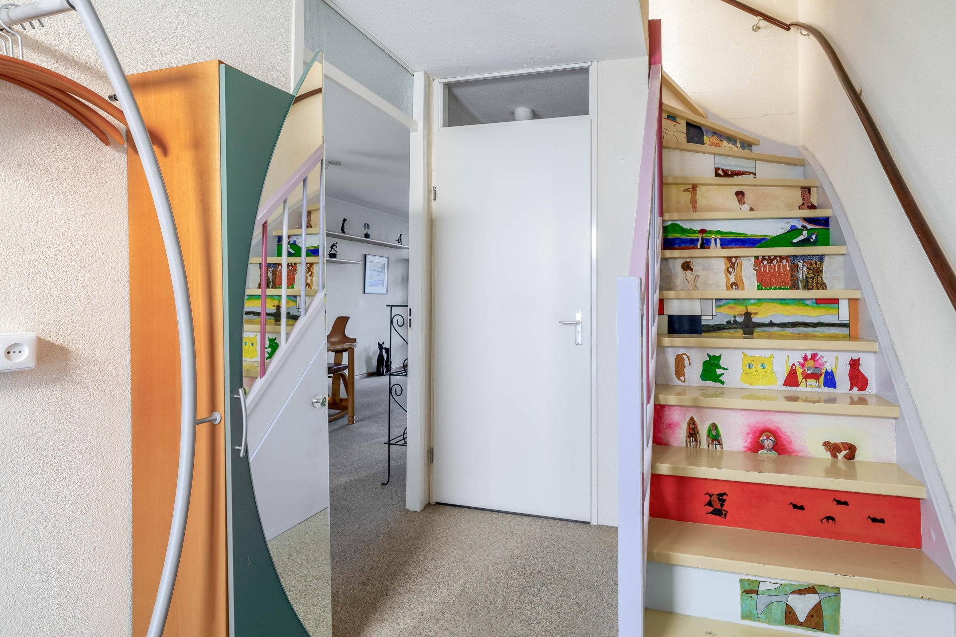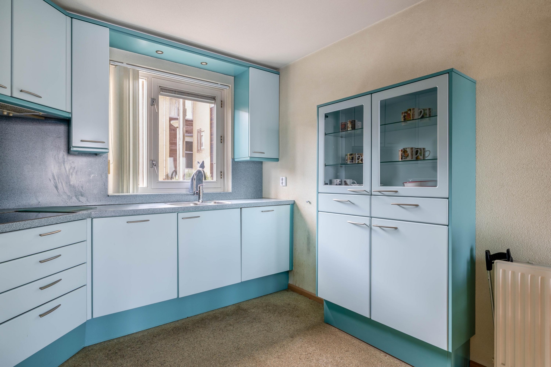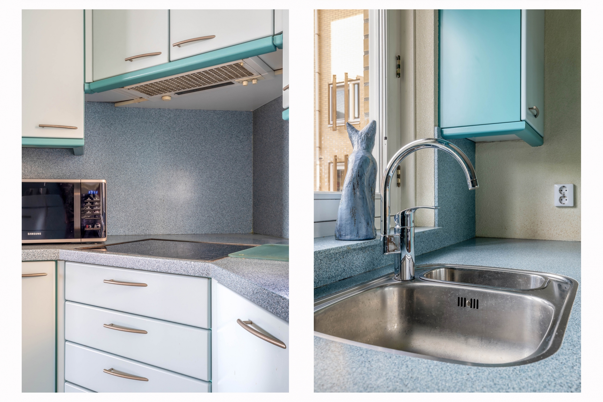 Via de ruime hal met trapopgang bereik je de moderne keuken, voorzien van diverse inbouwapparatuur. Vanuit de hal is tevens het separate toilet toegankelijk.