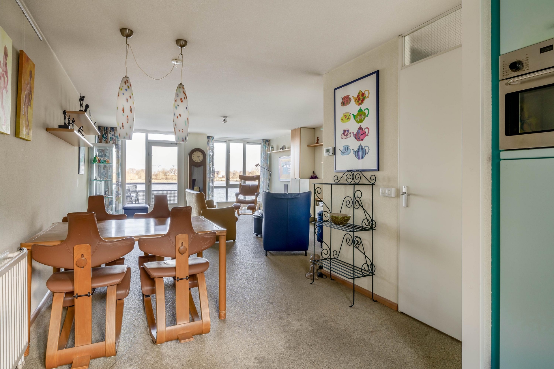 De woonkamer bevindt zich aan de achterzijde en biedt een fantastisch vrij uitzicht over de Nieuwe Maas. Dankzij de grote raampartijen geniet je hier van veel lichtinval. De woonkamer is voorzien van ITHO mechanische ventilatie en geeft toegang tot het balkon op het noordoosten.