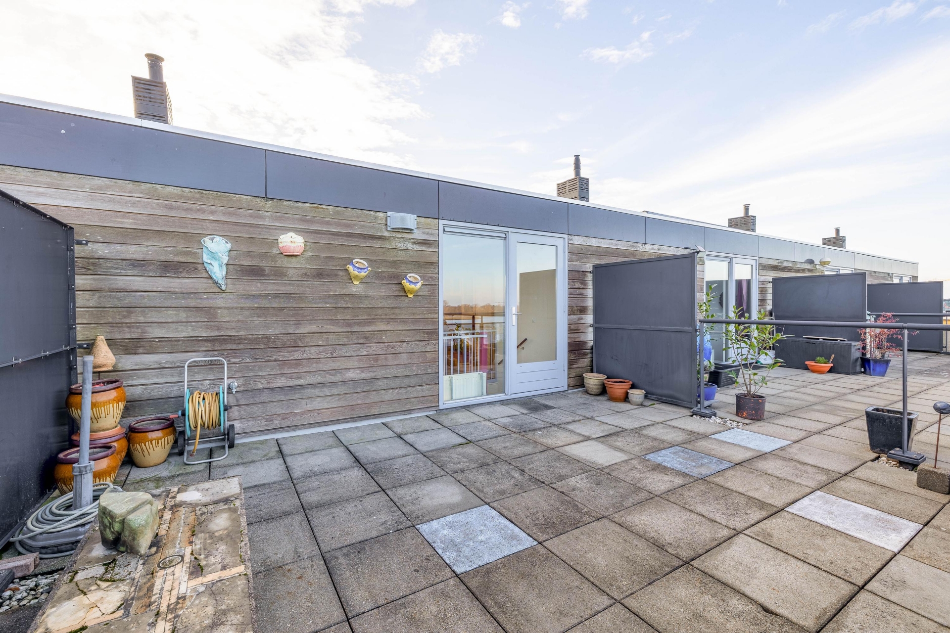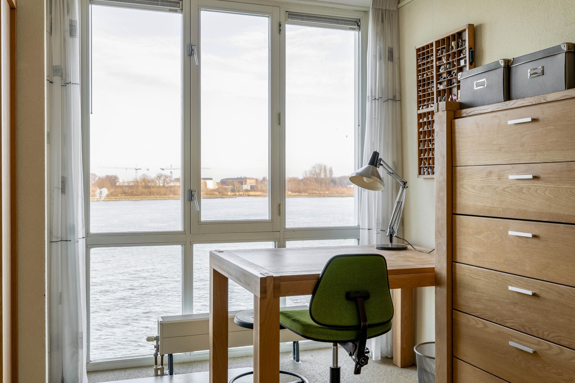 Wat deze woning écht bijzonder maakt, is het royale dakterras van maar liefst 27 m². Hier geniet je in alle privacy van het indrukwekkende uitzicht over het water. Daarnaast beschikt de woning over een balkon op het noordoosten, direct bereikbaar vanuit de woonkamer – de perfecte plek voor een kop koffie in de ochtendzon terwijl de schepen voorbijvaren.