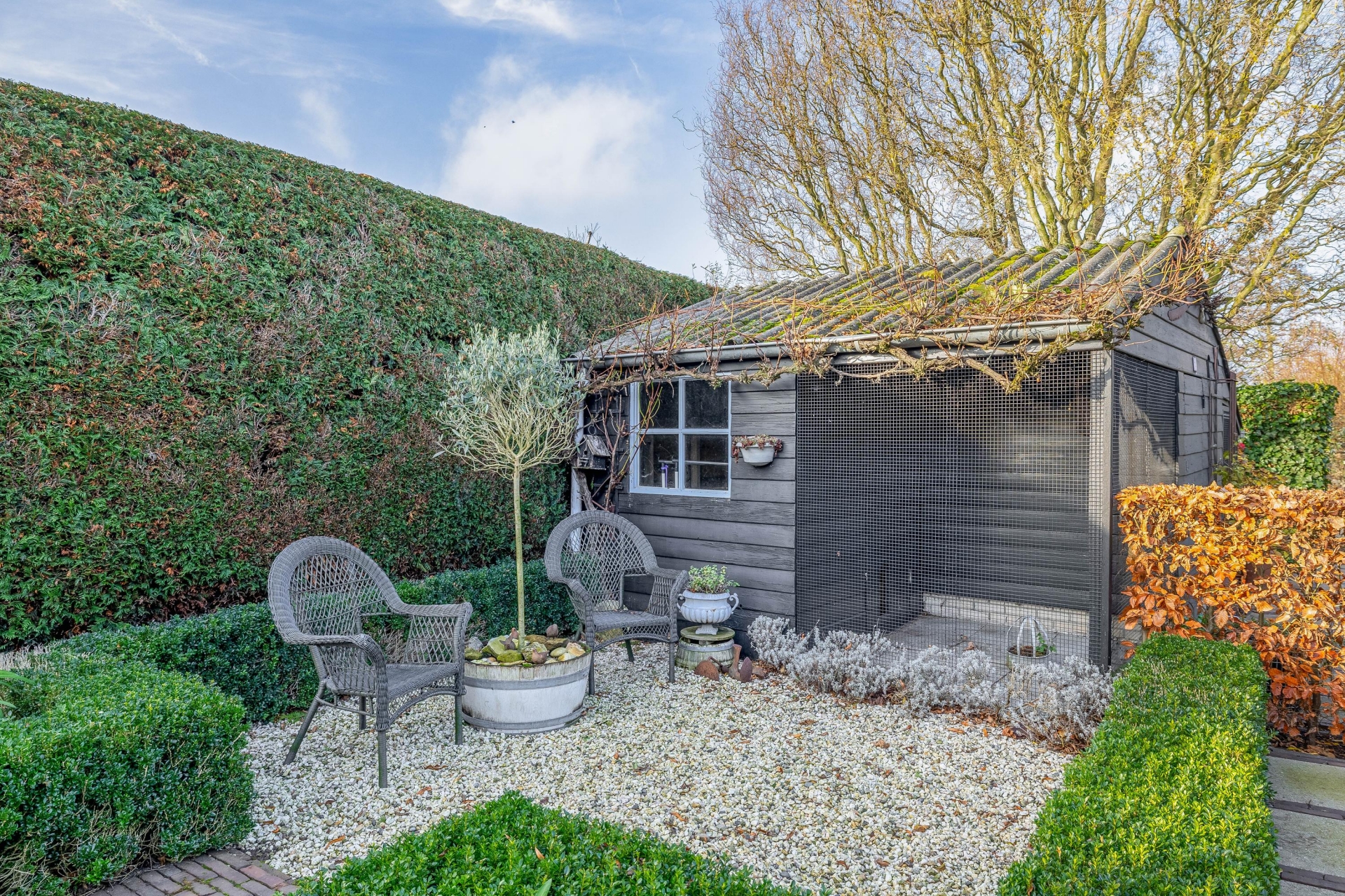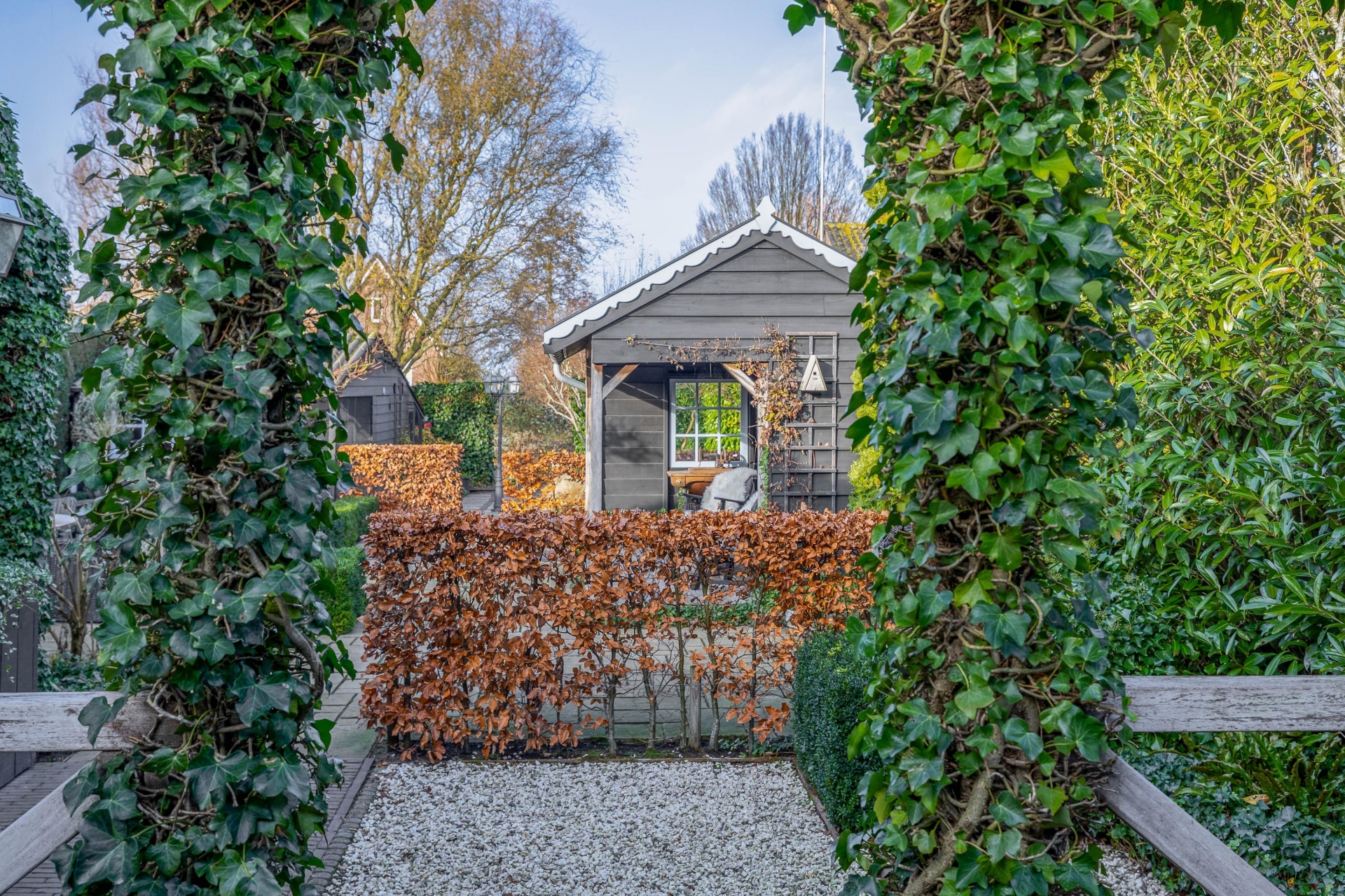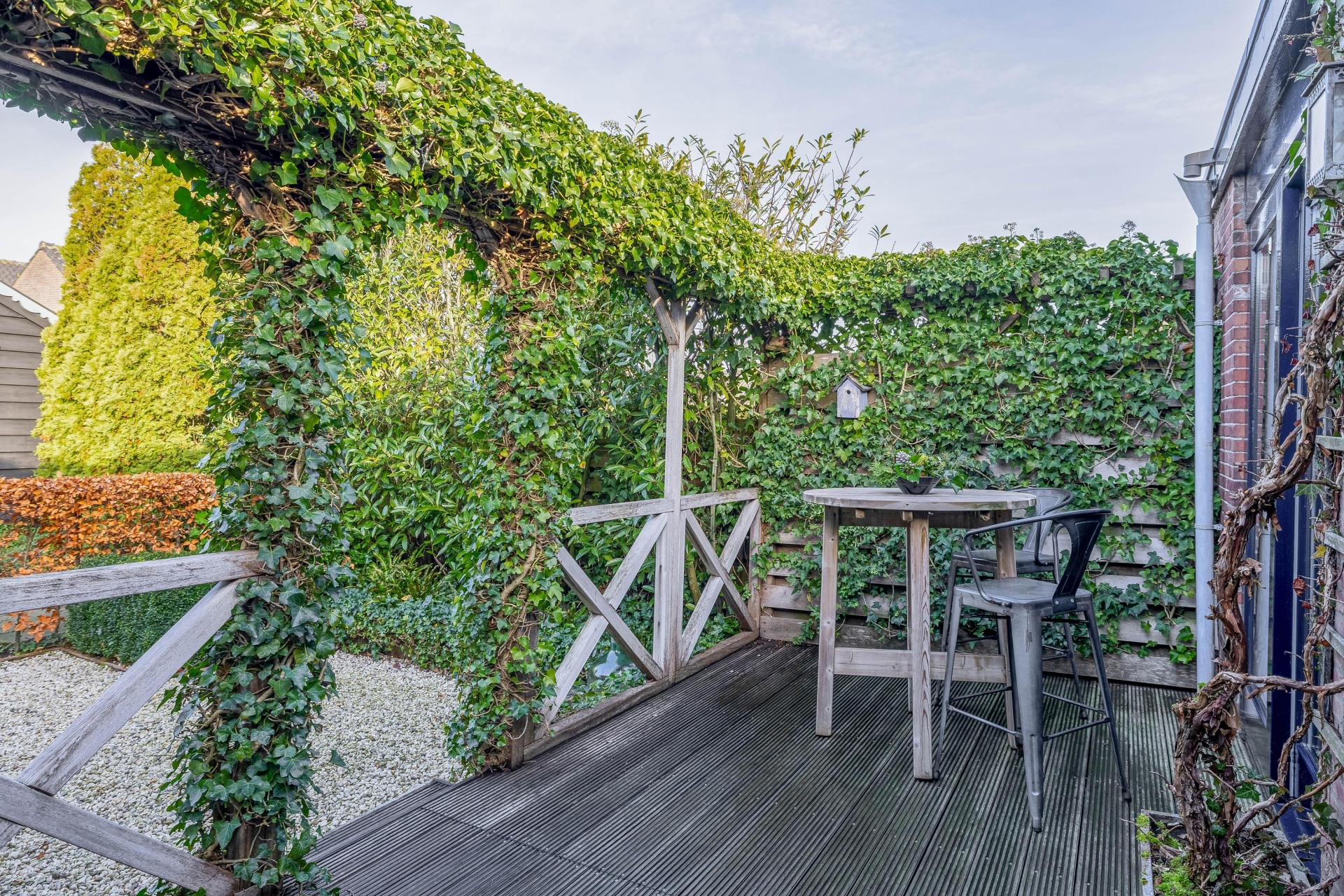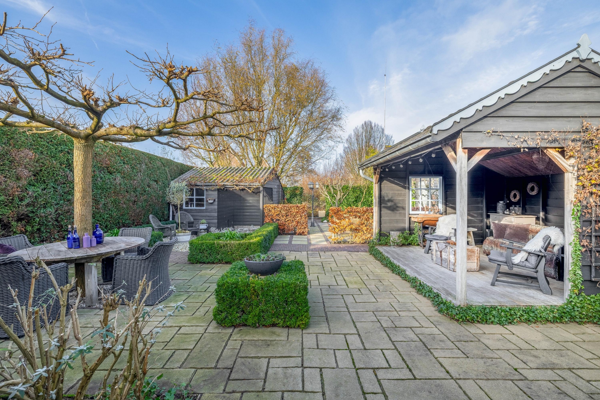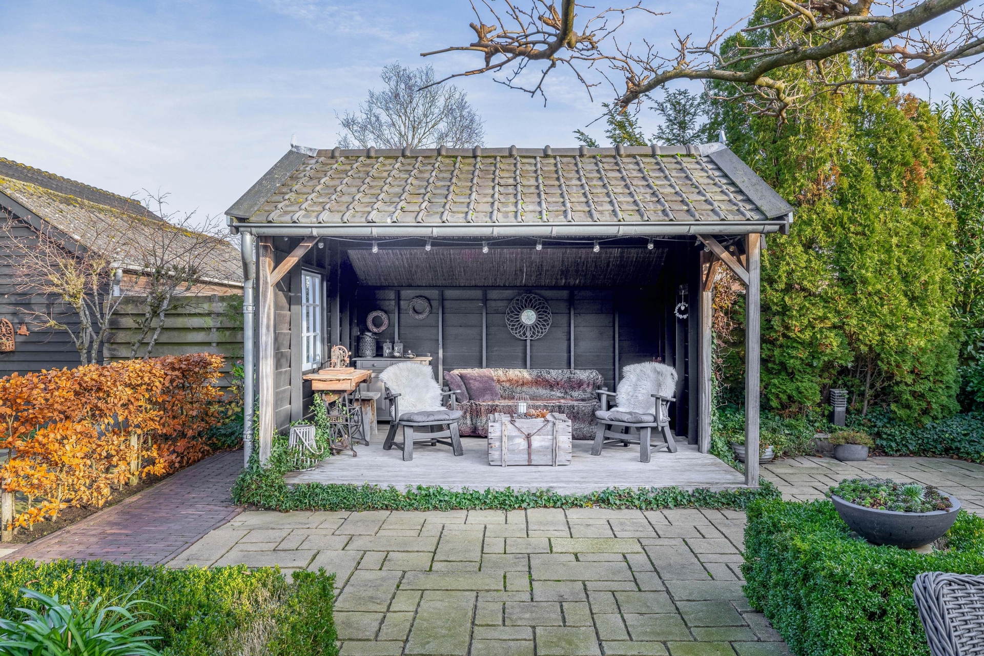 De fraai aangelegde tuin is absoluut een pluspunt. Door de ligging op een hoekperceel en het volwassen groen biedt de tuin optimale privacy. De achterzijde is voorzien van meerdere bergingen én een sfeervolle houten overkapping, perfect ingericht als buitenzit met een gezellige loungeset. Een ideale plek voor een zomeravond, een kop koffie in de ochtendzon of een barbecue met vrienden.