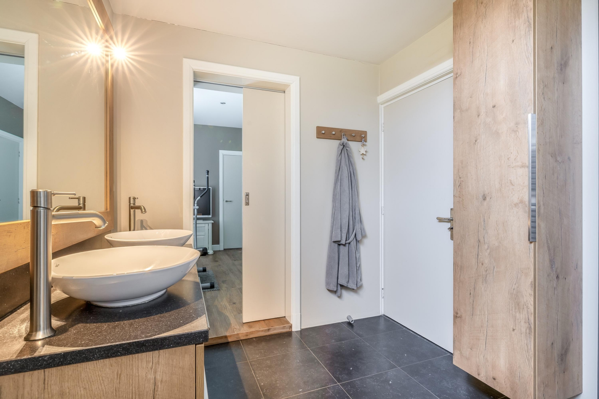 Wat direct opvalt, is de praktische en ruime indeling op de begane grond. De woning beschikt hier over een royale slaapkamer én een badkamer, waardoor gelijkvloers wonen mogelijk is – ideaal voor wie comfort zoekt op de lange termijn.