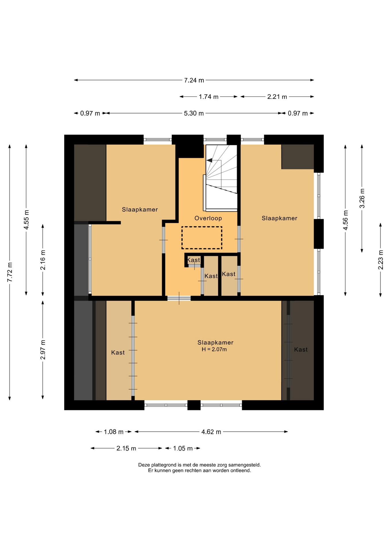 “Deze informatie is door ons met de nodige zorgvuldigheid samengesteld. Onzerzijds wordt echter geen enkele aansprakelijkheid aanvaard voor enige onvolledigheid, onjuistheid of anderszins, dan wel de gevolgen daarvan. Alle opgegeven maten en oppervlakten zijn indicatief.”