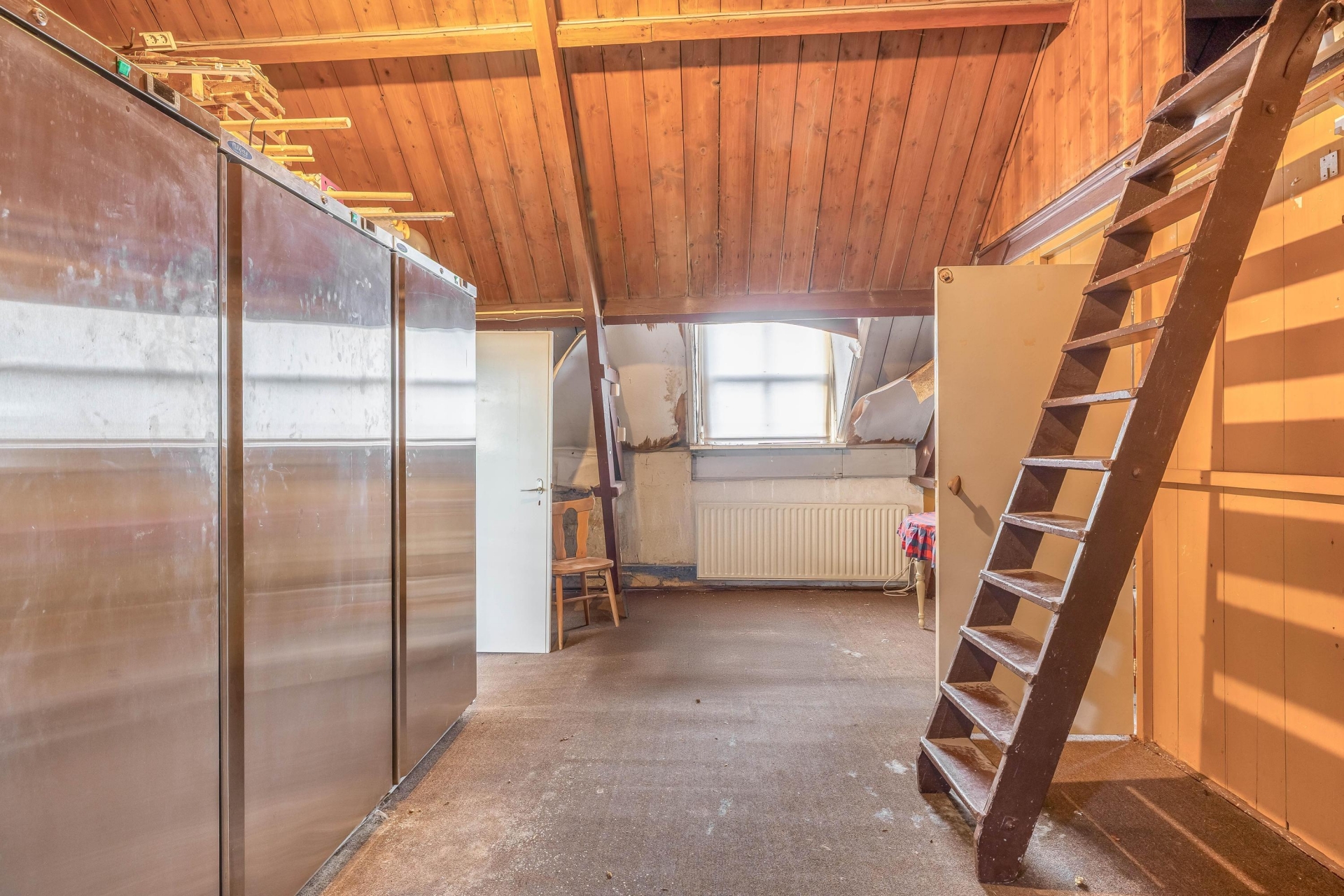 De huidige binnenruimte ademt nog de sfeer van het voormalige gebruik. Grote open vertrekken, meerdere ruimtes naast elkaar en een indeling die schreeuwt om herziening. Zie je hier al een royale woonkamer met leefkeuken? Of juist een speelse split-level indeling met werkruimte aan huis? Het kan allemaal. Met zeven kamers in totaal en vier mogelijke slaapkamers is er volop ruimte om te schuiven, te breken en opnieuw op te bouwen.