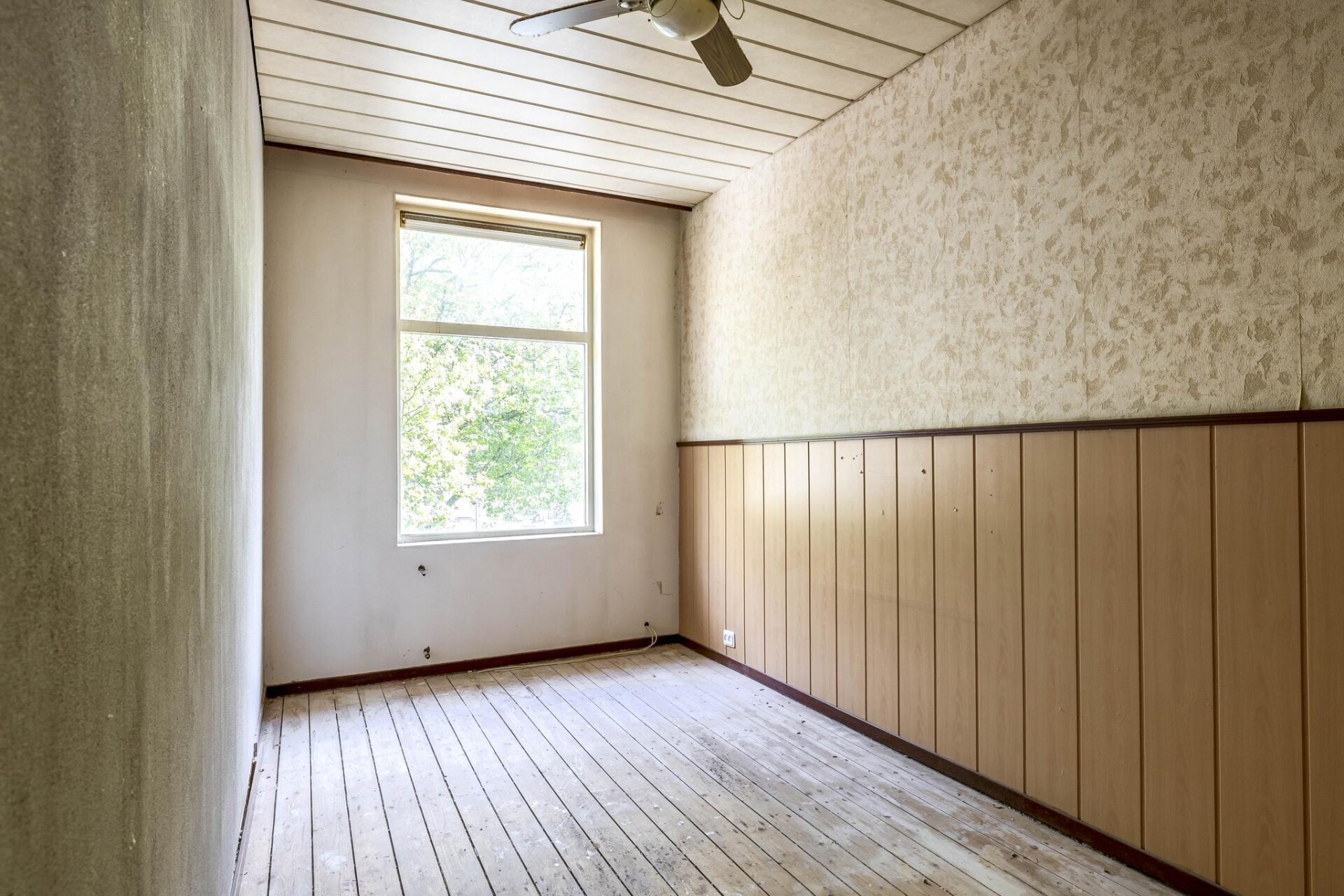 Wat direct opvalt als je binnenkomt, is de fijne lichtinval. Ondanks de huidige staat van het huis voelt de ruimte open en helder aan. De woonkamer kijkt uit over de rustige straat en biedt voldoende plek voor een gezellige zithoek en eethoek. De aparte keuken is gedateerd, en biedt volop mogelijkheden om iets moderns neer te zetten.