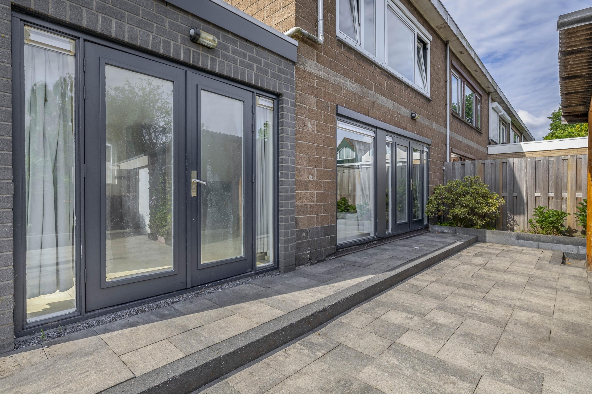 De begane grond is verrassend licht dankzij de vele raampartijen en de gunstige hoekligging. De ruime woonkamer heeft een open uitstraling en biedt genoeg plek voor een royale zithoek en een grote eettafel. De tuingerichte indeling zorgt ervoor dat je het buitengevoel naar binnen haalt – via meerdere openslaande deuren sta je zo in de tuin.
