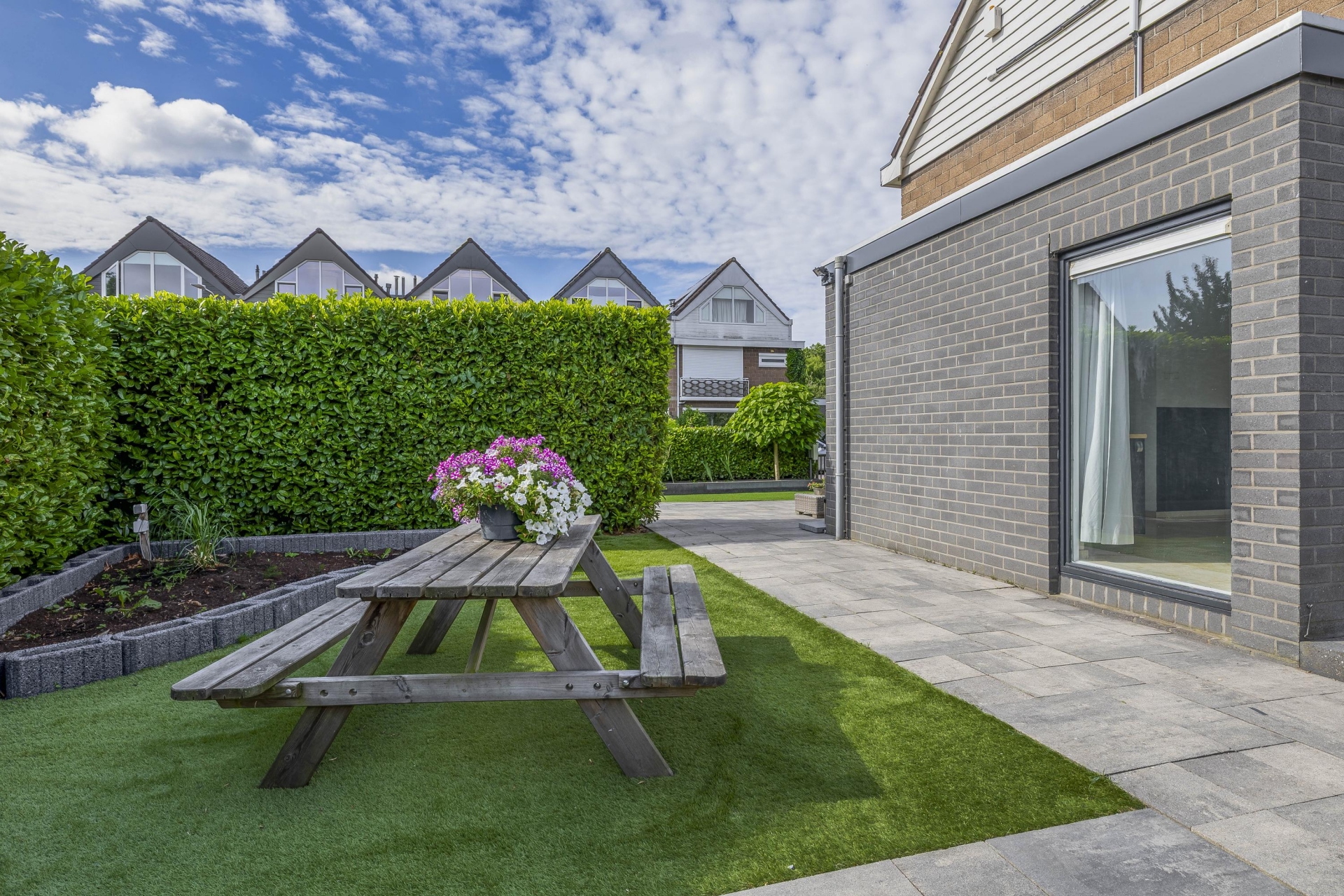 Wat dit huis écht onderscheidt is de buitenruimte. Zelden zie je zulke royale tuinen rondom een woning in deze prijsklasse. De achtertuin is gelegen op het noorden, maar dankzij de vrije ligging en grootte vang je hier de hele dag zon – van ochtendzon in de voortuin tot avondzon op het terras achterin. De tuin is netjes aangelegd met sierbestrating, kunstgras, borders én een fijne zithoek onder een houten overkapping.