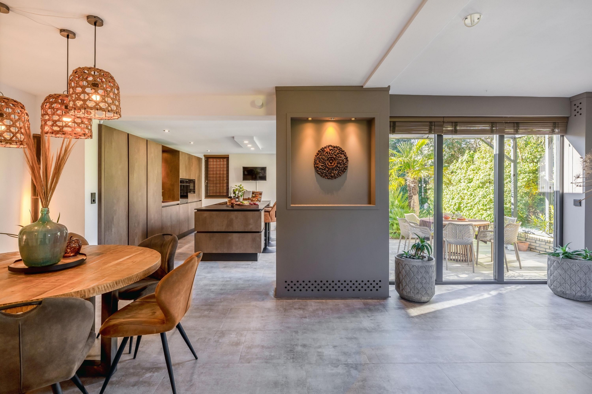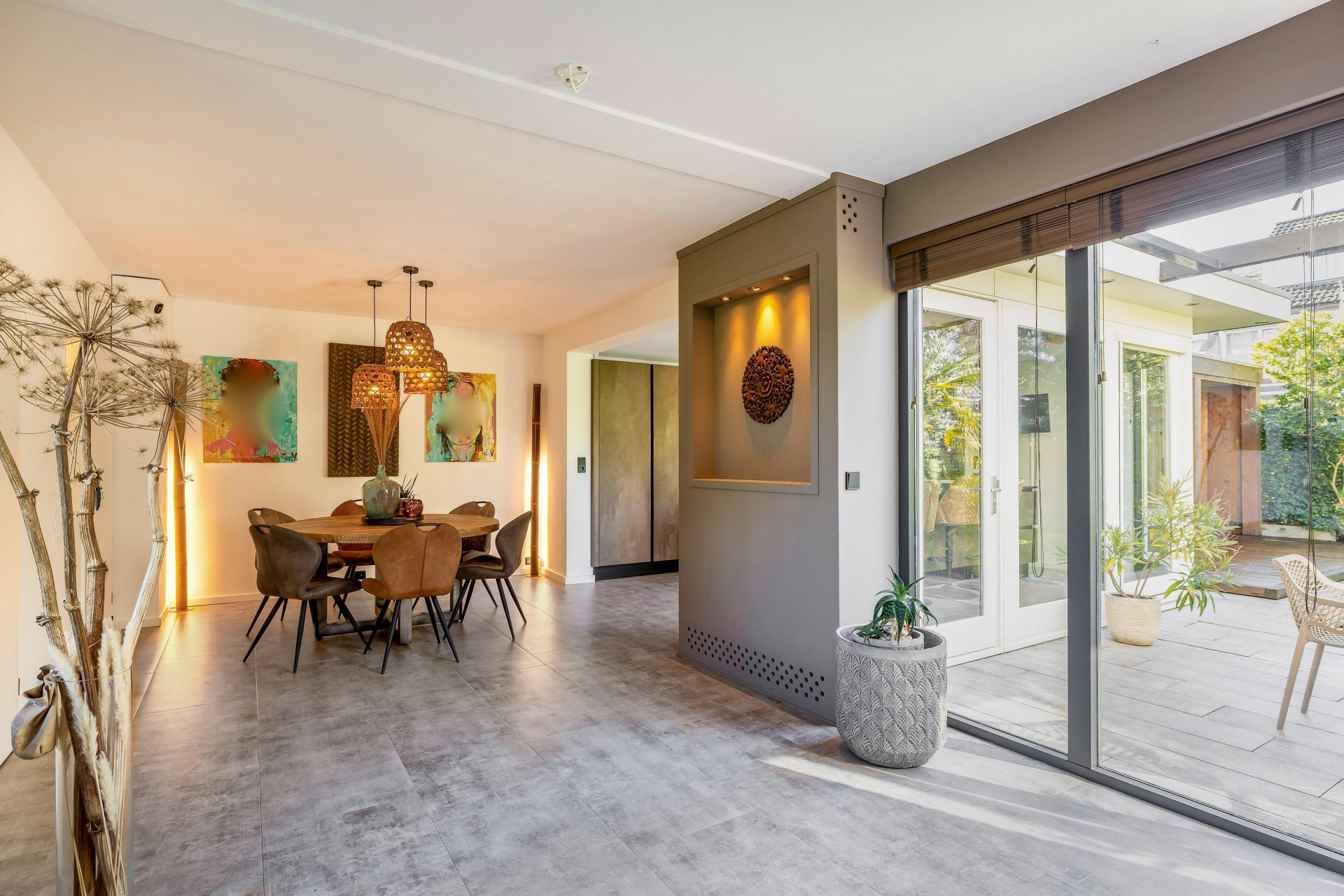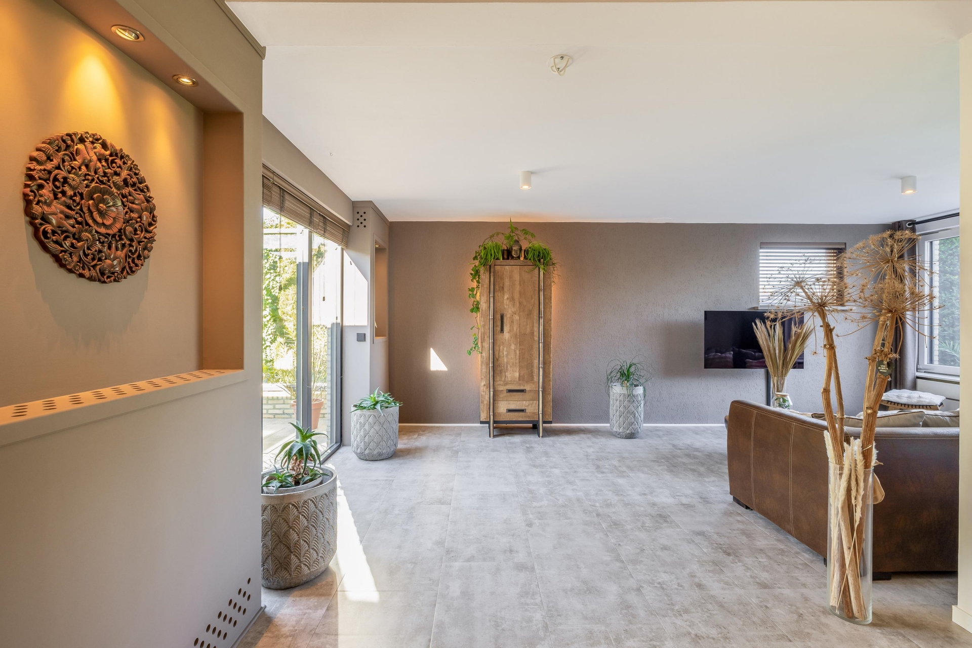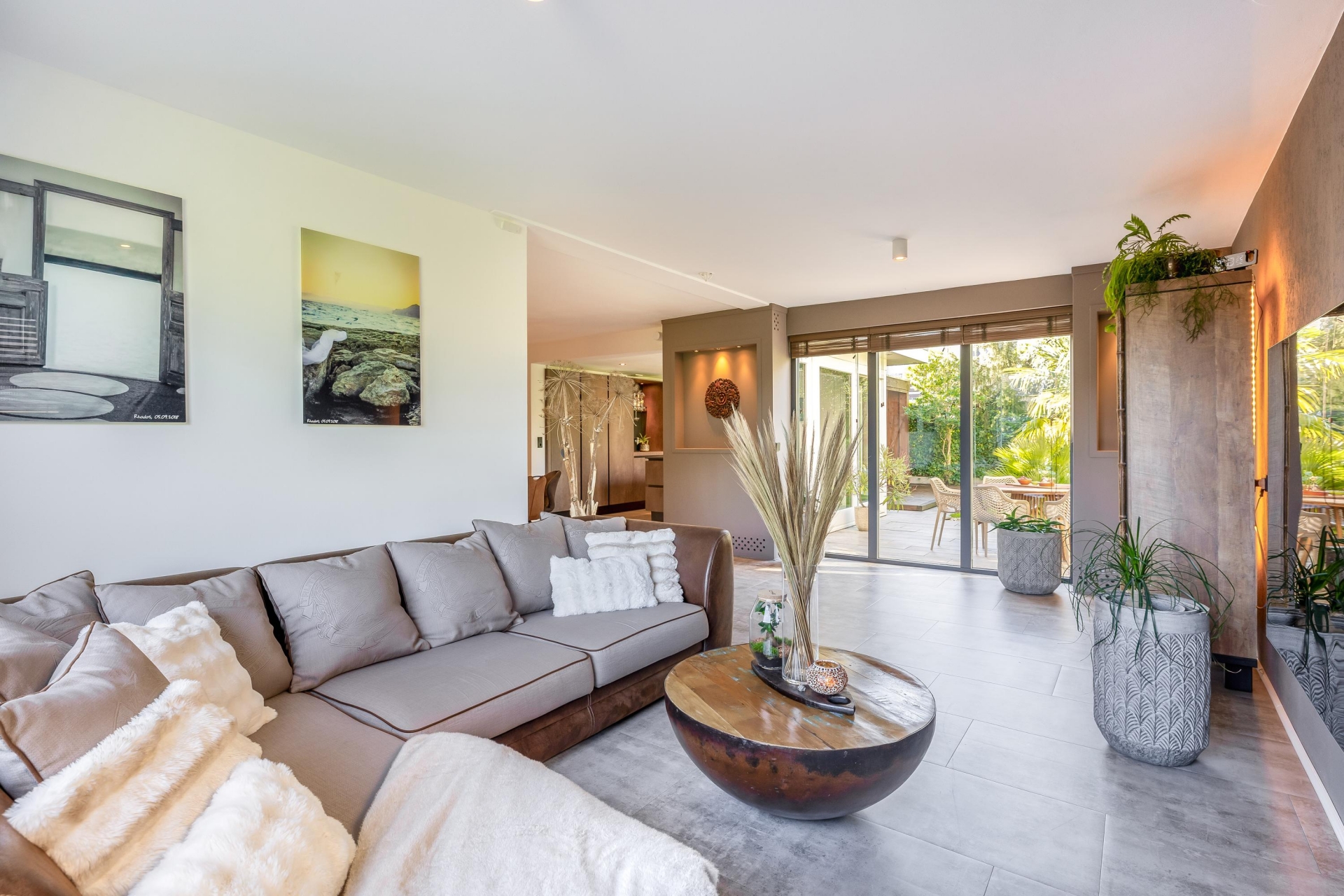 Zodra je binnenkomt valt meteen de fijne lichtinval op. Grote raampartijen zorgen voor een open en ruim gevoel en verbinden binnen moeiteloos met buiten.