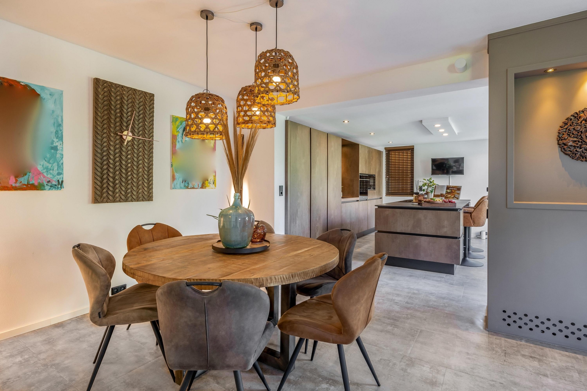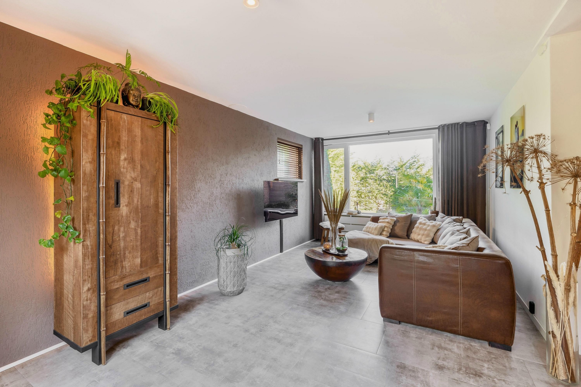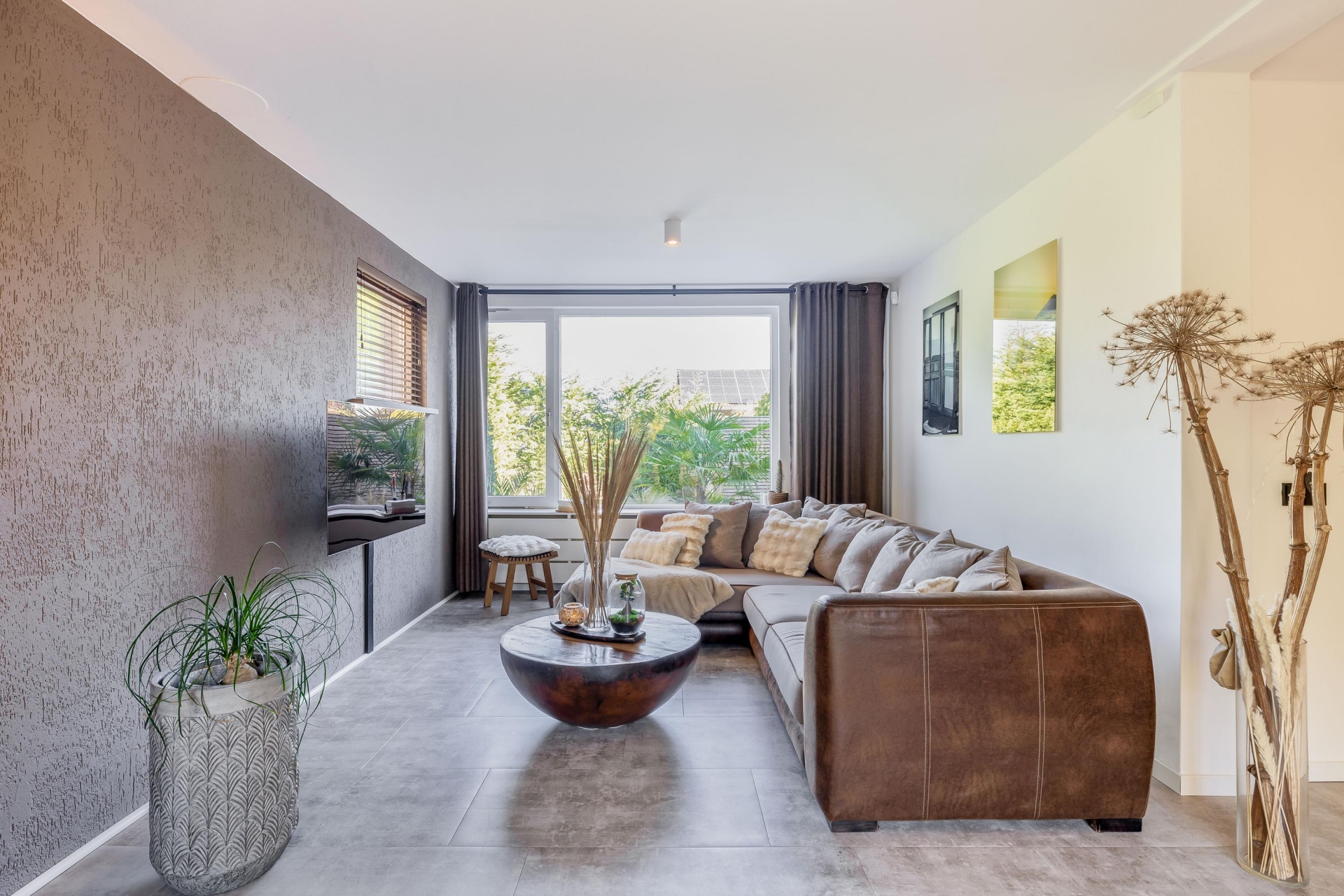 De woonkamer sluit naadloos aan op de keuken en biedt een gezellige zithoek. De moderne afwerking, rustige kleuren en hoogwaardige materialen geven het geheel een stijlvolle en warme uitstraling.