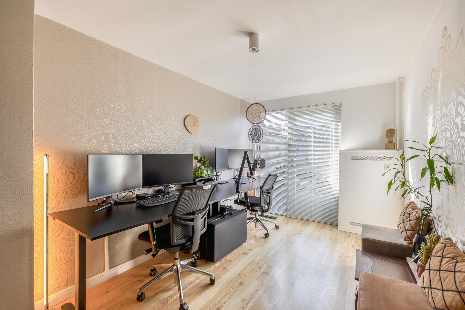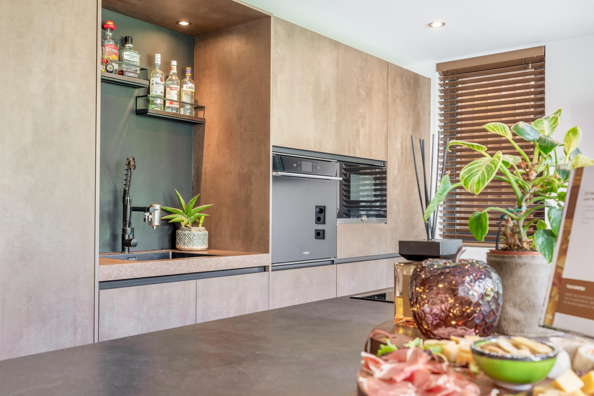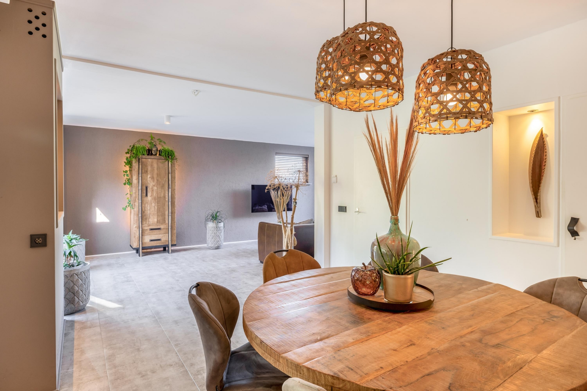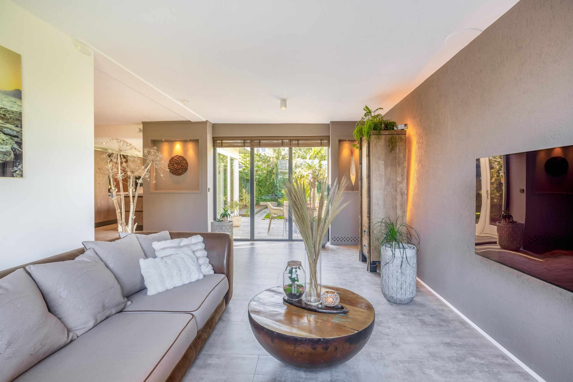 De woonkamer sluit naadloos aan op de keuken en biedt een gezellige zithoek. De moderne afwerking, rustige kleuren en hoogwaardige materialen geven het geheel een stijlvolle en warme uitstraling.
