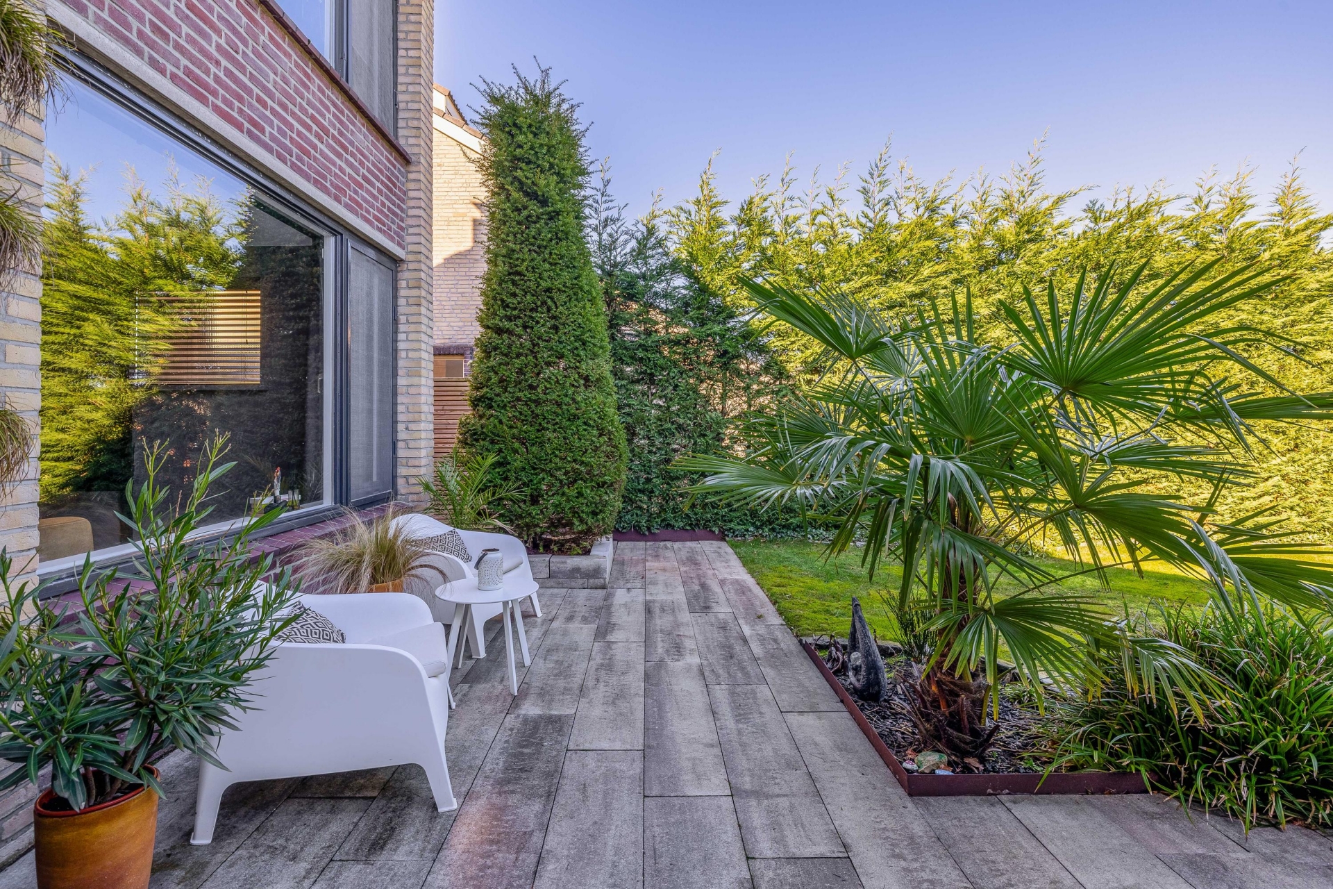 Hier geniet je van lange zomeravonden met vrienden of een rustige ochtendkoffie in de zon. Dankzij de slimme indeling zijn er meerdere zitplekken – in de zon of juist in de schaduw.