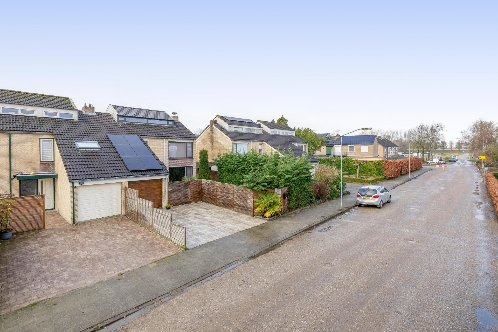 De ruime oprit biedt plek voor twee auto’s op eigen terrein.
