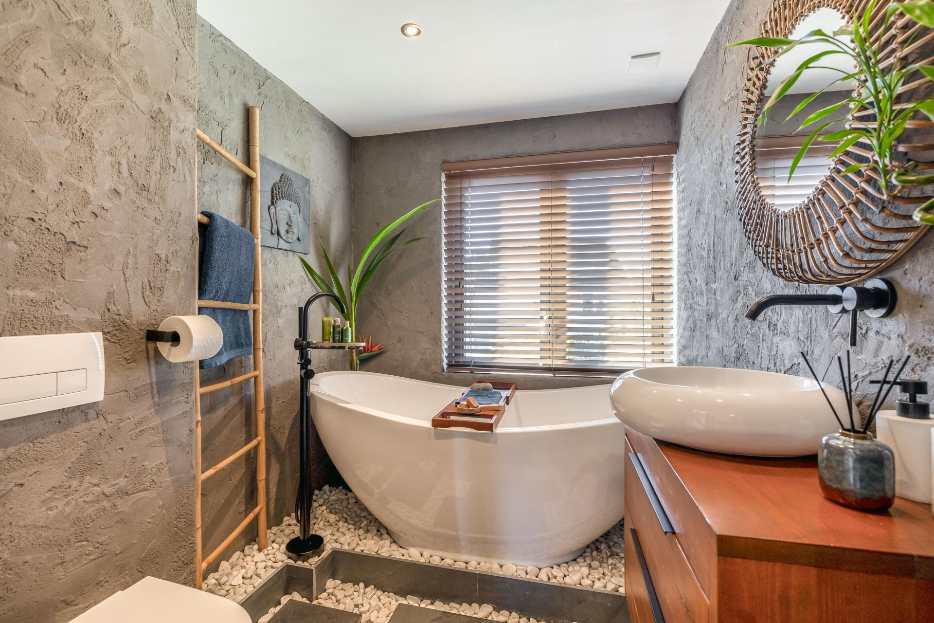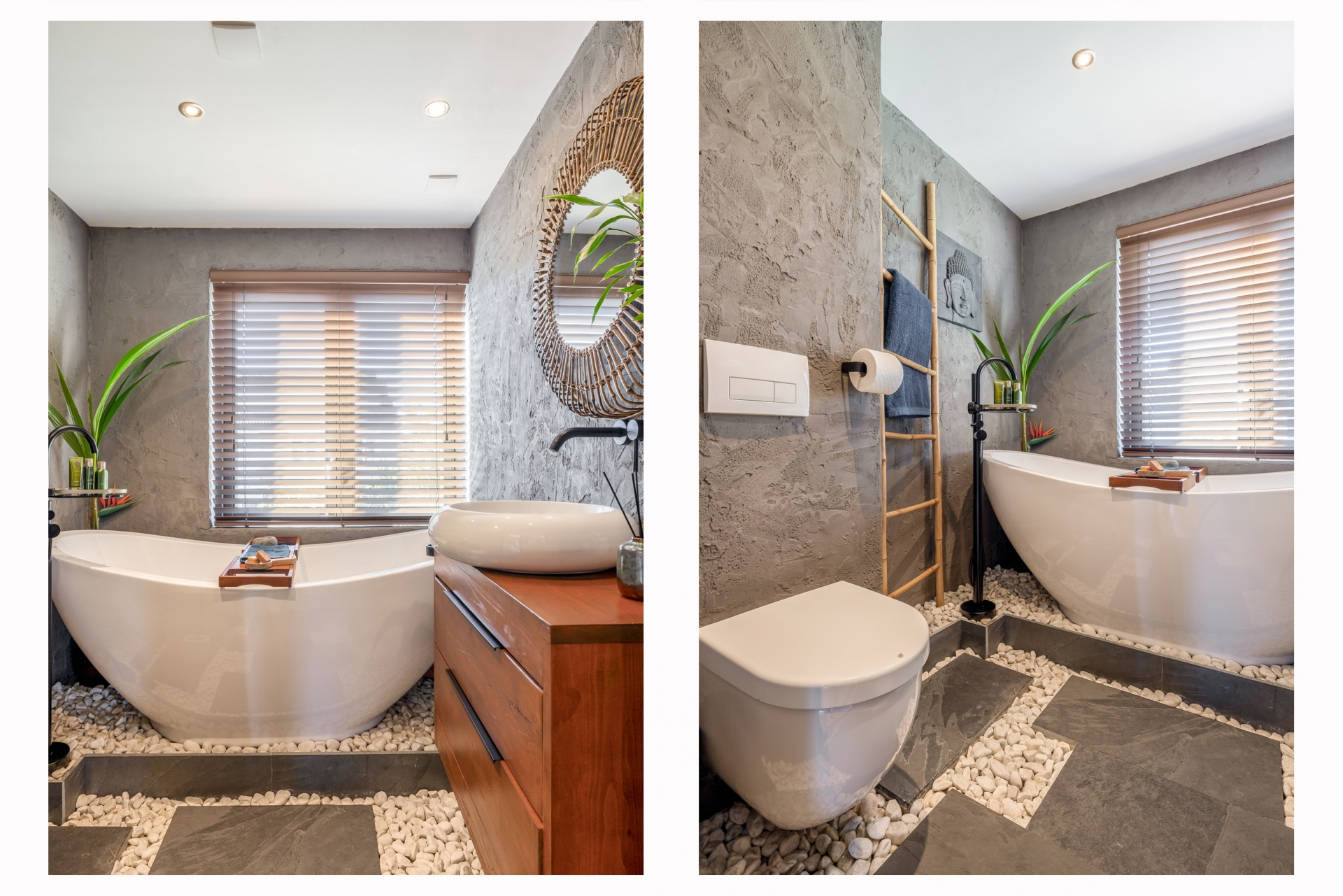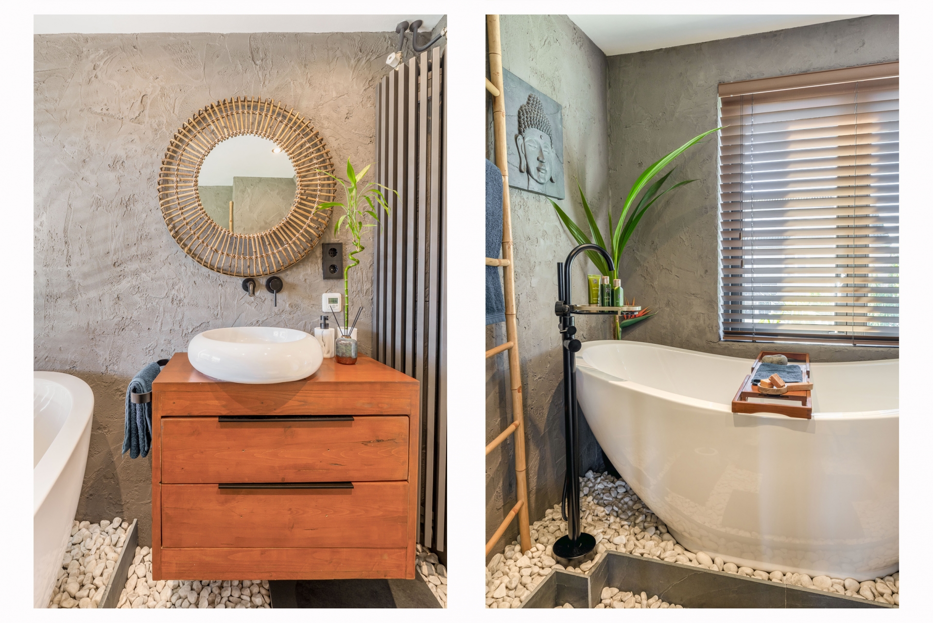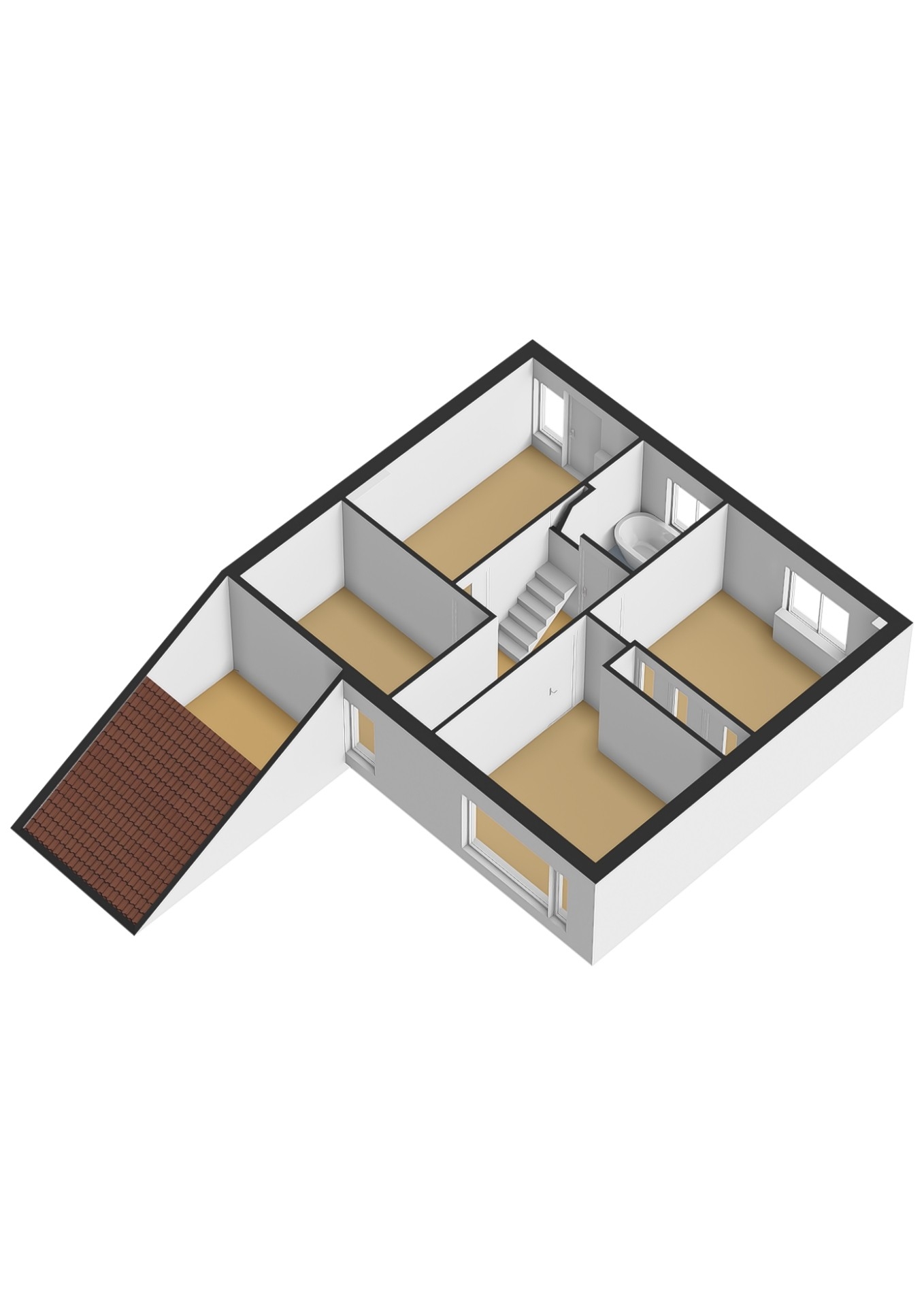 Ook op de verdiepingen merk je dat dit huis verrassend veel ruimte biedt. Op de eerste verdieping bevinden zich meerdere slaapkamers en een moderne badkamer. De badkamer op de eerste verdieping is in 2020 volledig vernieuwd en heeft een rustige, wellness achtige uitstraling en is voorzien van vloerverwarming. De natuurlijke afwerking en subtiele muurstructuur halen het gevoel van buiten naar binnen. De badkamer is voorzien van een ligbad, toilet en een stijlvol wastafelmeubel.