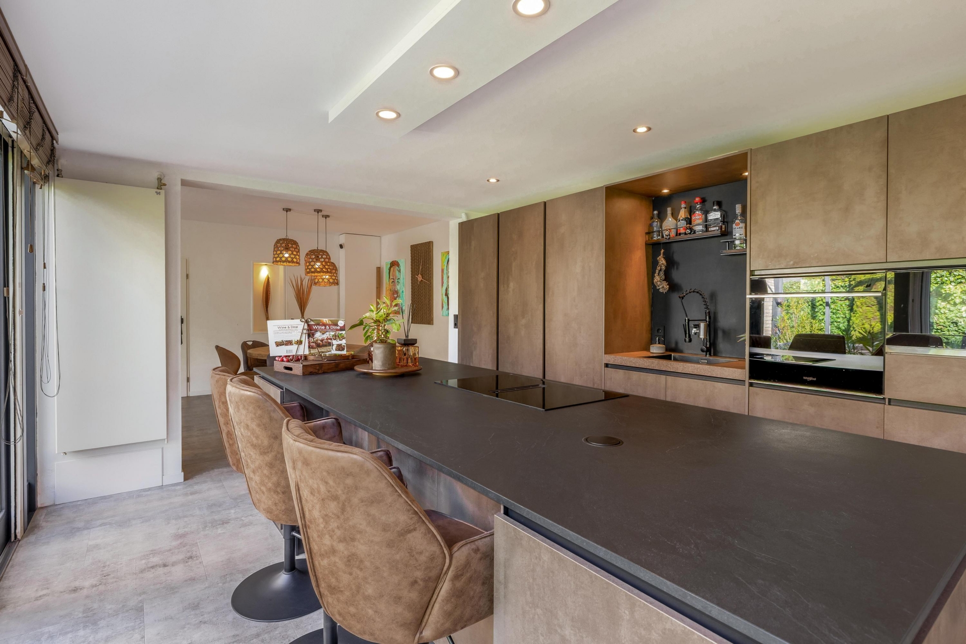 De keuken is in 2020 volledig vernieuwd en uitgevoerd met luxe Siemens-inbouwapparatuur en een indrukwekkend kookeiland van maar liefst 3 meter bij 1,20 meter. Dit royale eiland vormt het centrale punt van de ruimte en biedt niet alleen volop werkruimte, maar ook praktische opbergruimte rondom, waardoor alles binnen handbereik is. Terwijl jij kookt, schuiven familie of vrienden gezellig aan de eettafel of aan het eiland. De grote raampartijen, aparte terrasdeur en de schuifpui naar de tuin laten het daglicht rijkelijk binnenstromen en zorgen voor een prachtige verbinding met het buitenleven. Extra comfort? De keuken is bovendien voorzien van vloerverwarming.