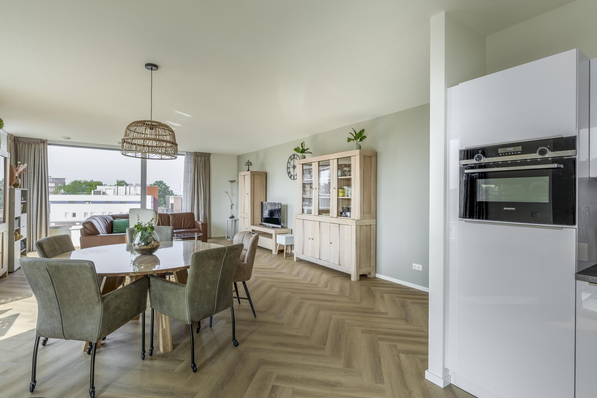 Dit appartement straalt luxe en rust uit vanaf het moment dat je binnenkomt. De afwerking is strak, modern en smaakvol, met een hoogwaardige vloerafwerking, glad gestuukte wanden en grote raampartijen die zorgen voor veel lichtinval. De woonkamer is ruim opgezet en staat in directe verbinding met de moderne open keuken. Dankzij de slimme indeling is er voldoende ruimte voor zowel een royale zithoek als een grote eettafel.
