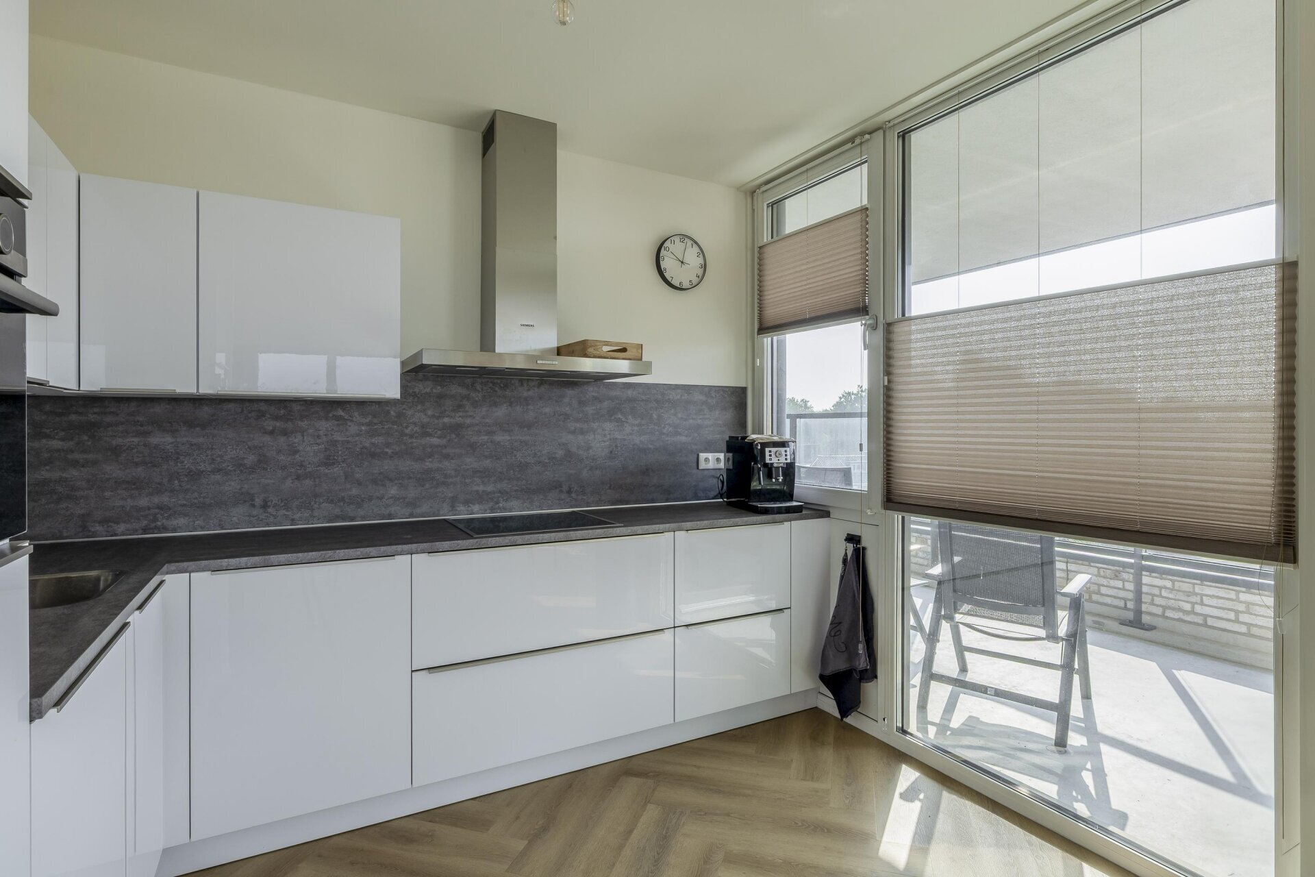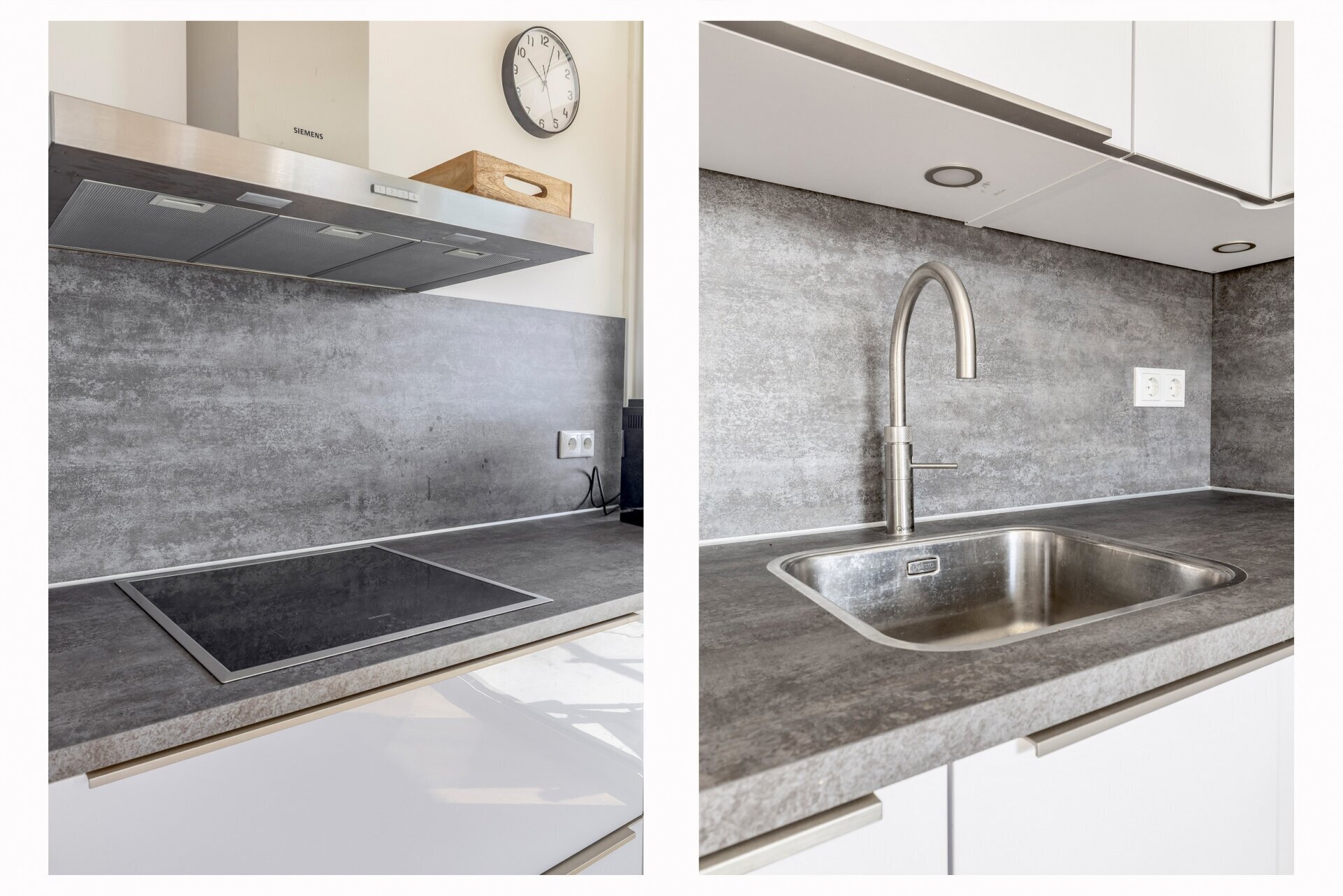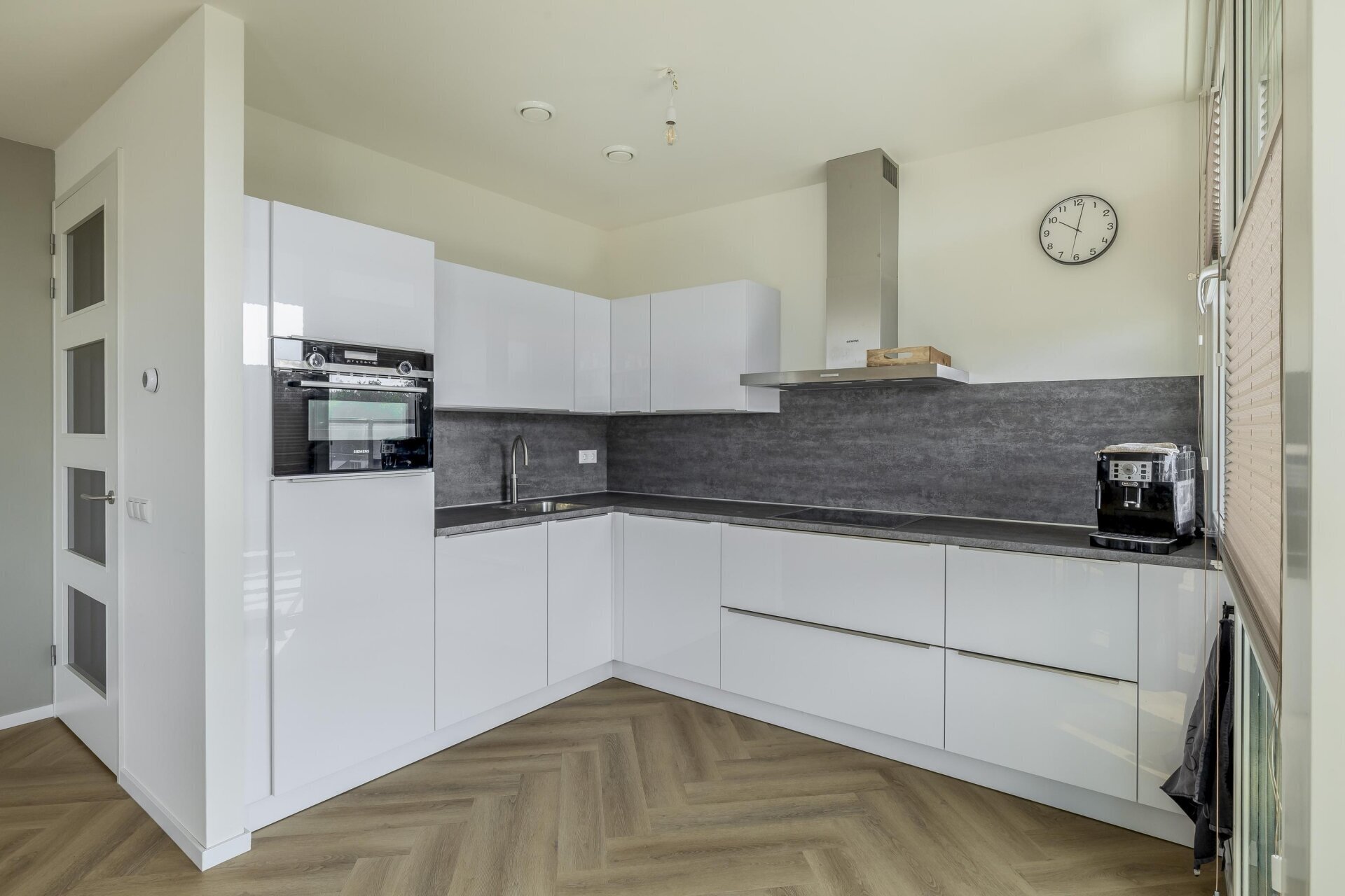 De keuken is uitgevoerd in een neutrale kleurstelling en voorzien van diverse inbouwapparatuur. Of je nu uitgebreid wilt koken of gewoon wilt genieten van een kop koffie in de ochtendzon, het is hier allemaal mogelijk. Direct grenzend aan de woonkamer/keuken bevindt zich het terras: een fijne buitenruimte op het zuidoosten waar je beschut zit en heerlijk buiten kunt eten of ontspannen met uitzicht op de omgeving.