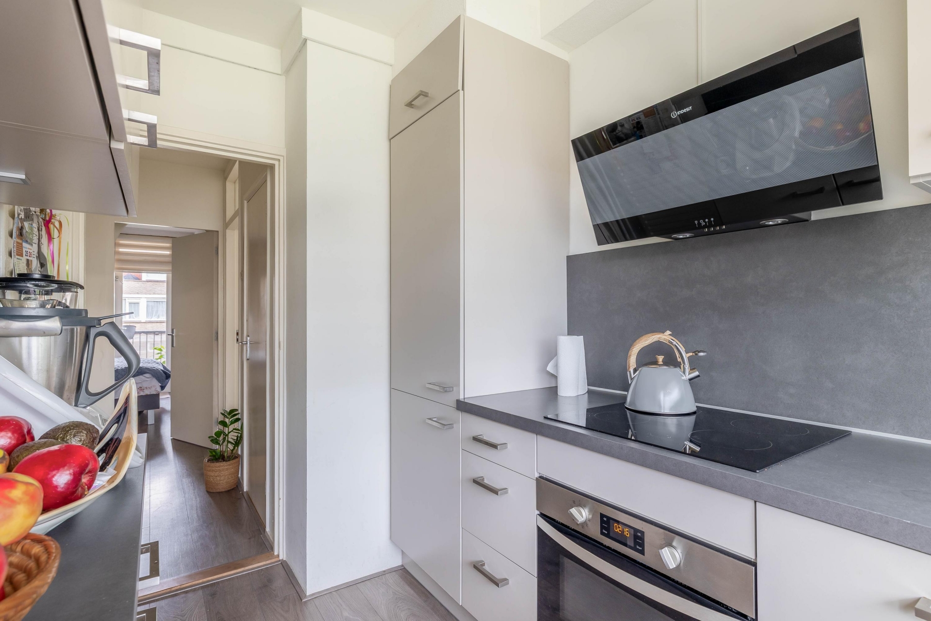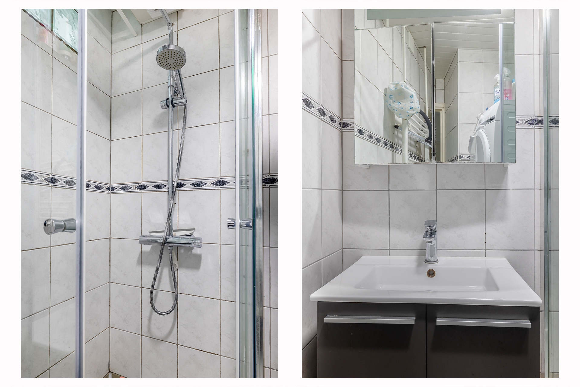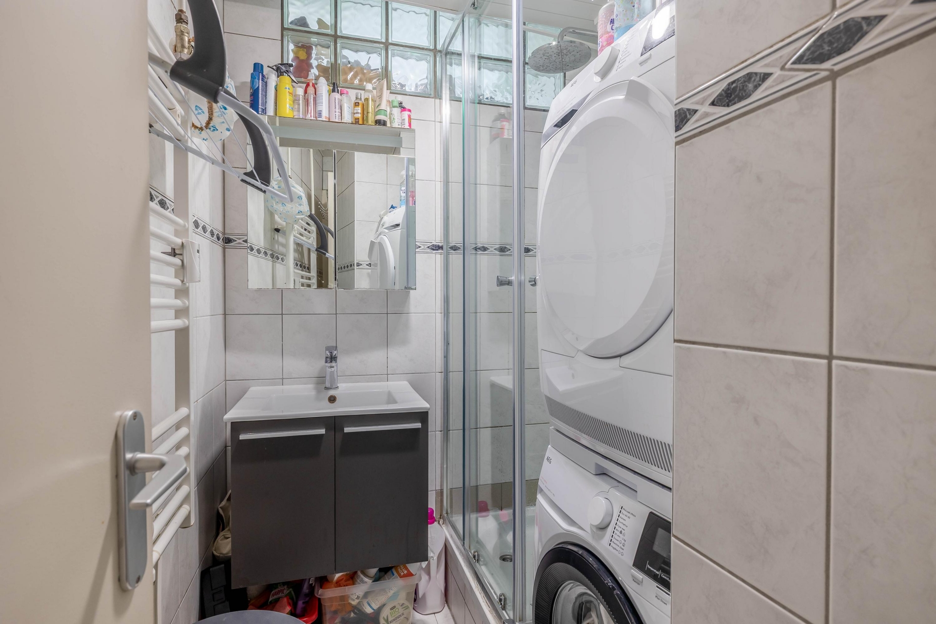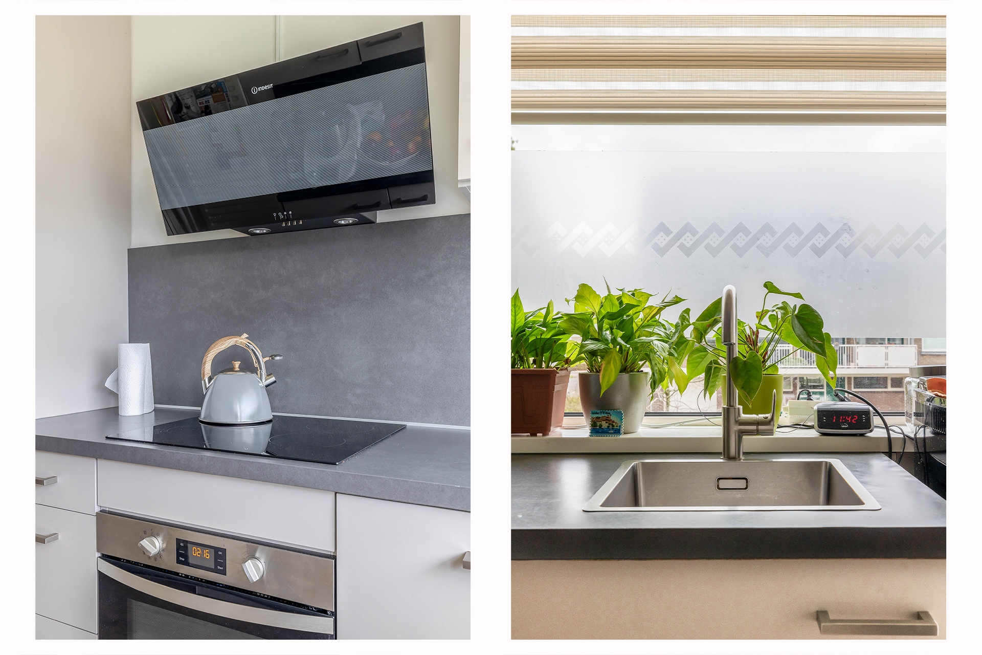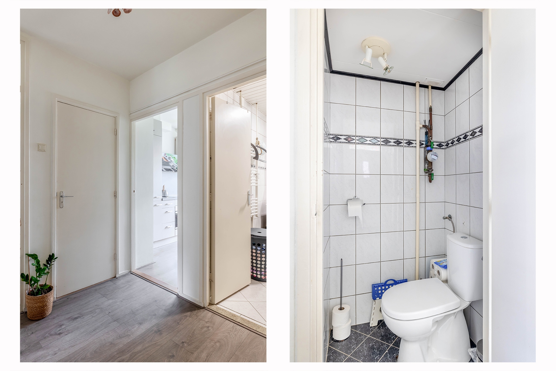 De keuken is functioneel ingericht en biedt voldoende kastruimte en aansluitingen voor apparatuur. In de badkamer vind je een douchecabine, wastafelmeubel en de aansluiting voor wasmachine en droger. Het separate toilet bevindt zich in de hal.