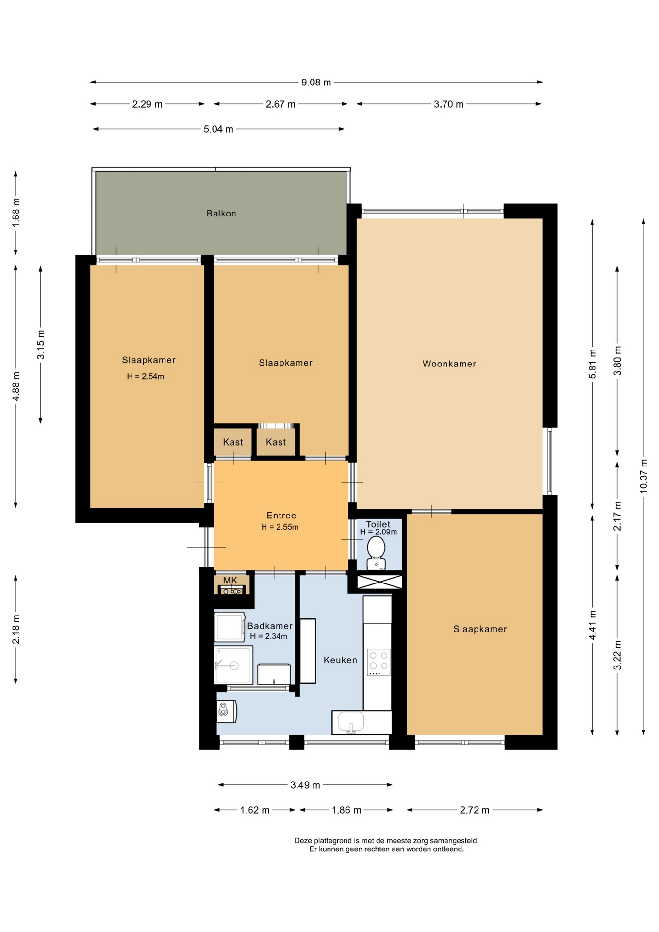 “Deze informatie is door ons met de nodige zorgvuldigheid samengesteld. Onzerzijds wordt echter geen enkele aansprakelijkheid aanvaard voor enige onvolledigheid, onjuistheid of anderszins, dan wel de gevolgen daarvan. Alle opgegeven maten en oppervlakten zijn indicatief.”