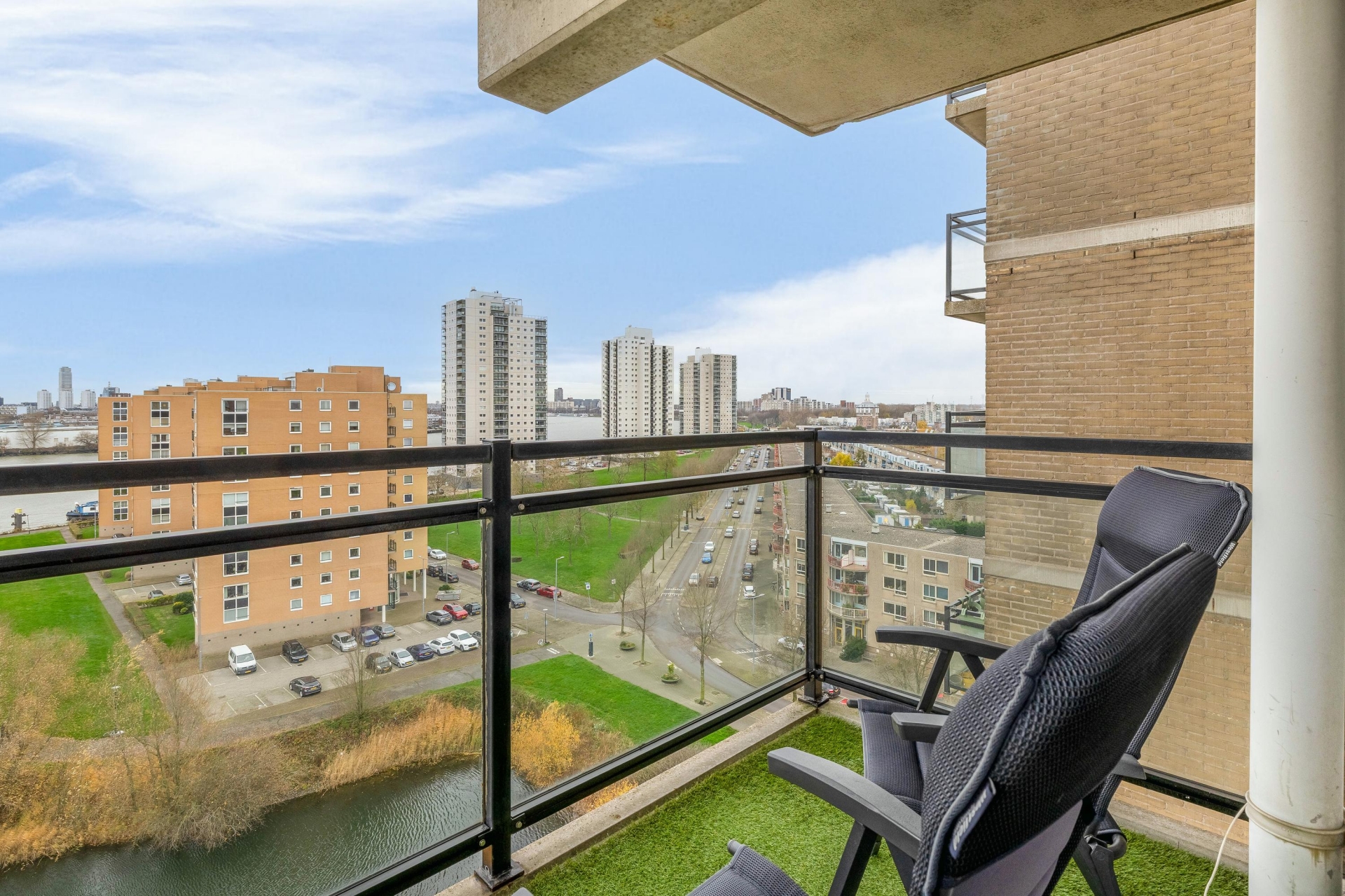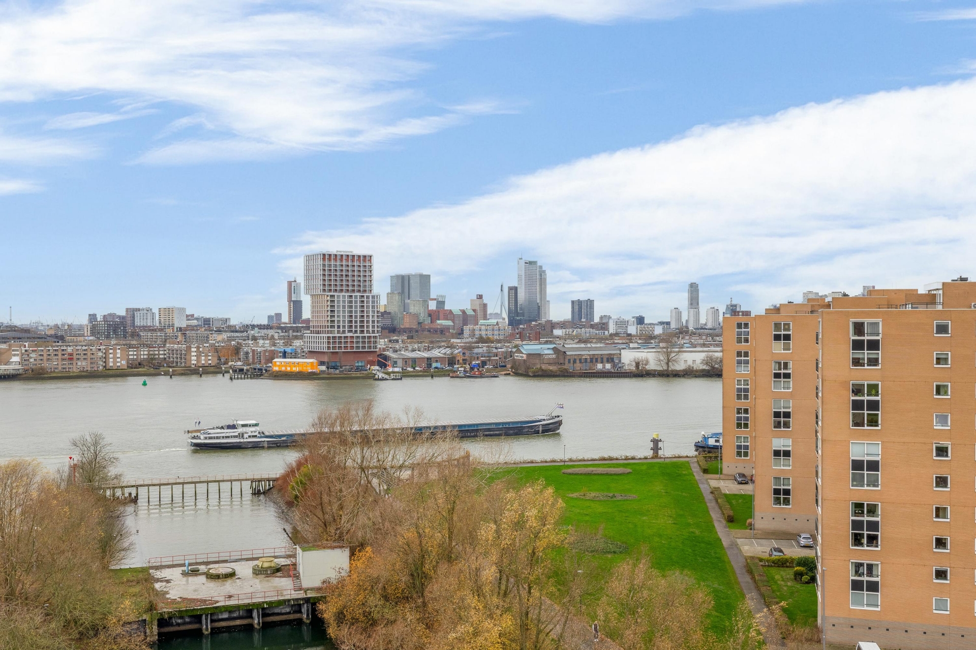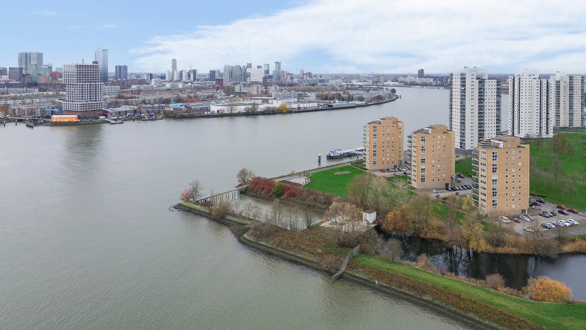 Via de afgesloten centrale entree met dubbele liftinstallatie bereik je dit goed ingedeelde 3-kamer appartement. Door de grote ramen komt het daglicht naar binnen, wat zorgt voor een open en lichte sfeer in de hele woning. De woonkamer is ruim van opzet en heeft een mooi vrij uitzicht richting de Maas en de skyline van Rotterdam. De woonkamer loopt over in de keuken (2018), die is voorzien van diverse luxe inbouwapparatuur van AEG, een wijnklimaatkast en voldoende kastruimte.