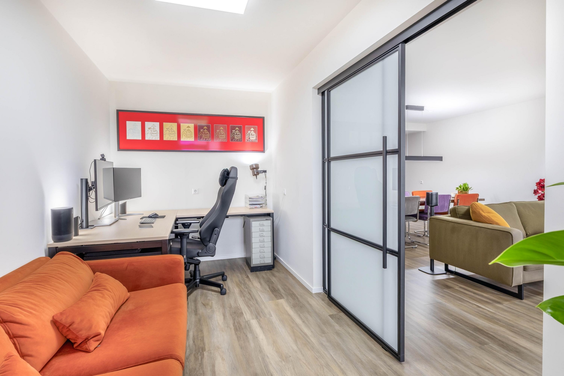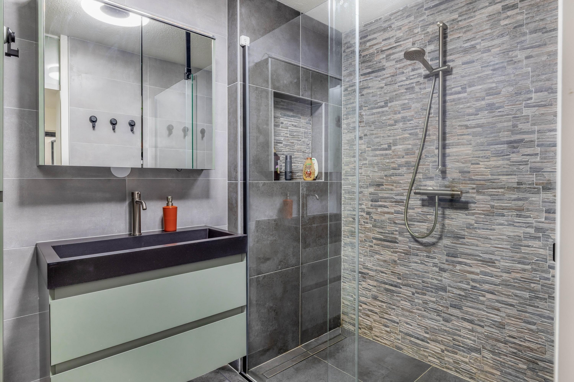 Er zijn twee slaapkamers aanwezig, waarvan één momenteel dienstdoet als werk- of logeerkamer. De badkamer is in 2022 vernieuwd en strak afgewerkt met een inloopdouche, modern wastafelmeubel en nette betegeling. Ook het separate toilet is in 2018 aangepakt, in dezelfde stijl als de keuken. Het geheel maakt dat je hier kunt wonen zonder te hoeven klussen: koffers uitpakken en genieten maar!