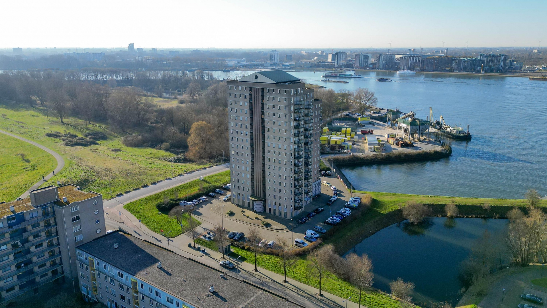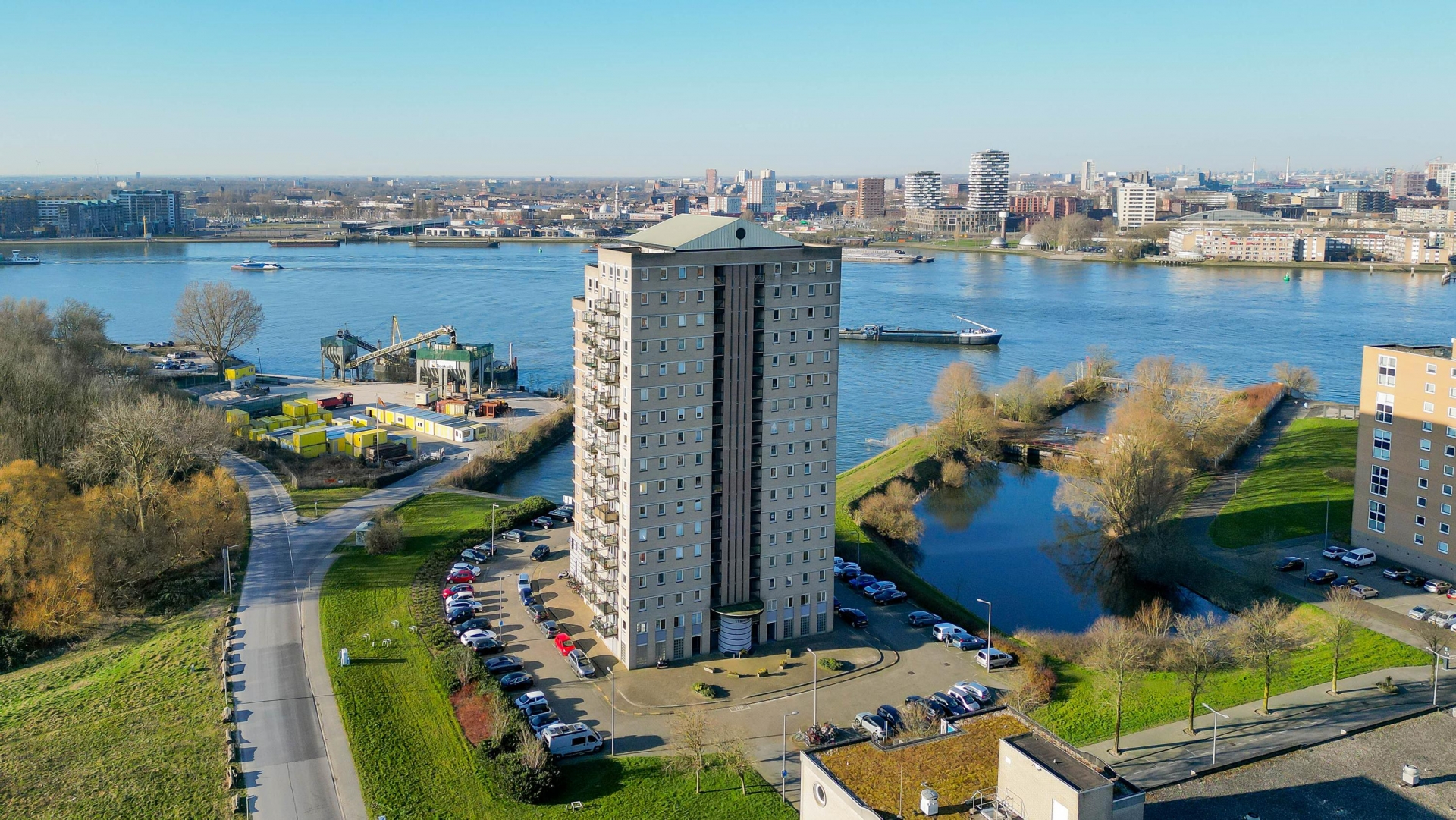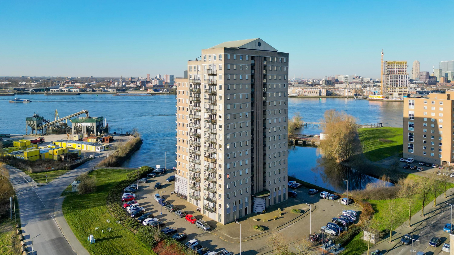 Dit penthouse op de 16e verdieping van de Drinkwaterweg 489 biedt een ongeëvenaard panorama over de Maas en de skyline van Rotterdam. Met een woonoppervlakte van ca. 124 m², twee badkamers en een royaal dakterras op het Zuiden is dit een plek waar luxe en comfort samenkomen.