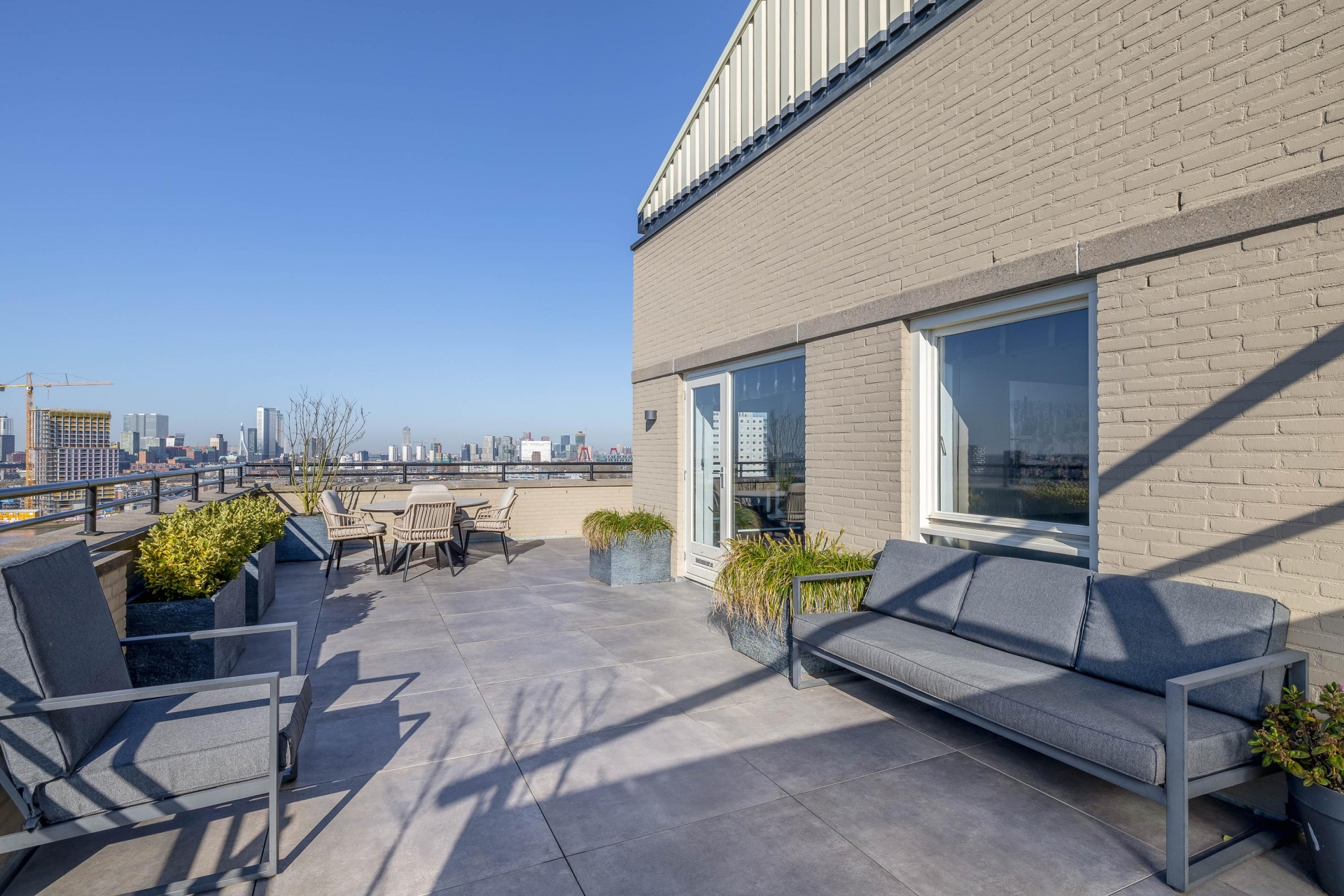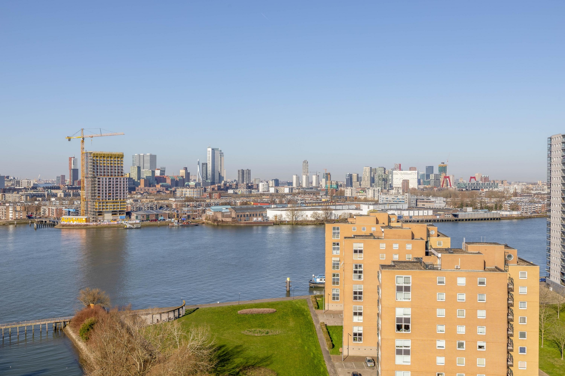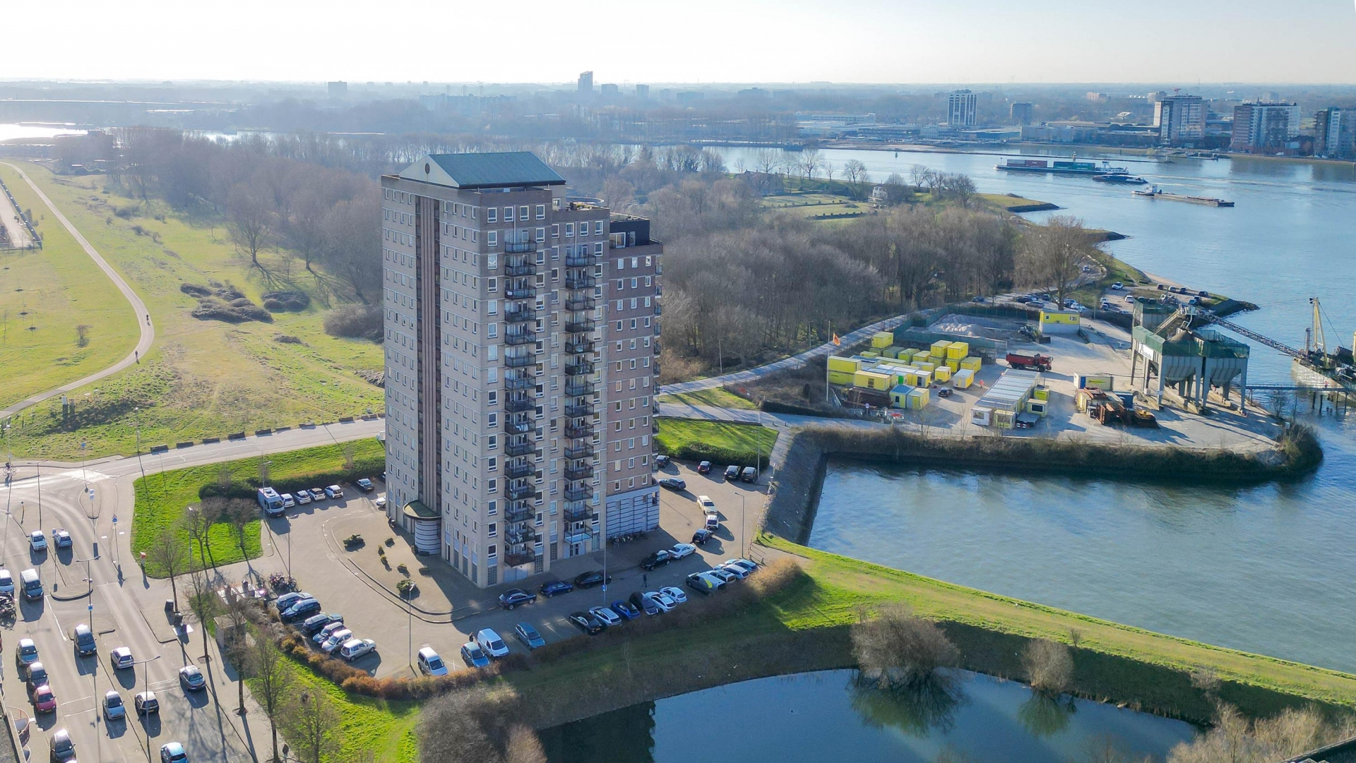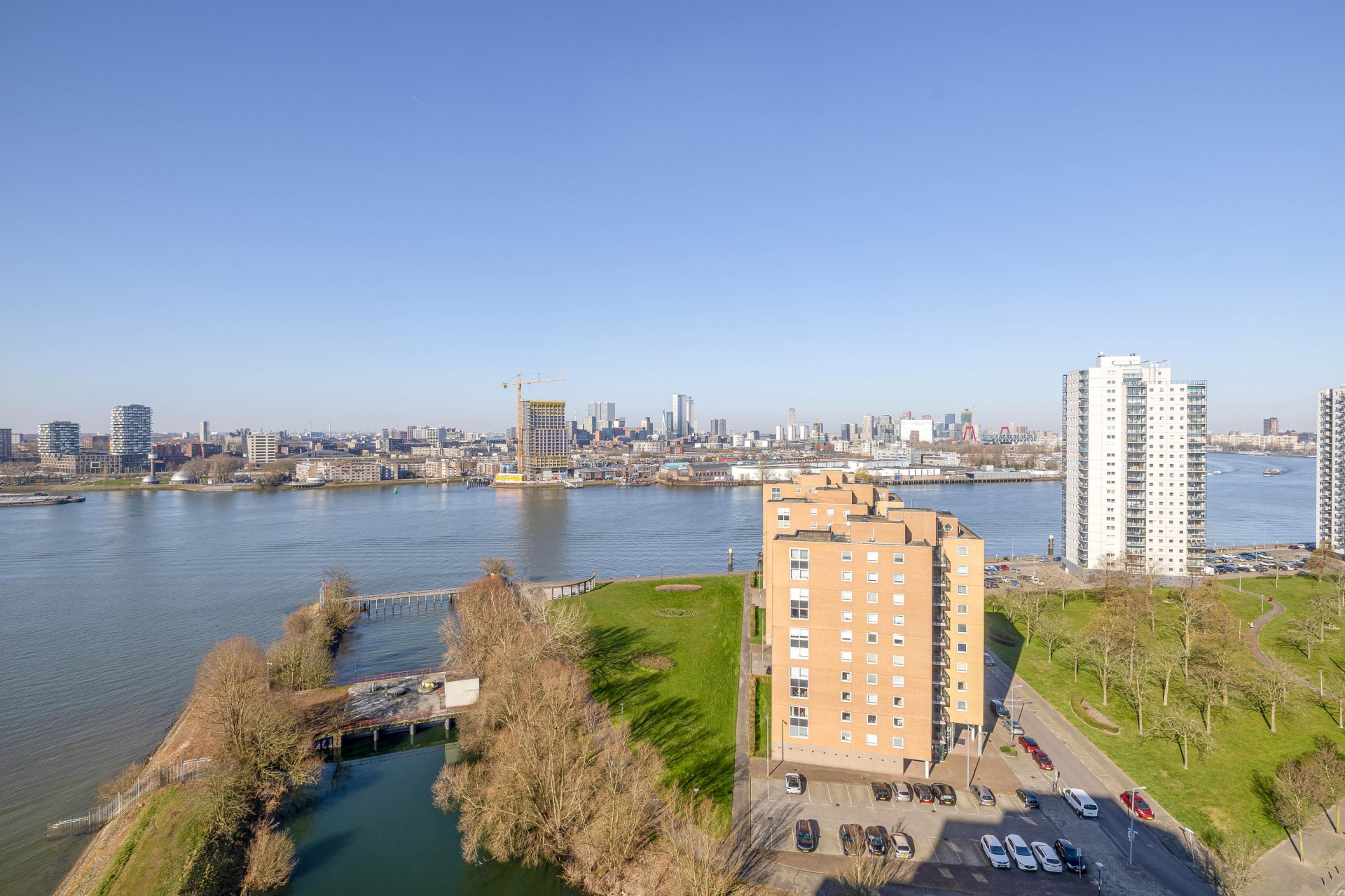 Dit penthouse op de 16e verdieping van de Drinkwaterweg 489 biedt een ongeëvenaard panorama over de Maas en de skyline van Rotterdam. Met een woonoppervlakte van ca. 124 m², twee badkamers en een royaal dakterras op het Zuiden is dit een plek waar luxe en comfort samenkomen.