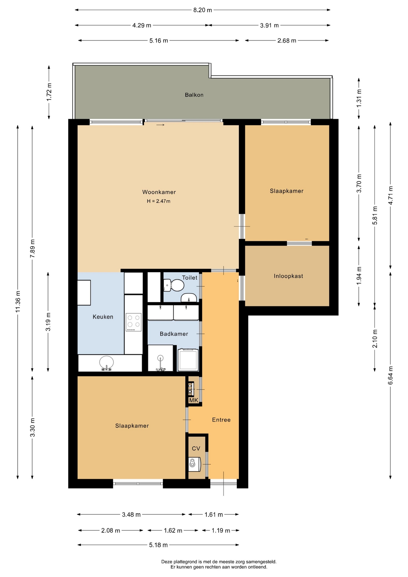 “Deze informatie is door ons met de nodige zorgvuldigheid samengesteld. Onzerzijds wordt echter geen enkele aansprakelijkheid aanvaard voor enige onvolledigheid, onjuistheid of anderszins, dan wel de gevolgen daarvan. Alle opgegeven maten en oppervlakten zijn indicatief.”