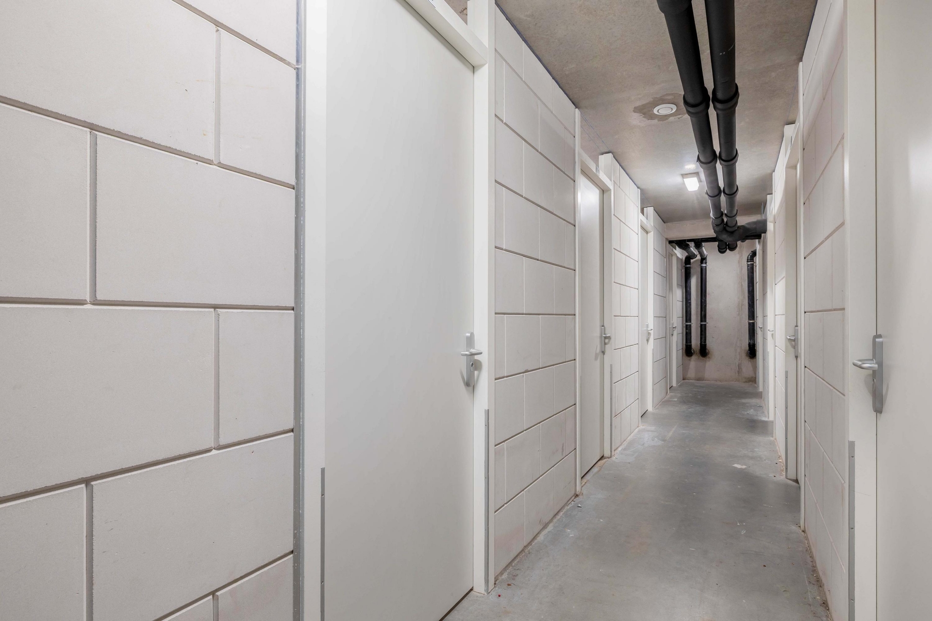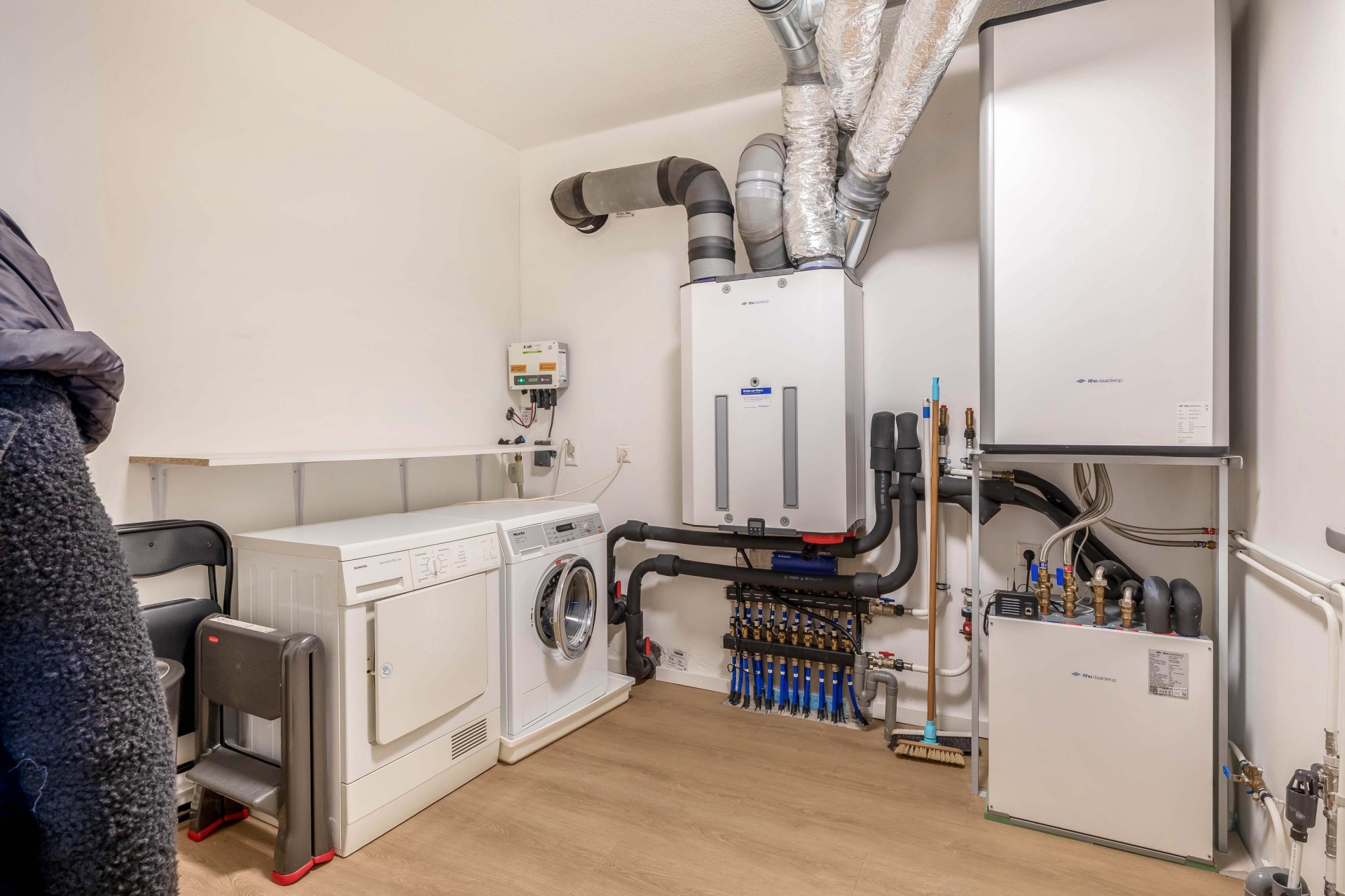 Verder is er nog een ruime inpandige berging aanwezig. Hier bevindt zich alle technische apparatuur van het appartement: de warmtepomp voor vloerverwarming en warm tapwater, het boiler opslagvat en de WTW-ventilatie. Tevens is hier ook de aansluiting voor de wasmachine en droger en nog genoeg ruimte om spullen op te bergen.