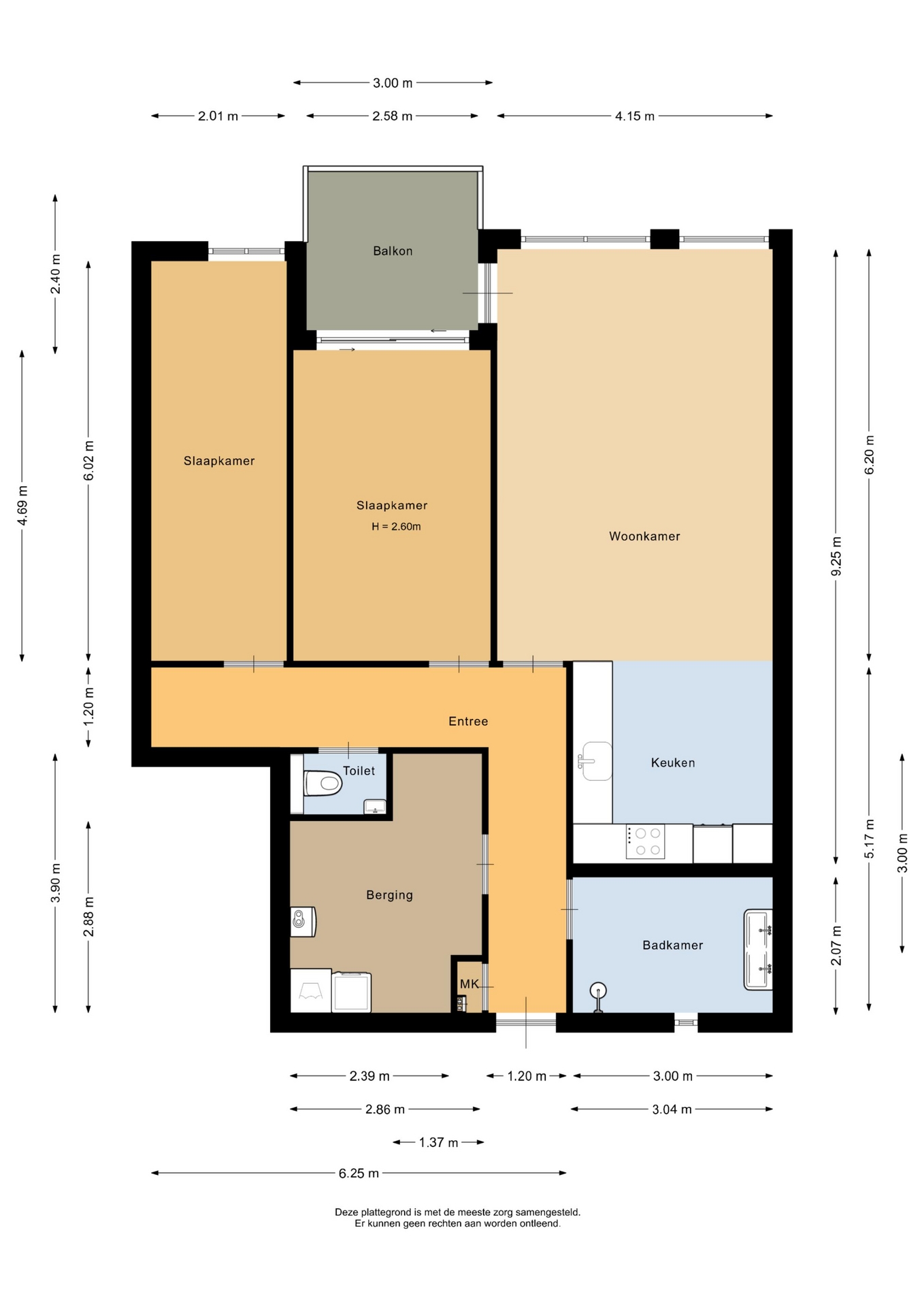 “Deze informatie is door ons met de nodige zorgvuldigheid samengesteld. Onzerzijds wordt echter geen enkele aansprakelijkheid aanvaard voor enige onvolledigheid, onjuistheid of anderszins, dan wel de gevolgen daarvan. Alle opgegeven maten en oppervlakten zijn indicatief.”
