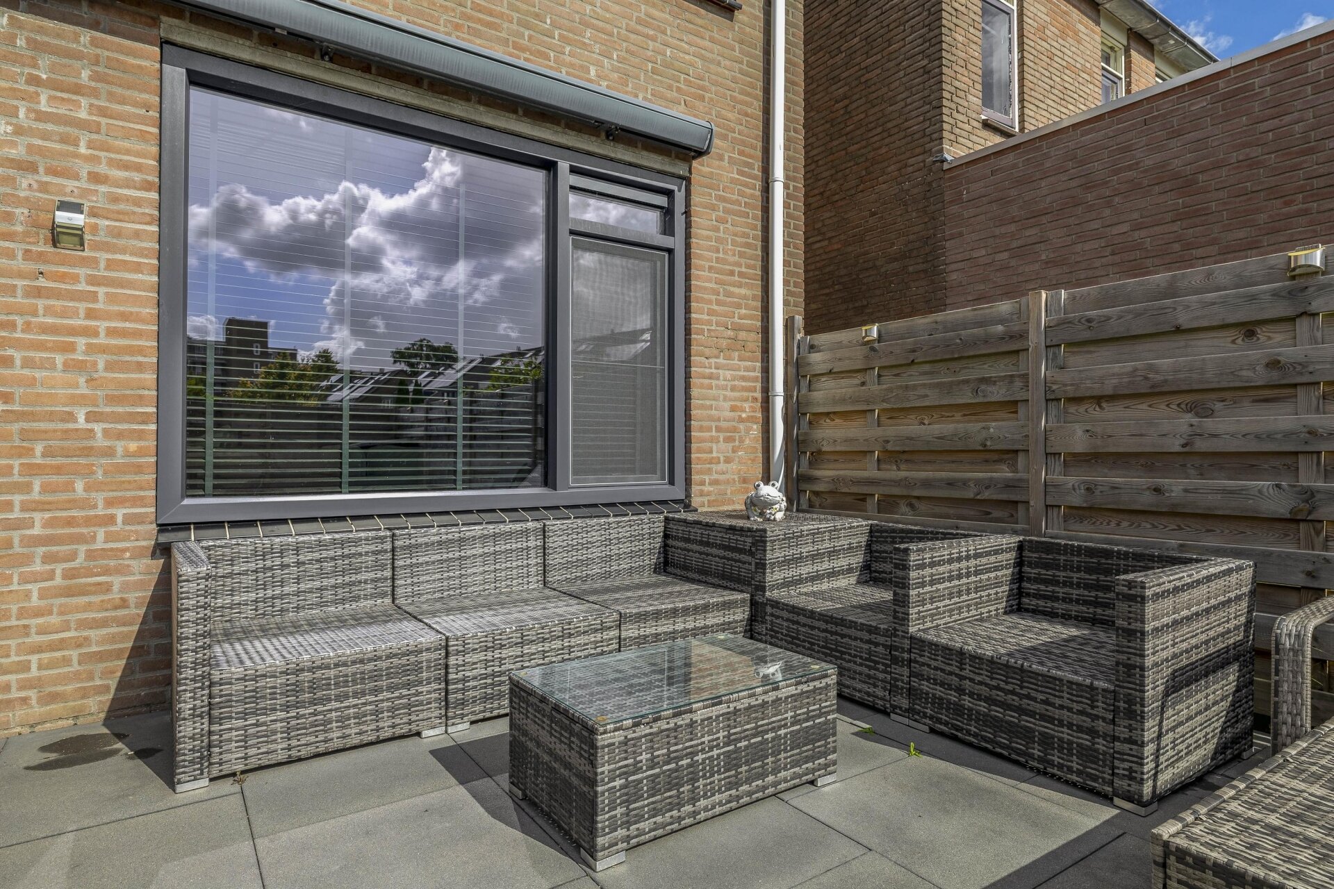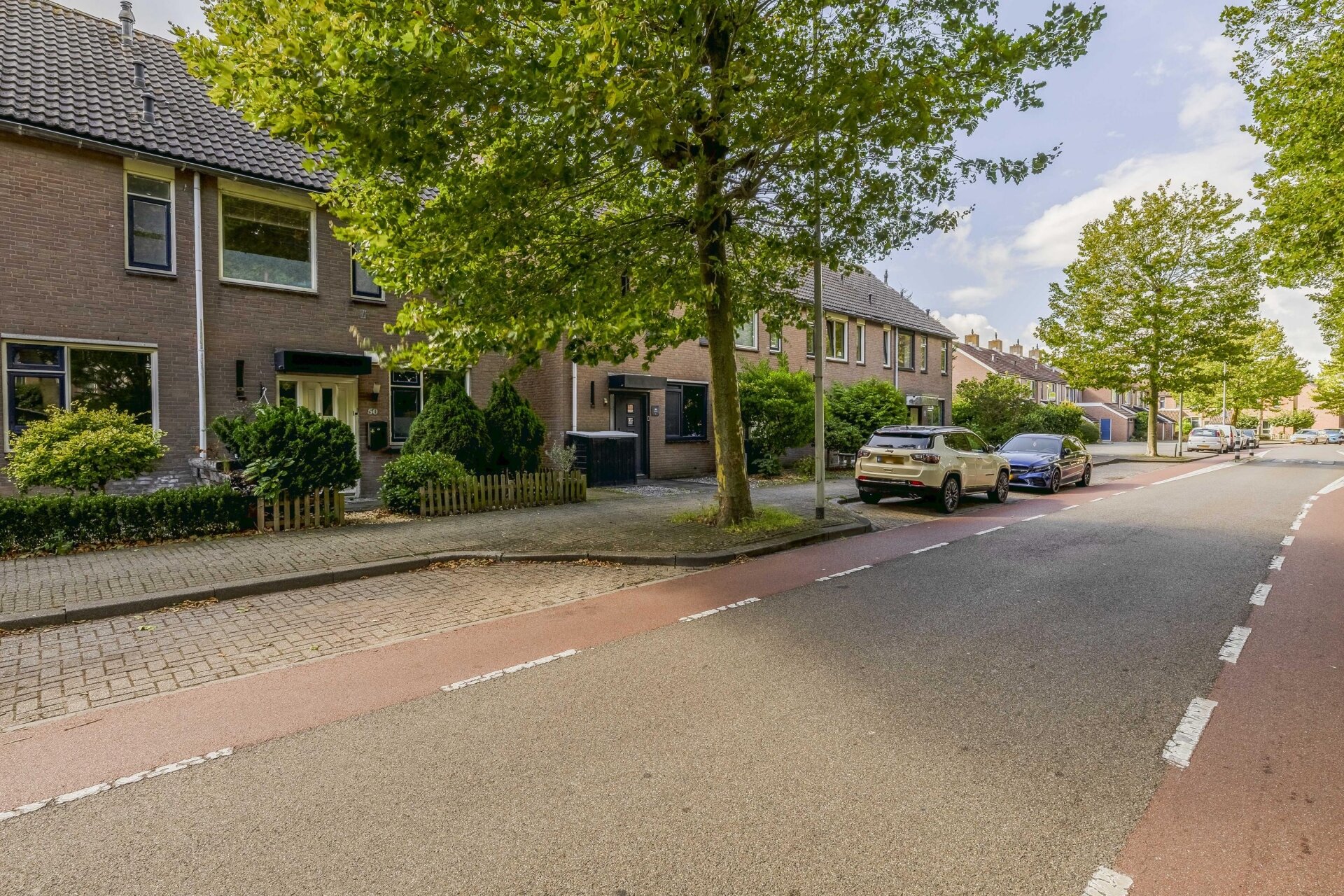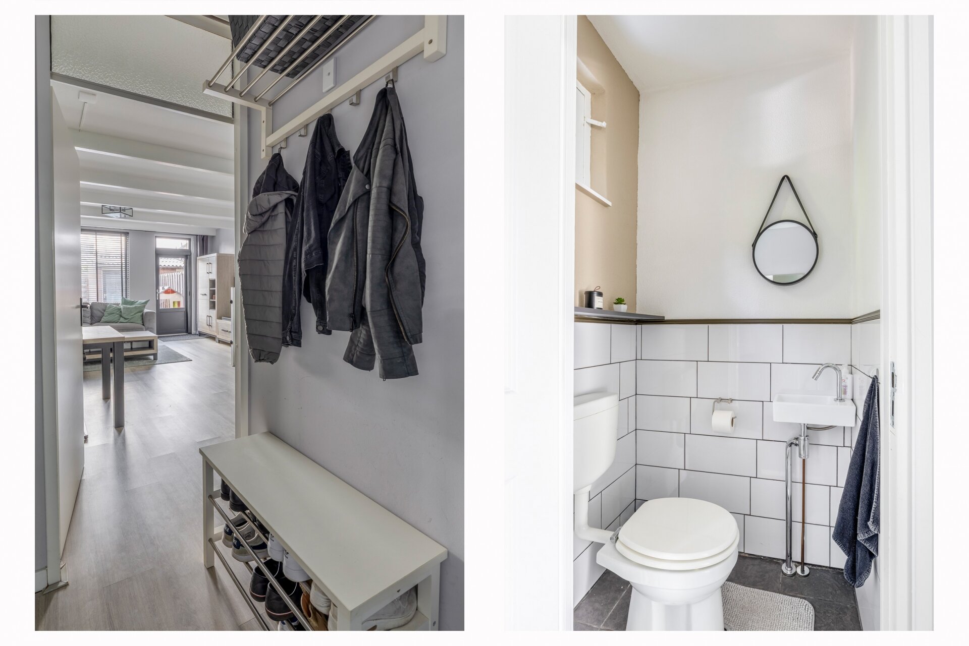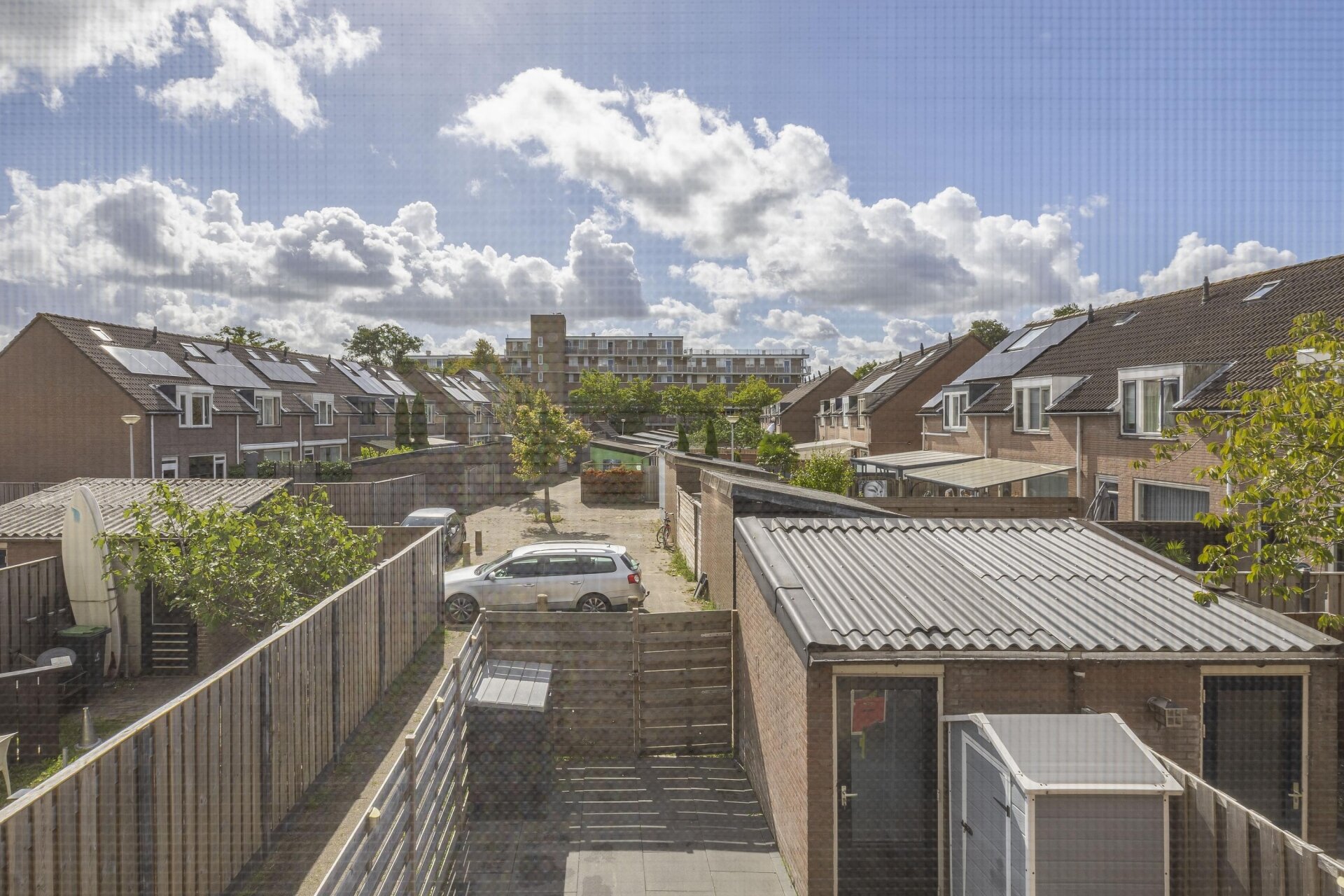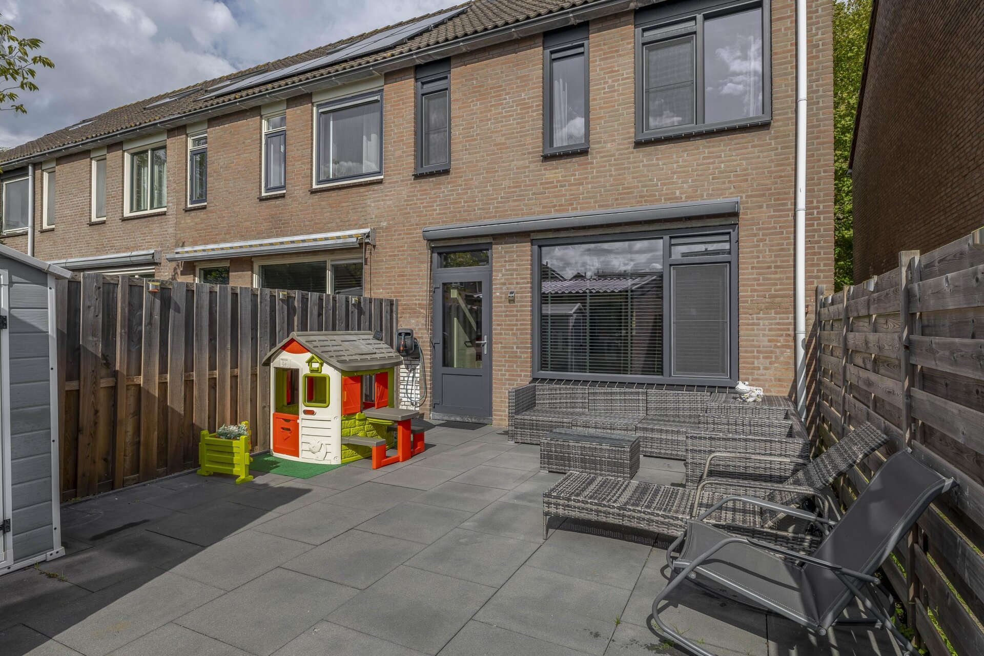 De achtertuin ligt op het zuiden, dus je kunt hier vrijwel de hele dag van de zon genieten. De tuin is onderhoudsvriendelijk aangelegd met grote tegels en biedt genoeg ruimte voor een loungeset of buitenspeelplek. Achterin vind je een stenen berging en een achterom – handig voor de fiets. Aan de voorzijde is er ook een nette voortuin én parkeergelegenheid in de straat.