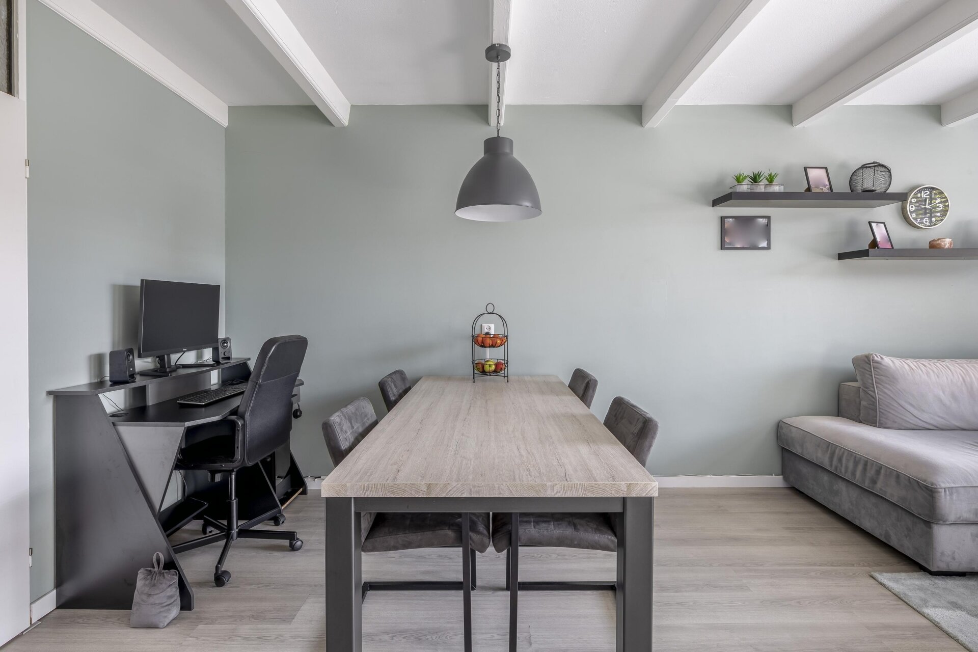De woonkamer voelt direct ruim aan dankzij de grote raampartij aan de achterzijde en de open verbinding met de keuken aan de voorzijde. Er is voldoende plek voor een royale zithoek en een eettafel – ideaal voor gezellige avonden thuis of etentjes met vrienden. De afwerking is neutraal en modern, zodat je er met elke woonstijl uit de voeten kunt.