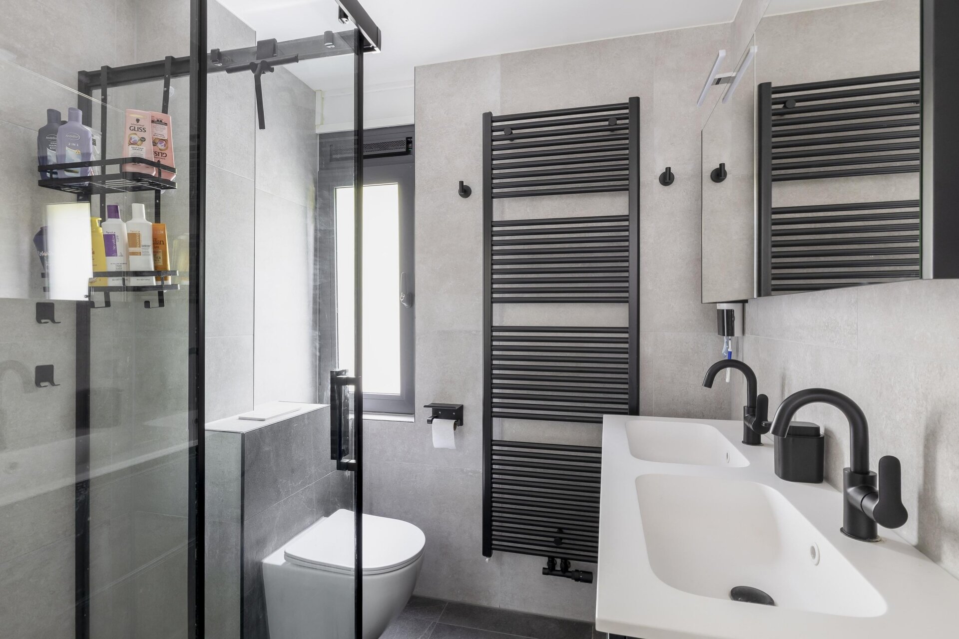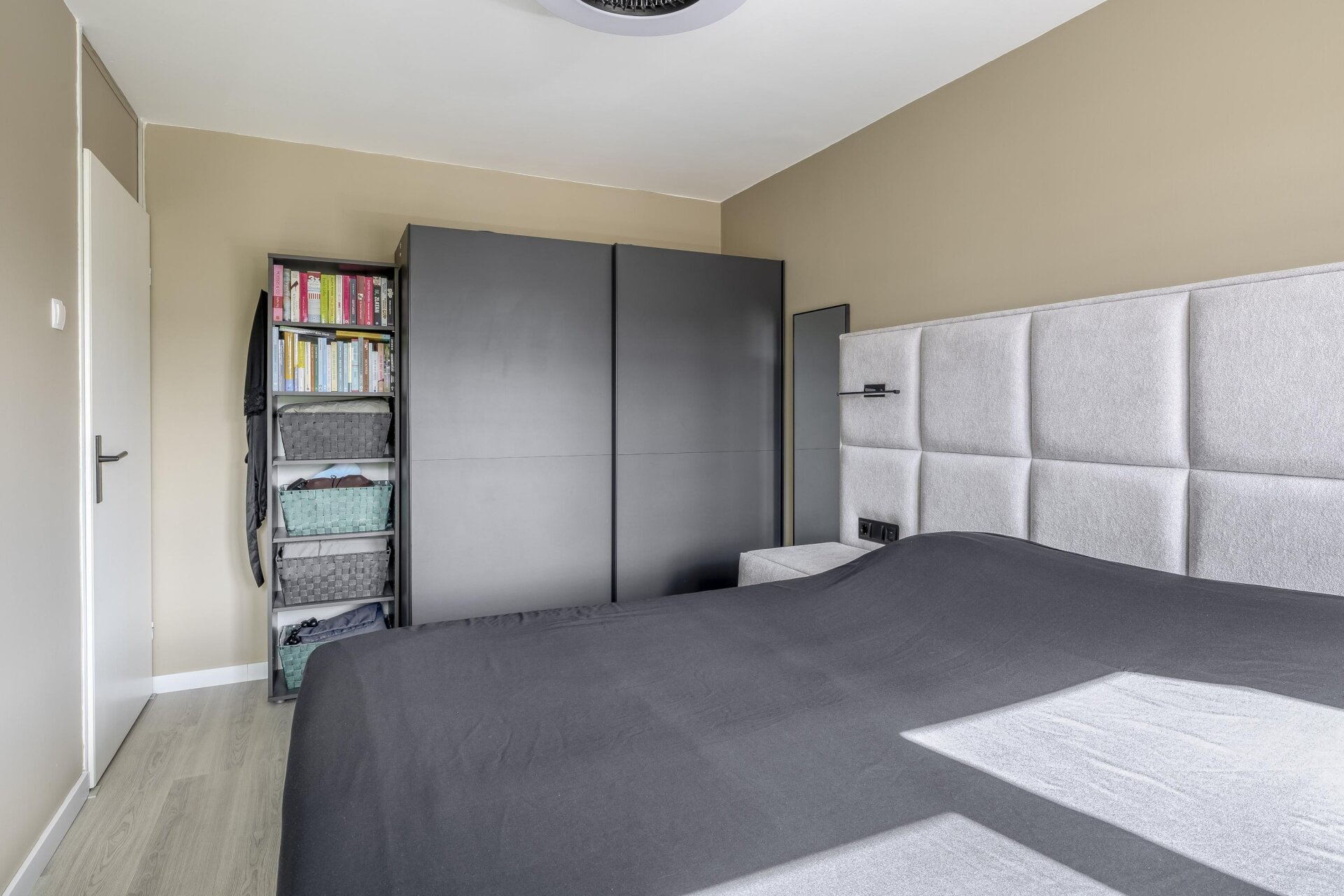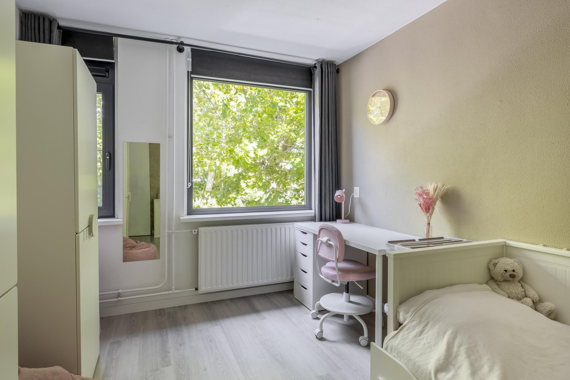 Op de eerste verdieping zijn drie fijne slaapkamers, waaronder een ruime hoofdslaapkamer aan de achterzijde. Alle kamers zijn strak afgewerkt, voorzien van een lichte vloer en goed in te delen. De badkamer is recent vernieuwd (2023) en voorzien van een inloopdouche met zwarte glazen wand, dubbel wastafelmeubel, modern sanitair en een strak afgewerkte designradiator.